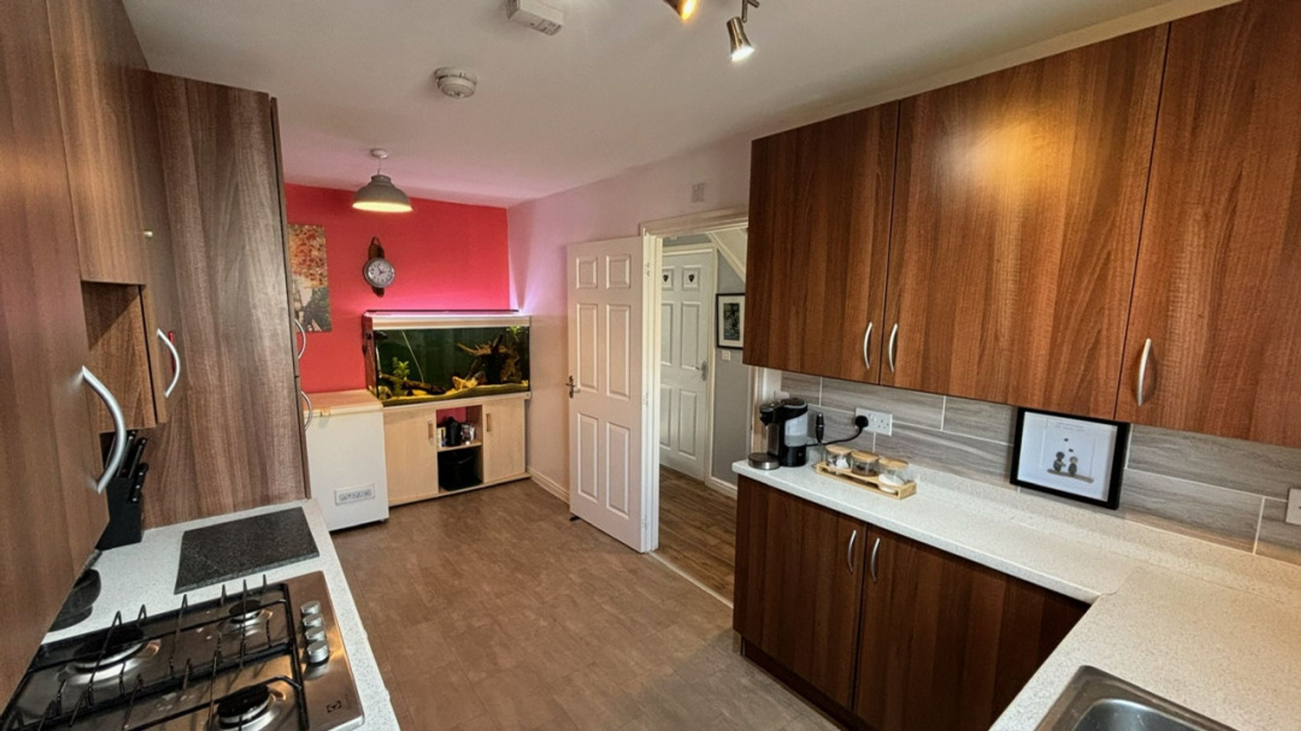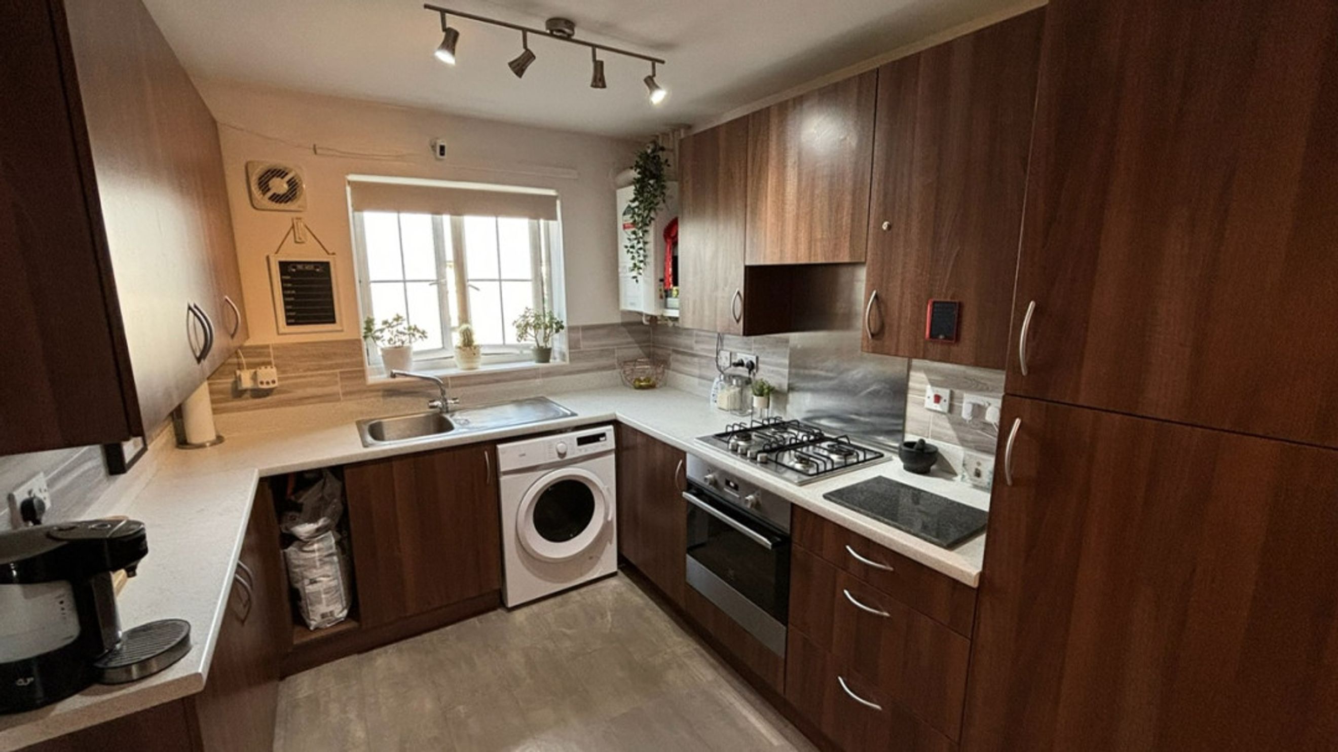 At the front of the house, you'll discover the delightful kitchen diner which is equipped with a stainless steel sink, a gas hob, and an electric oven. Additionally, there's plenty of room for a fridge/freezer and a washer/dryer, ensuring all your essentials are conveniently at hand.