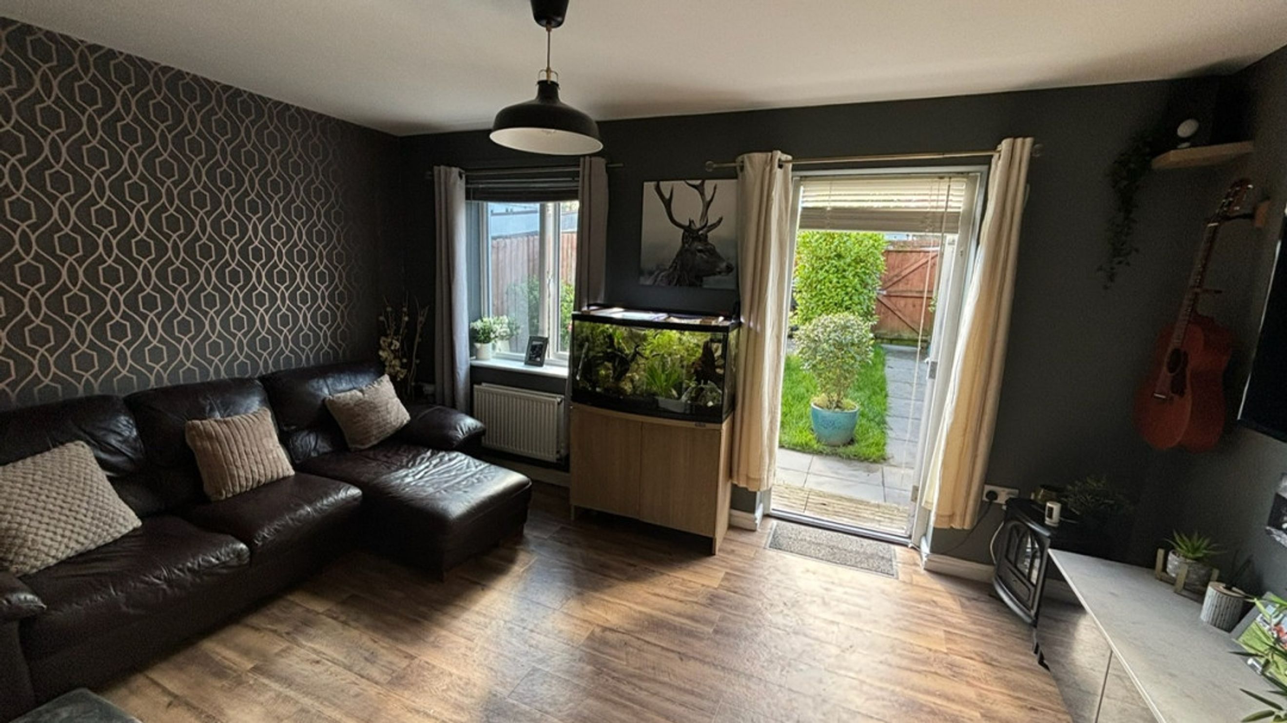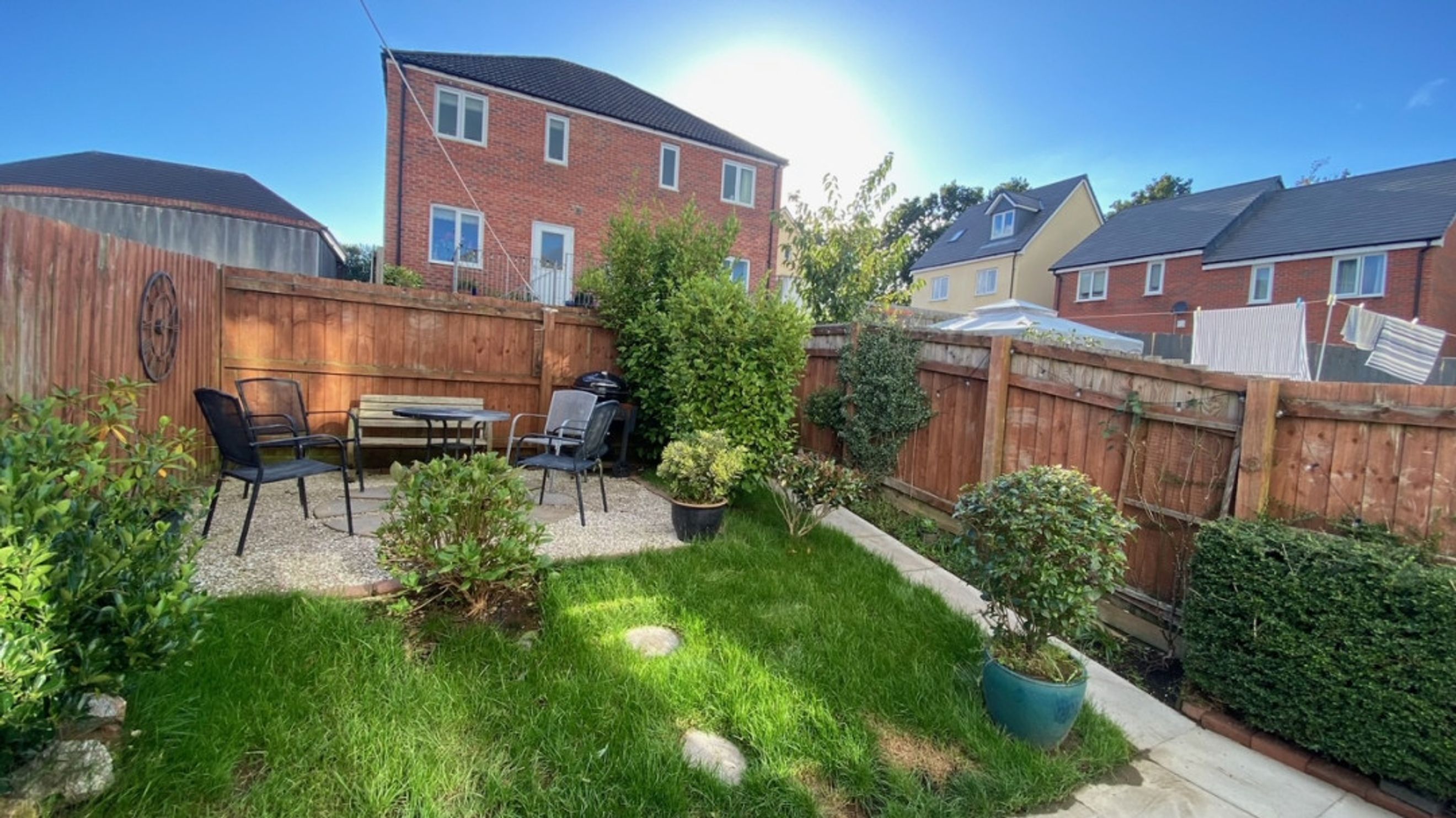 Outside, the generous garden offers a wonderful patio area, ideal for summer gatherings or quiet evenings under the stars.