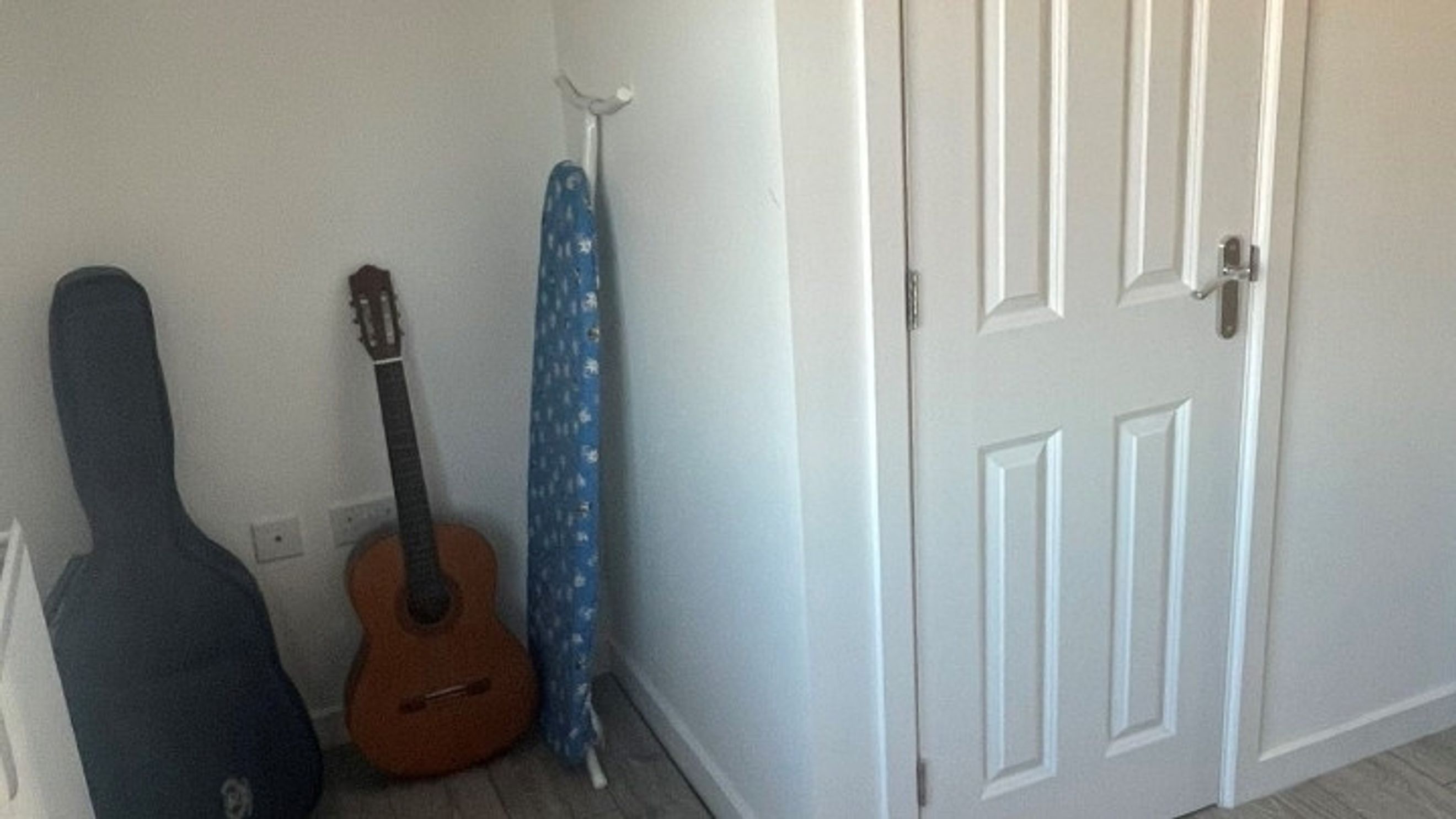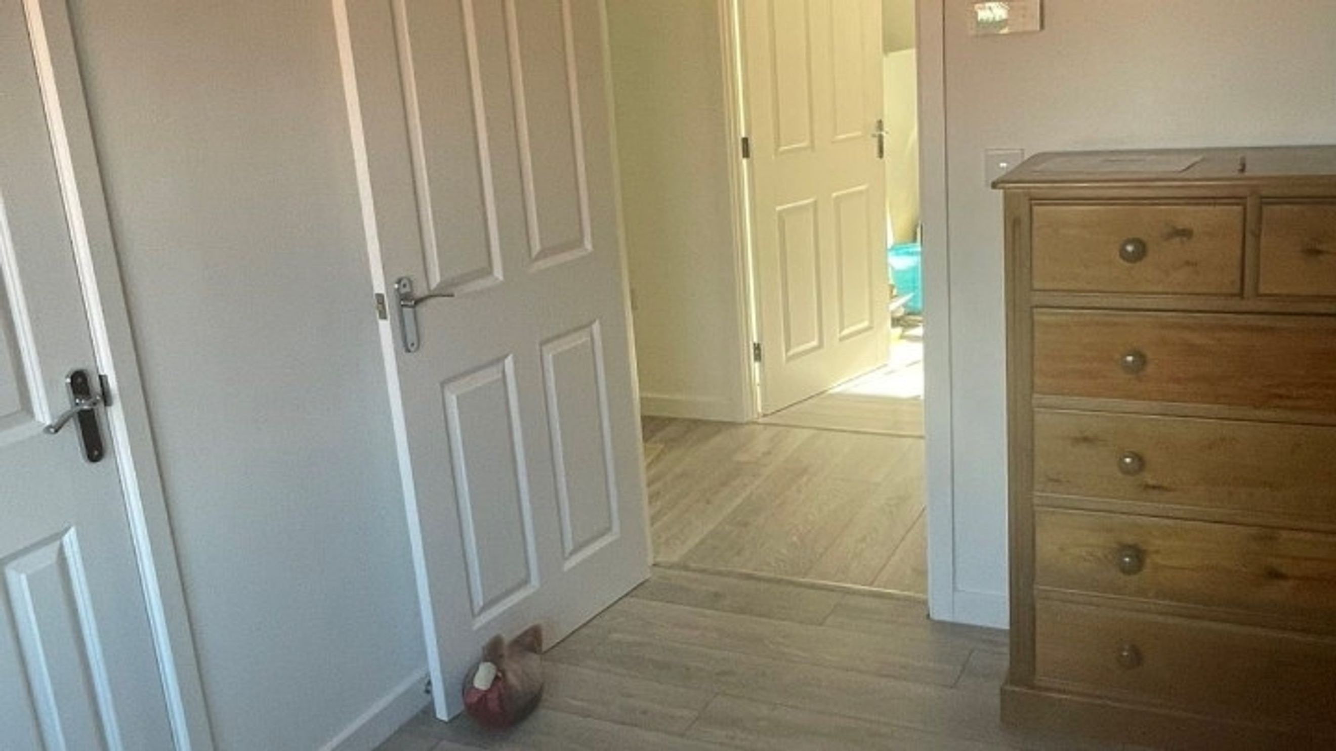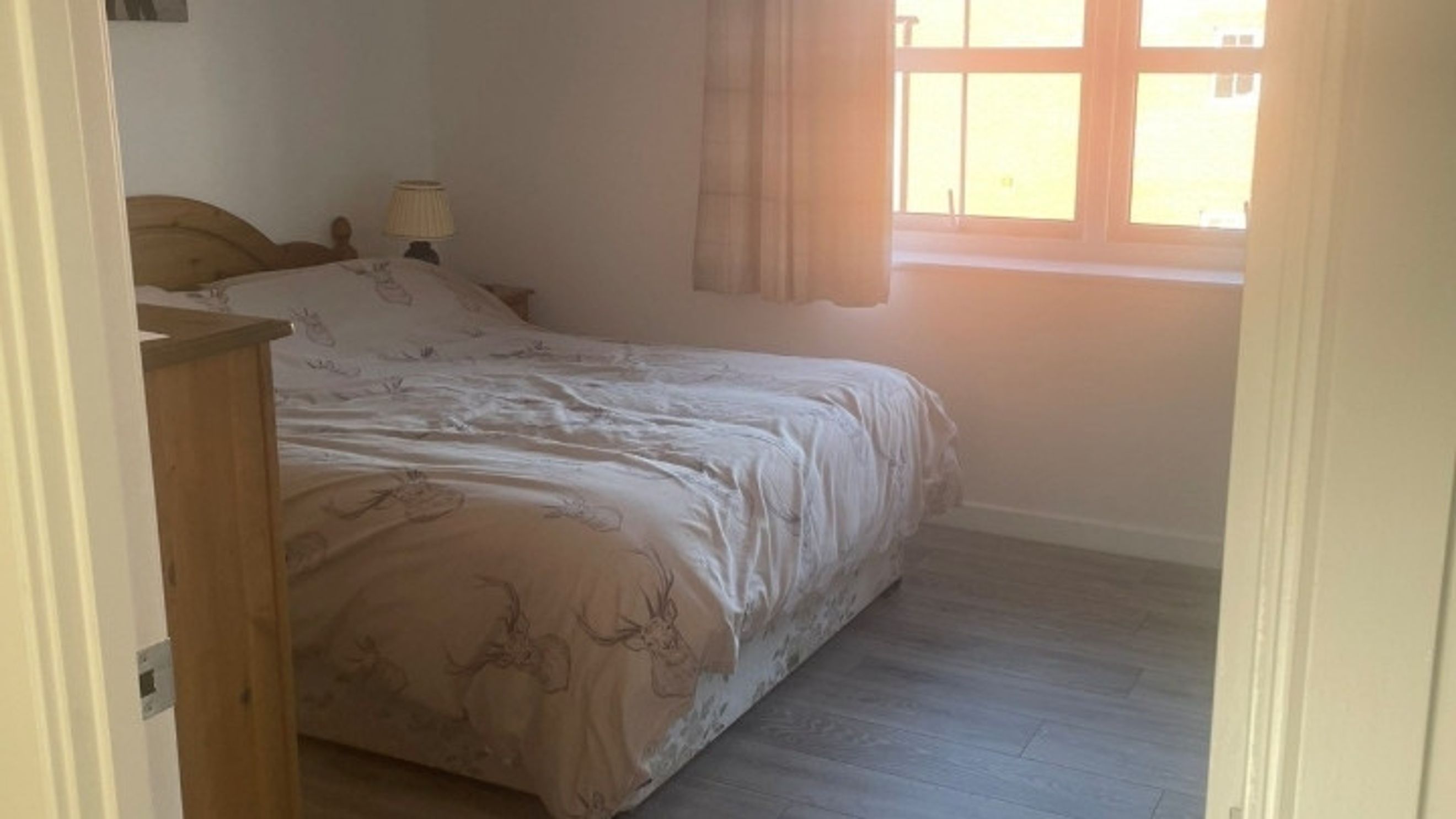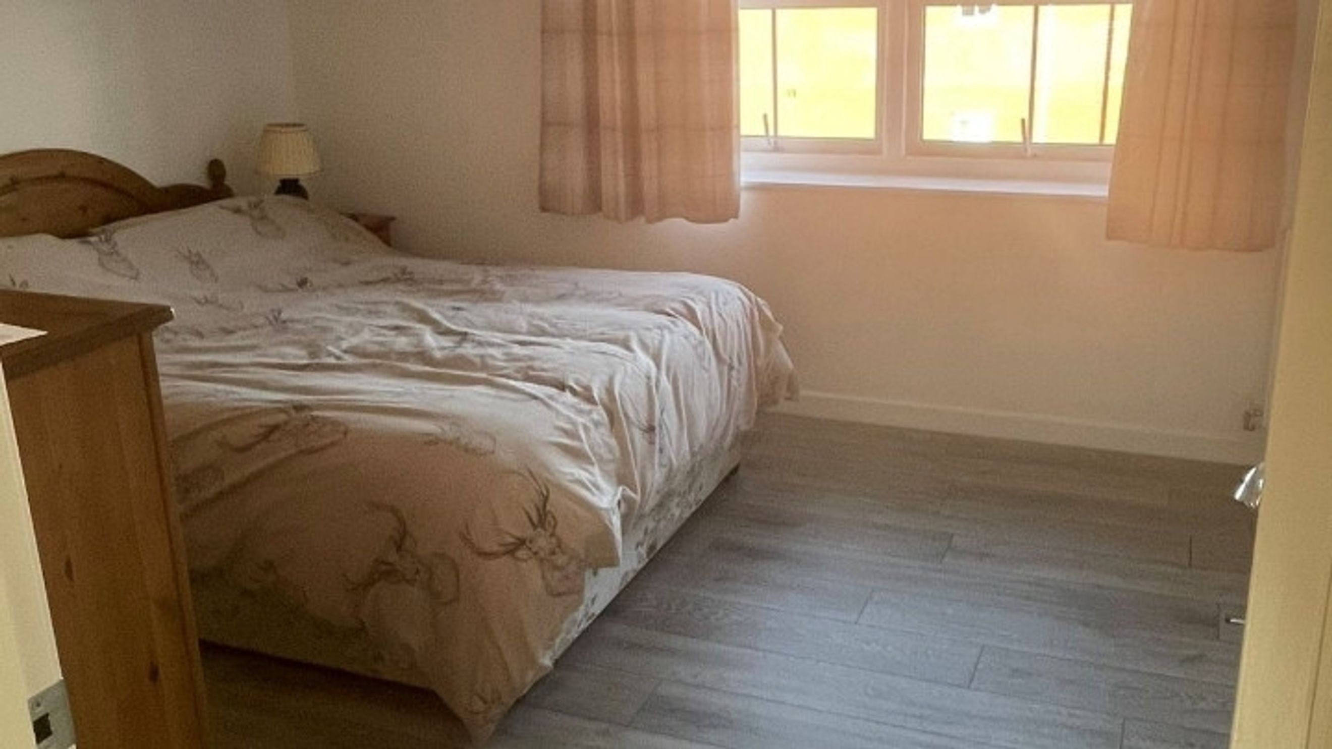 Upstairs, both bedrooms continue the theme of laminate flooring, with the second bedroom benefiting from an airing cupboard. The bathroom is fitted with vinyl flooring and a clean white suite, including a shower over the bath.