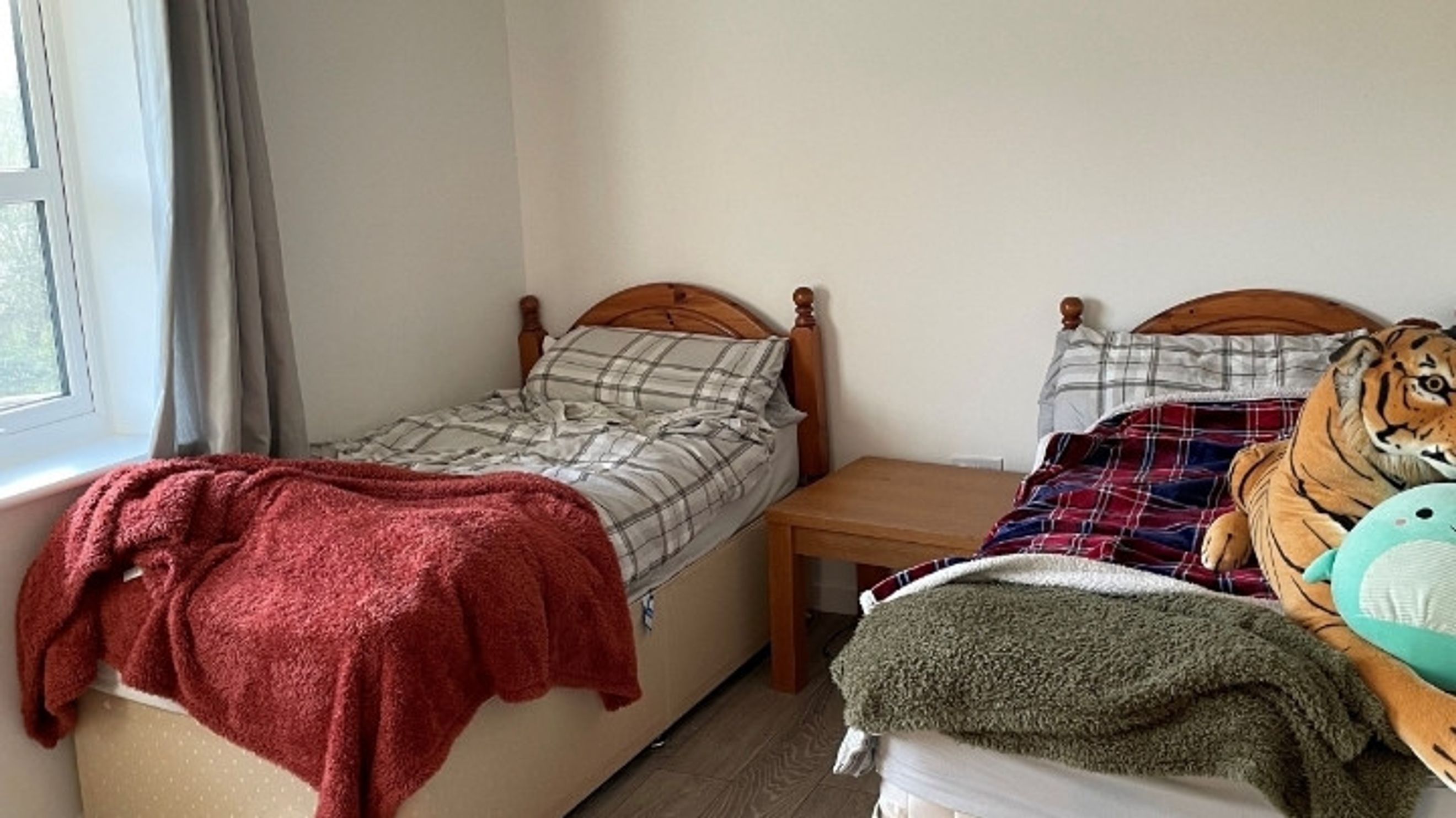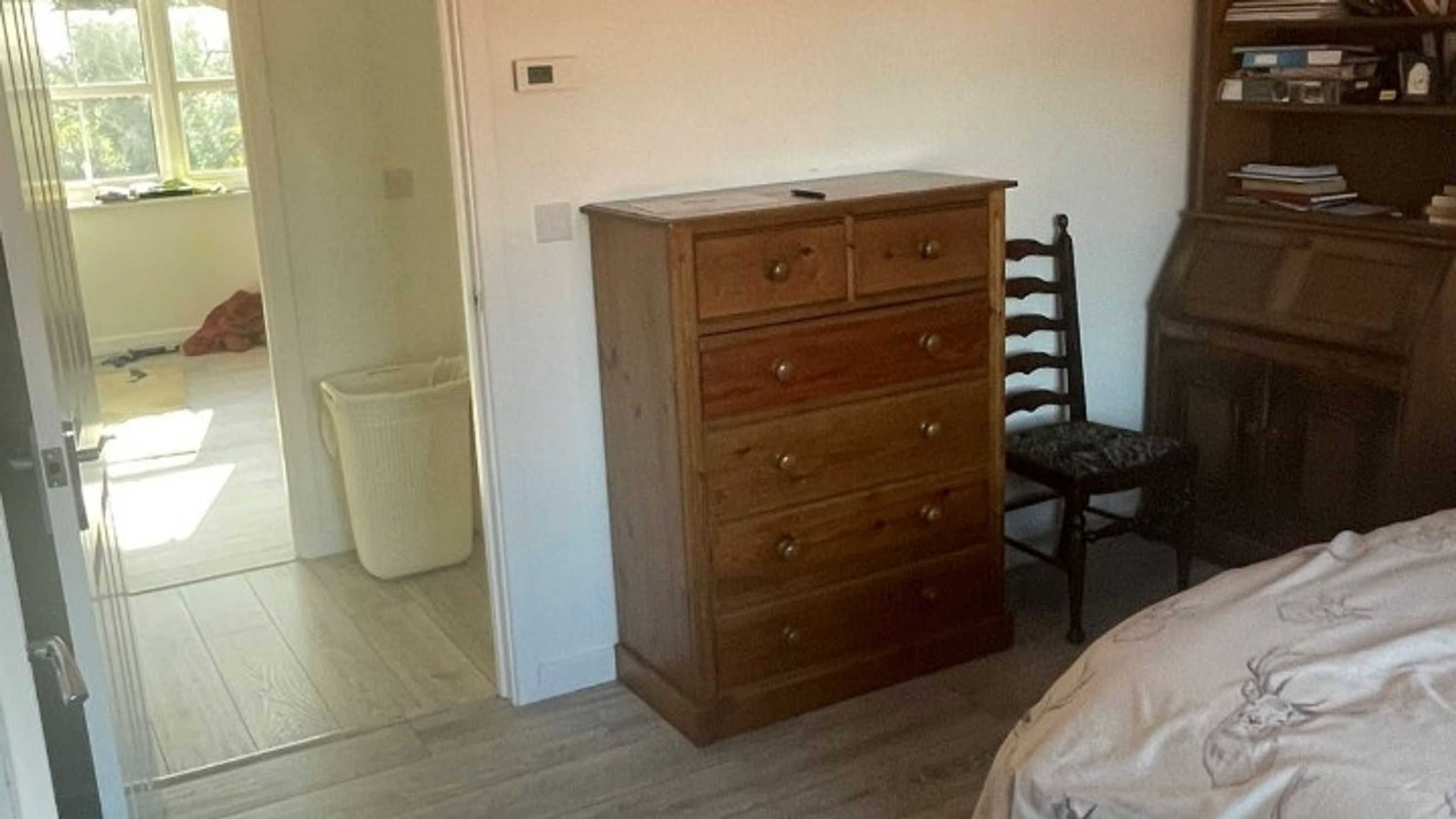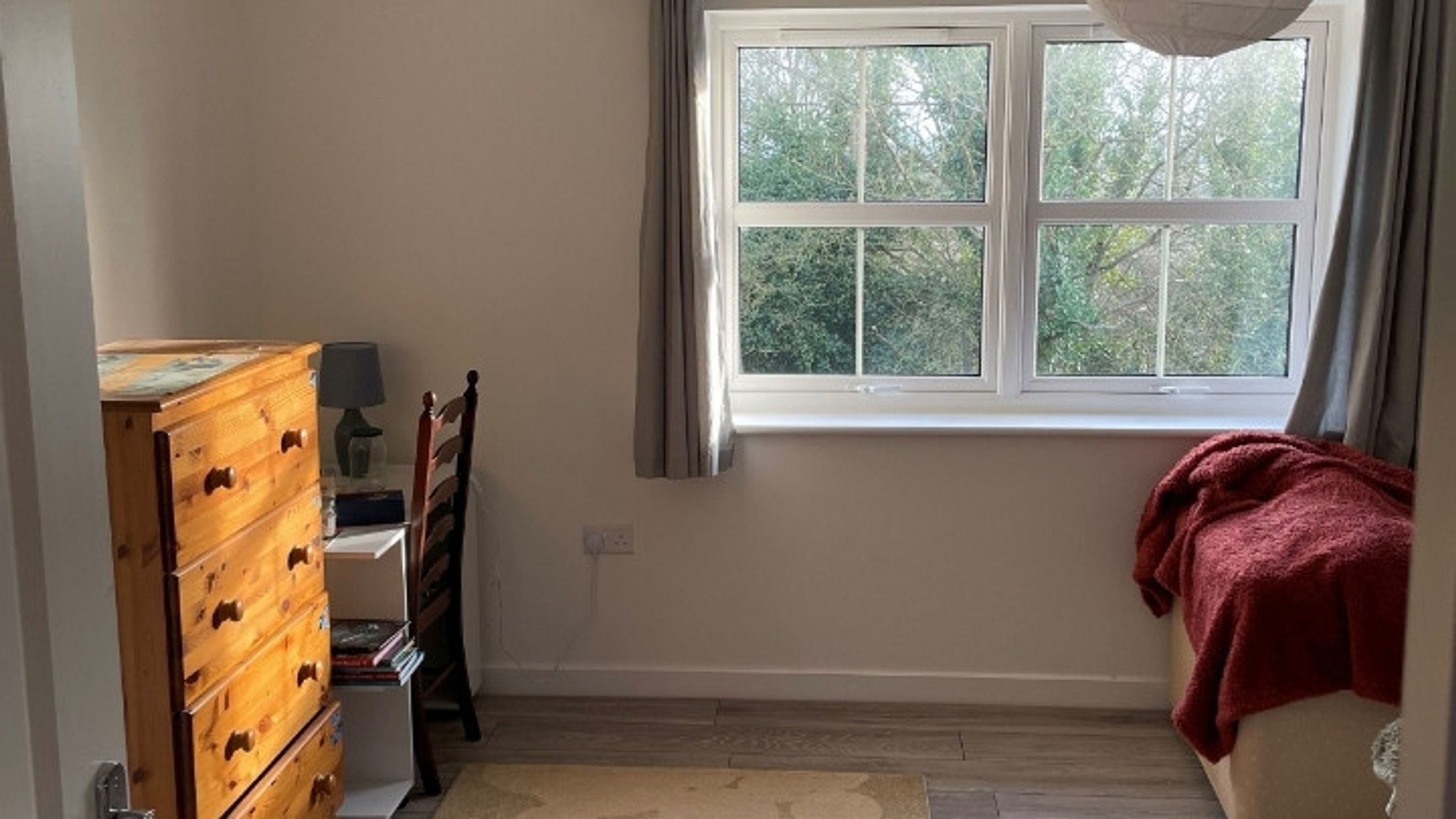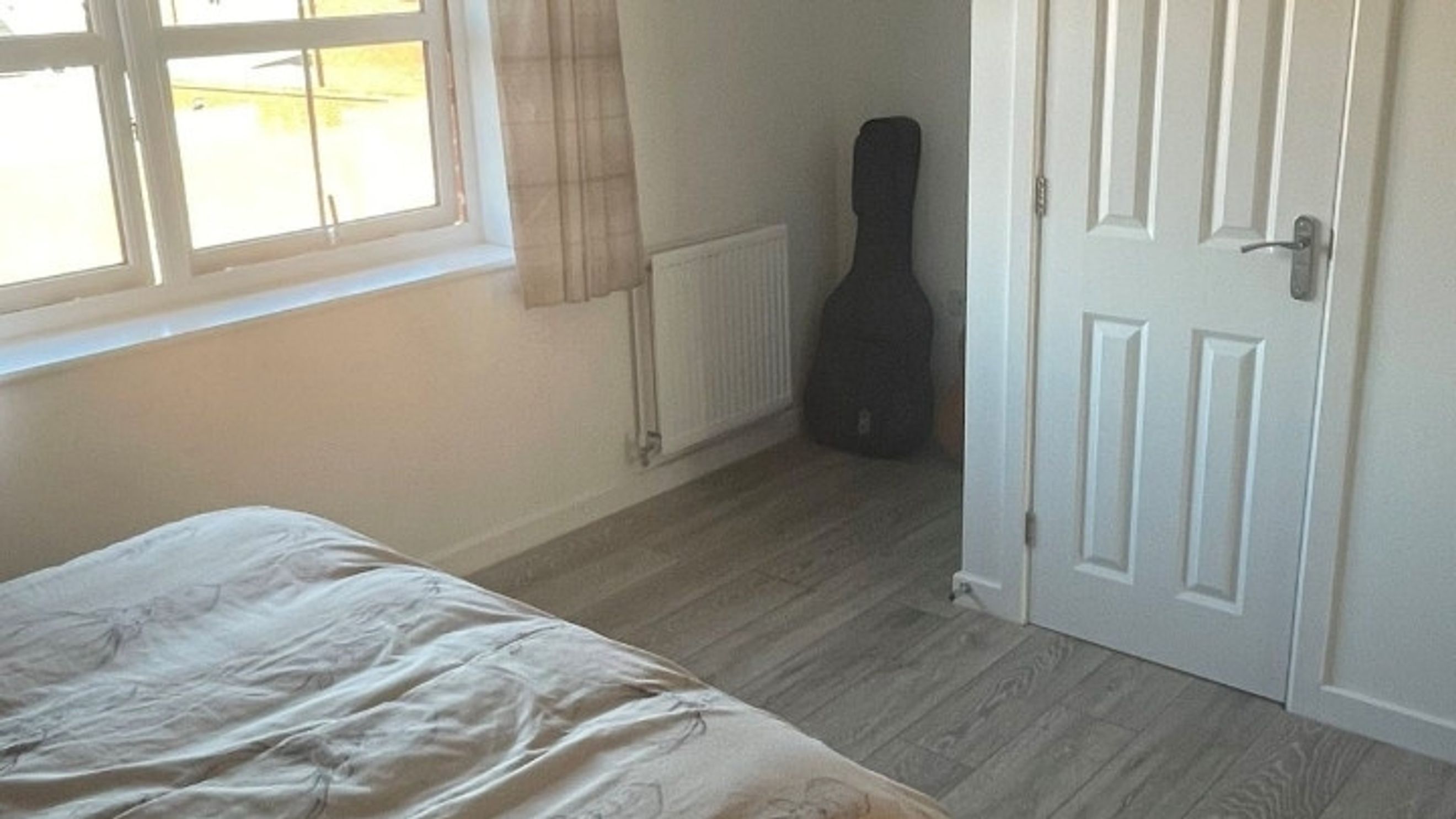 Upstairs, both bedrooms continue the theme of laminate flooring, with the second bedroom benefiting from an airing cupboard. The bathroom is fitted with vinyl flooring and a clean white suite, including a shower over the bath.