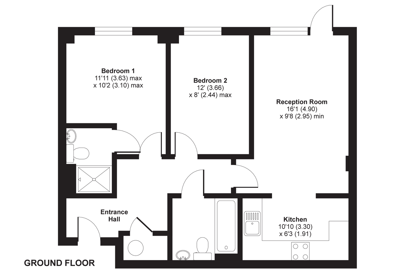 A well-presented, ground-floor flat which features a good-sized reception room with semi-open-plan kitchen. There is a master bedroom with en-suite shower room plus a second bedroom, which is also a double, and a main bathroom. Modern insulation standards and double glazing make for a good energy-efficiency rating. Foundry Court is in an exceptionally convenient location, just minutes from Slough Railway Station, for access to the Elizabeth Line plus GWR services to Windsor & Eton Central and London Paddington. A Tesco Extra and the Observatory Shopping Centre are both just a short walk away as are numerous other stores on or around the High Street. The property comes with a parking space.