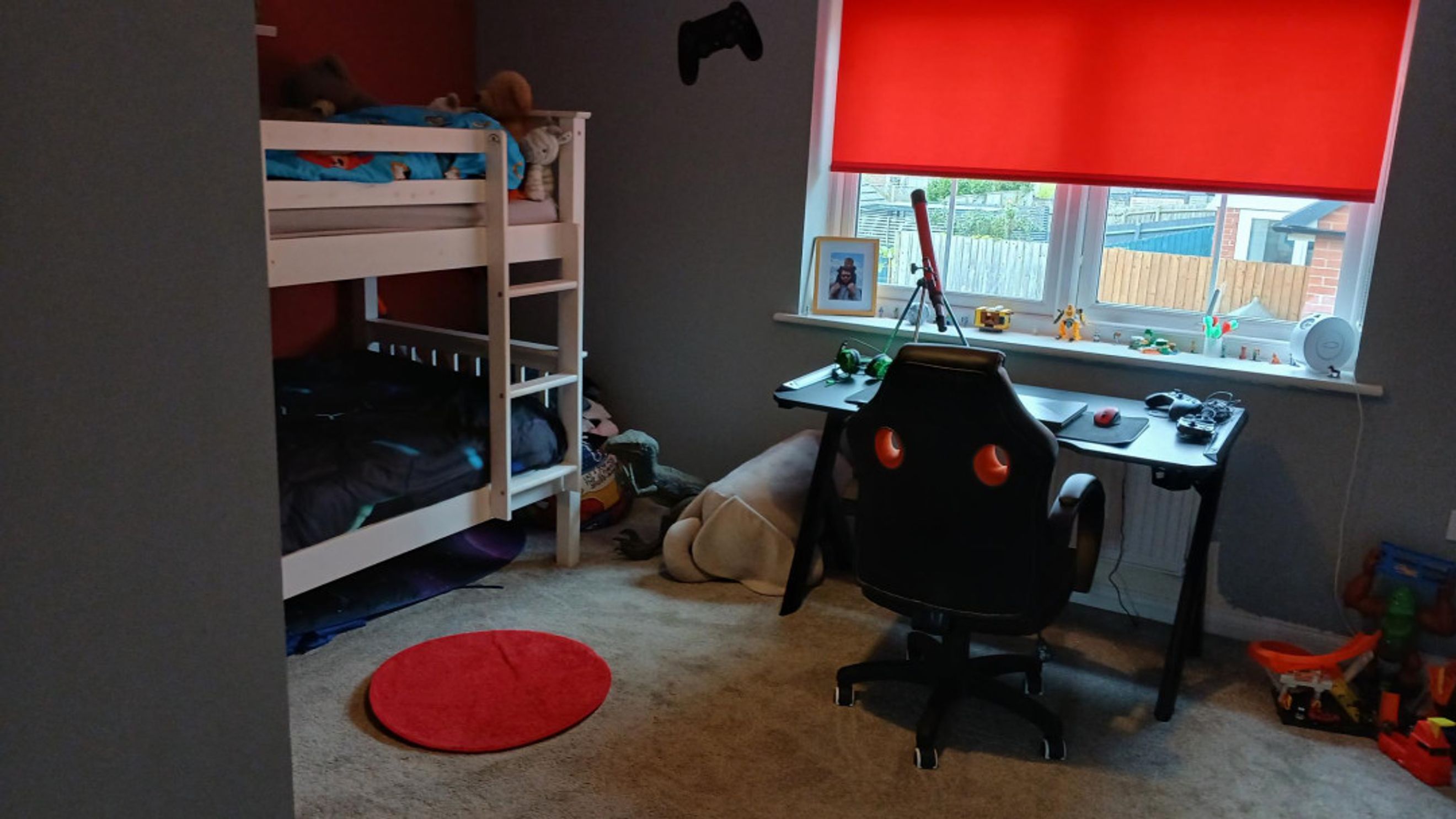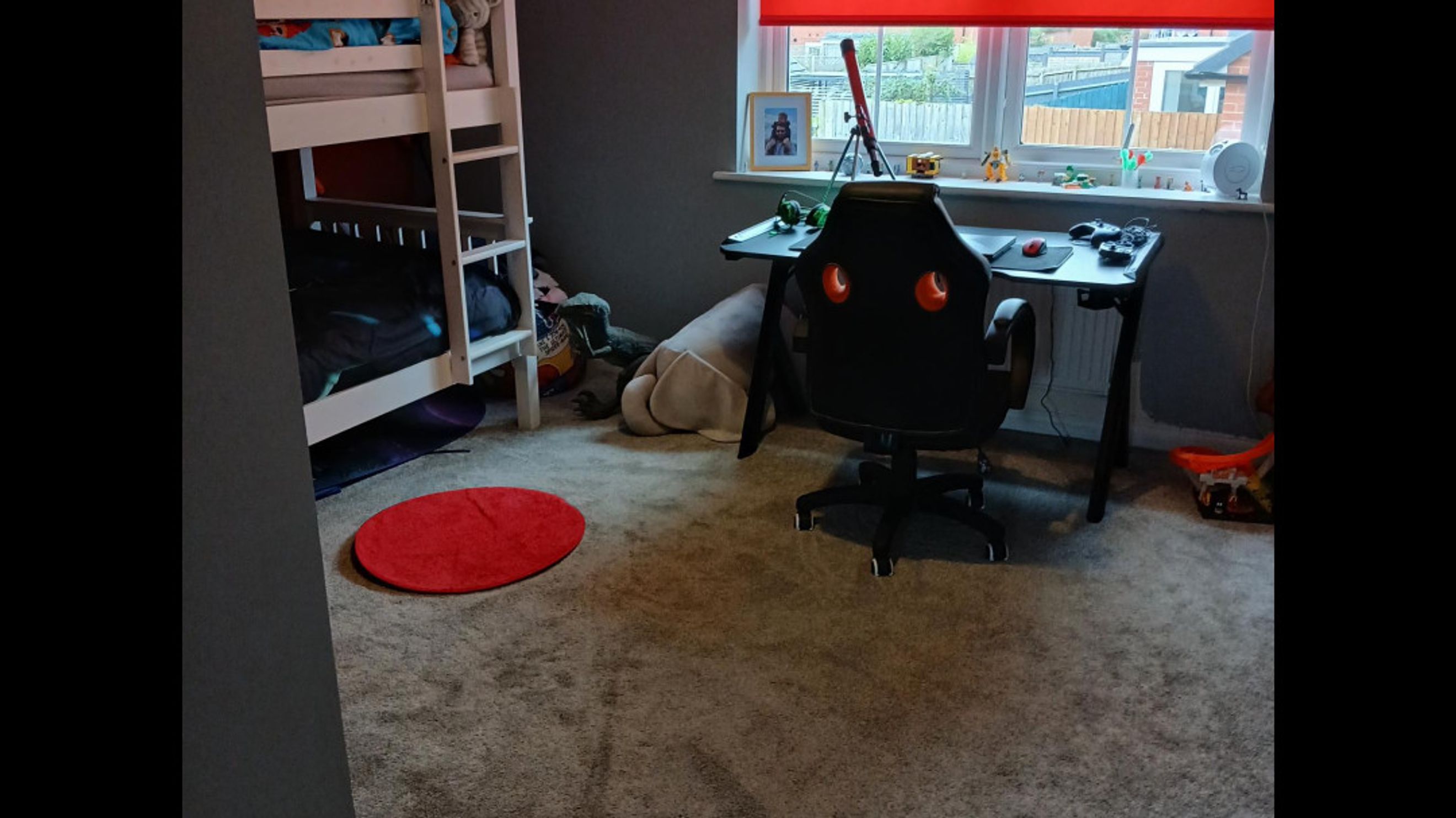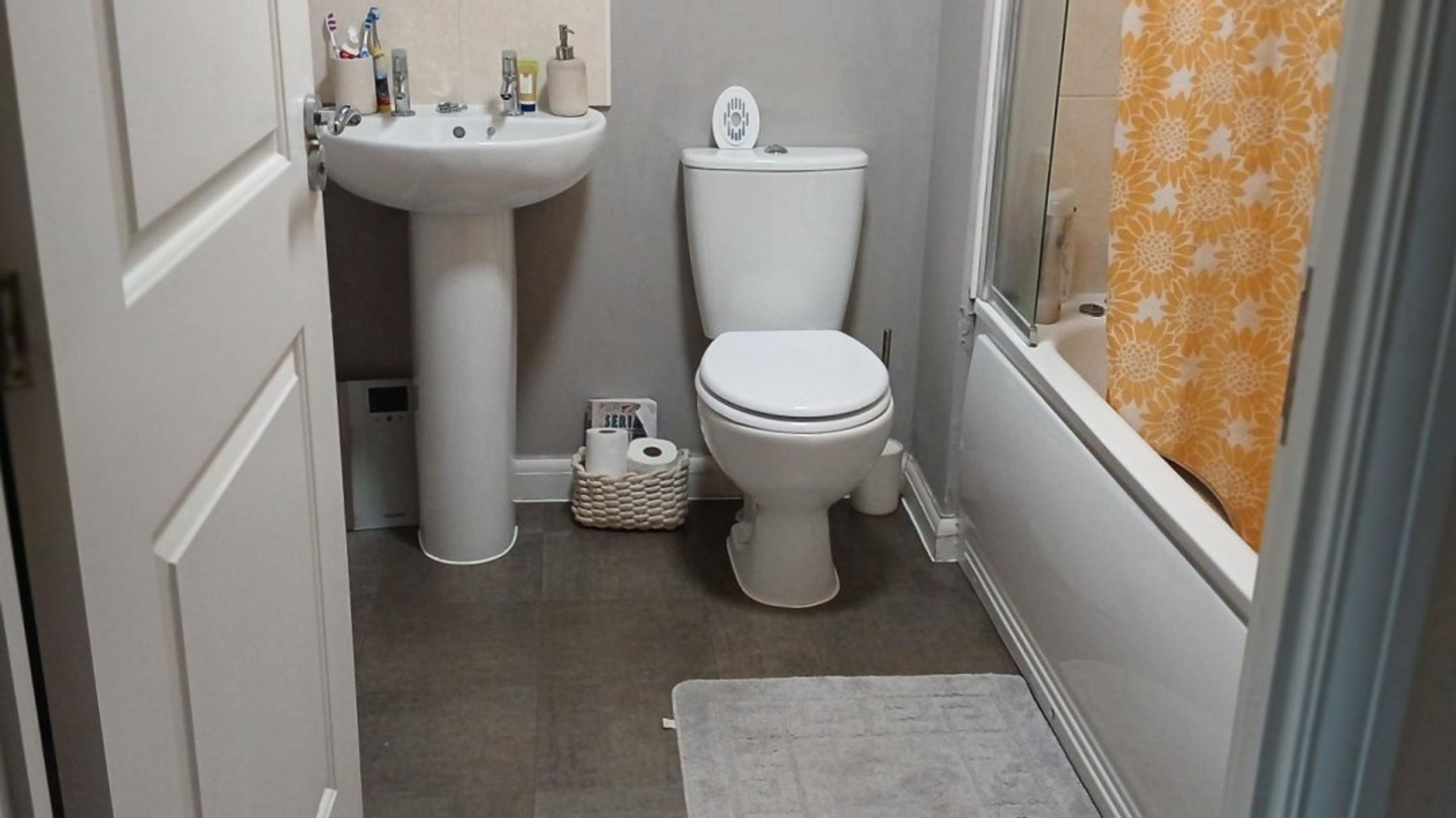 Upstairs, you'll find two generously sized bedrooms, both adorned with plush grey carpet, offering a cosy and comfortable retreat. The bathroom is partially tiled and includes a shower over the bath, complemented by a sleek white suite.