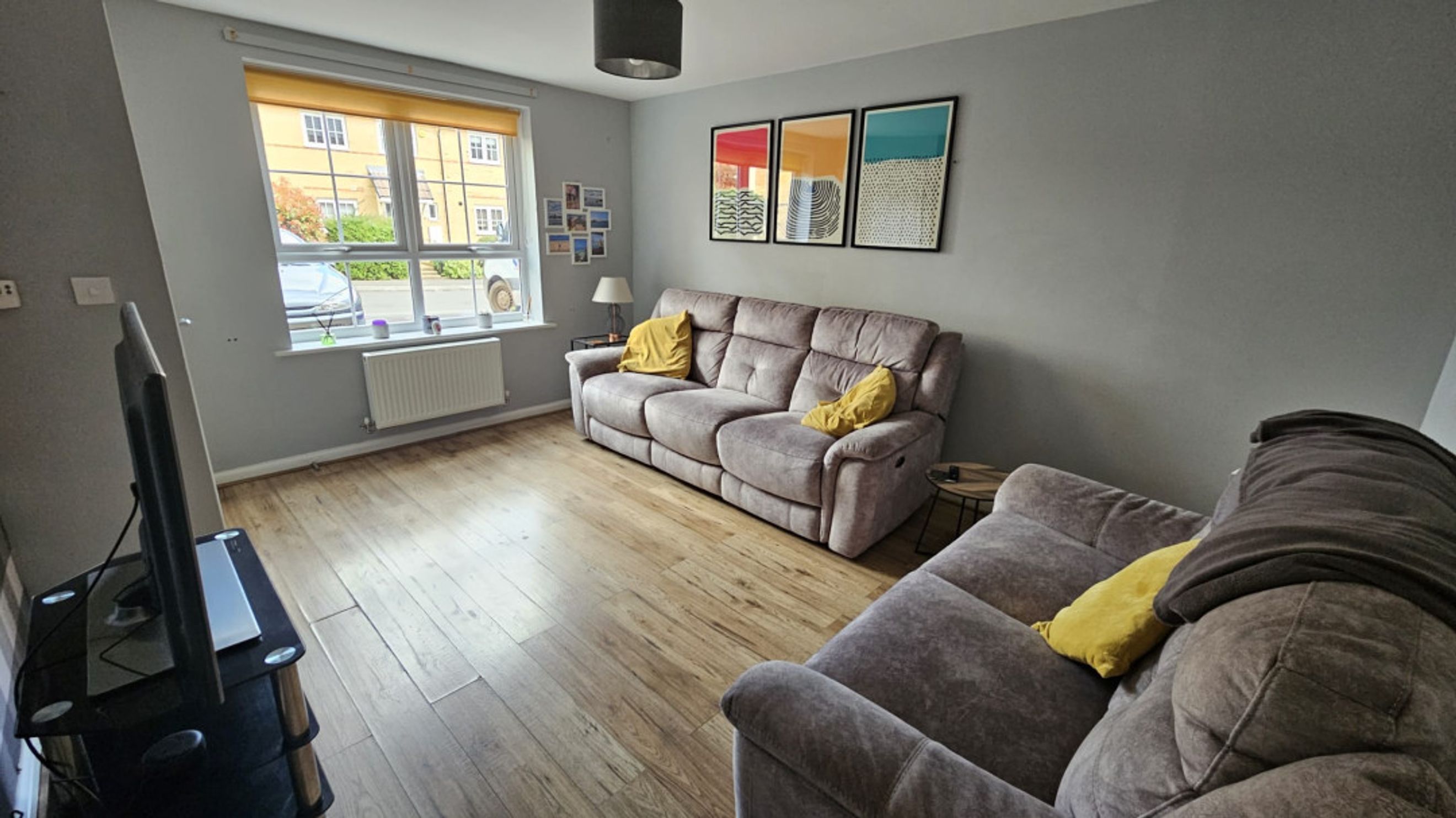 Welcome to this beautifully decorated 2-bedroom end terrace house, perfect for modern living. As you enter, you'll be greeted by a stylish entrance hall with laminate flooring.