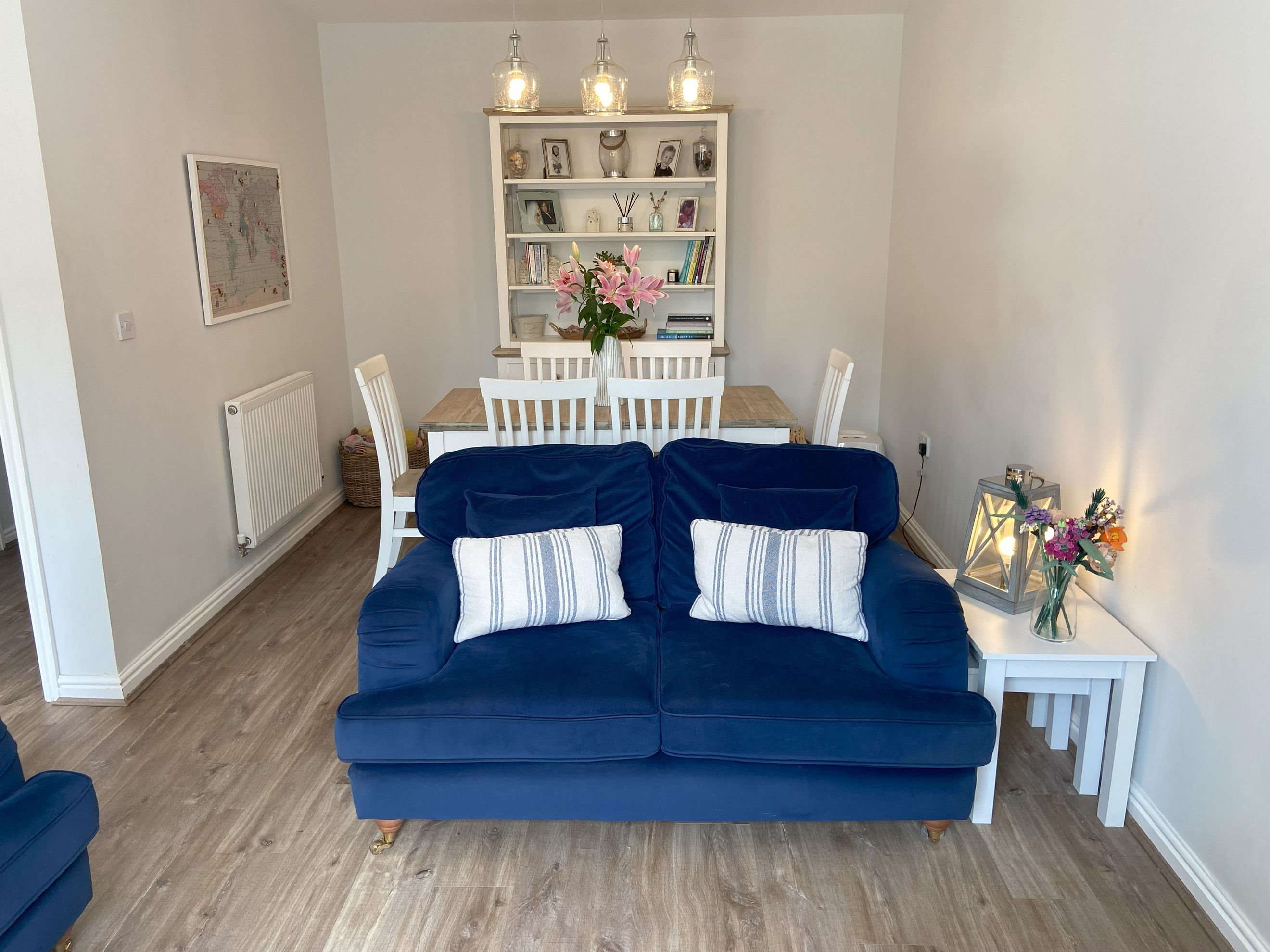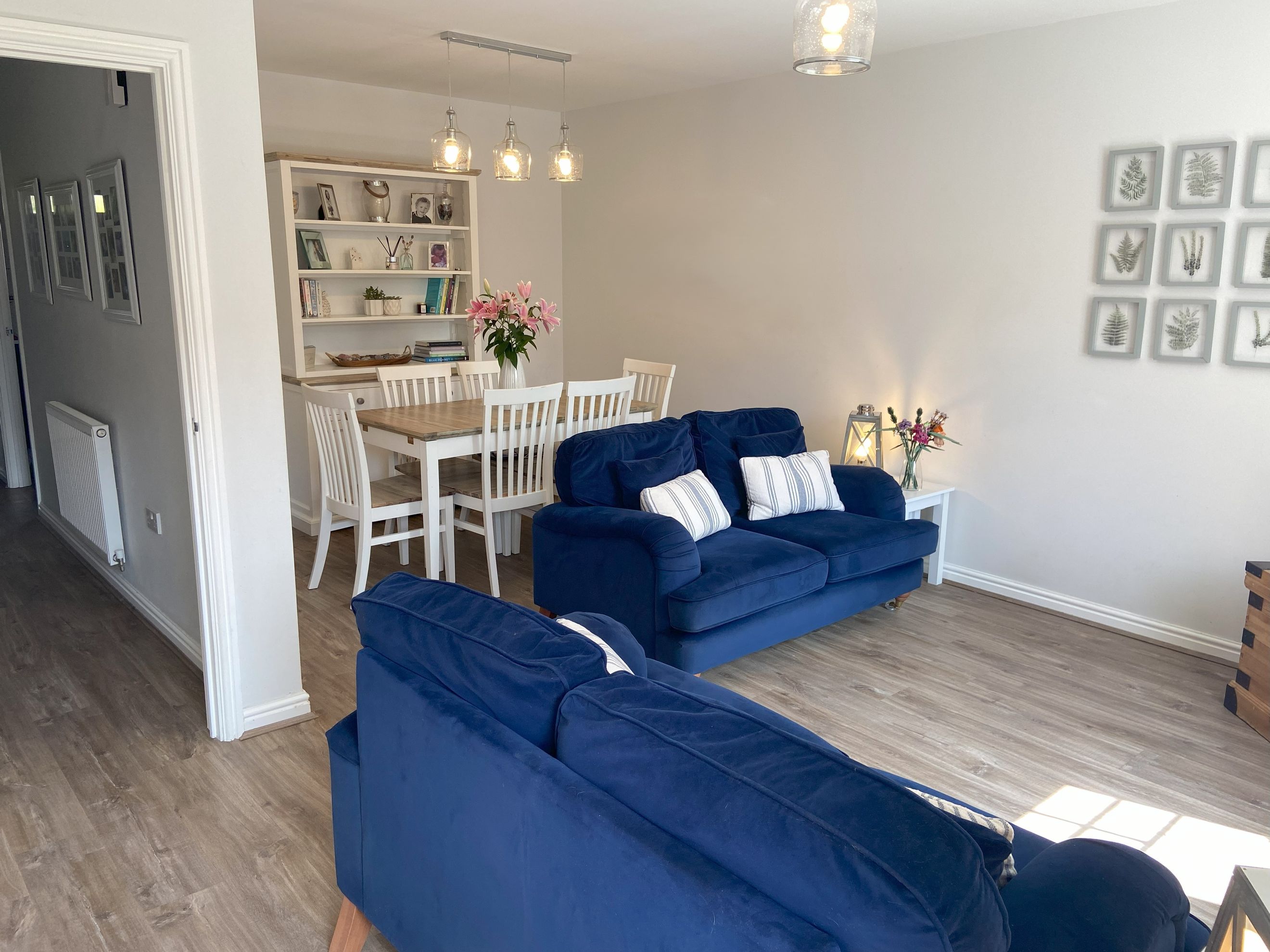 Spacious and light-filled sitting/dining room offering a flexible and functional layout.