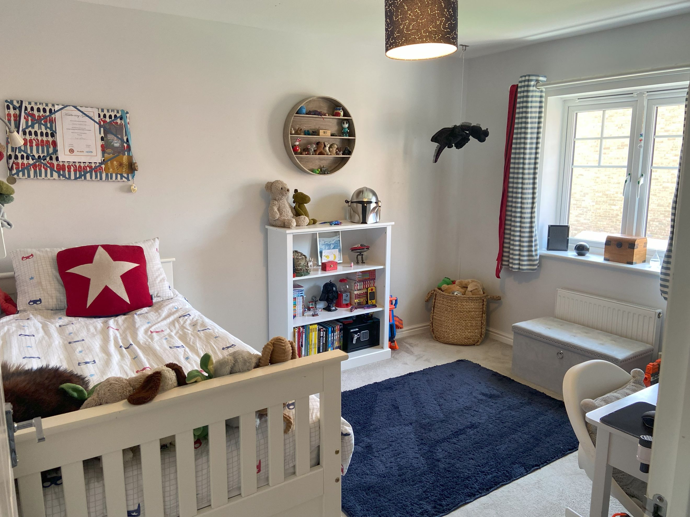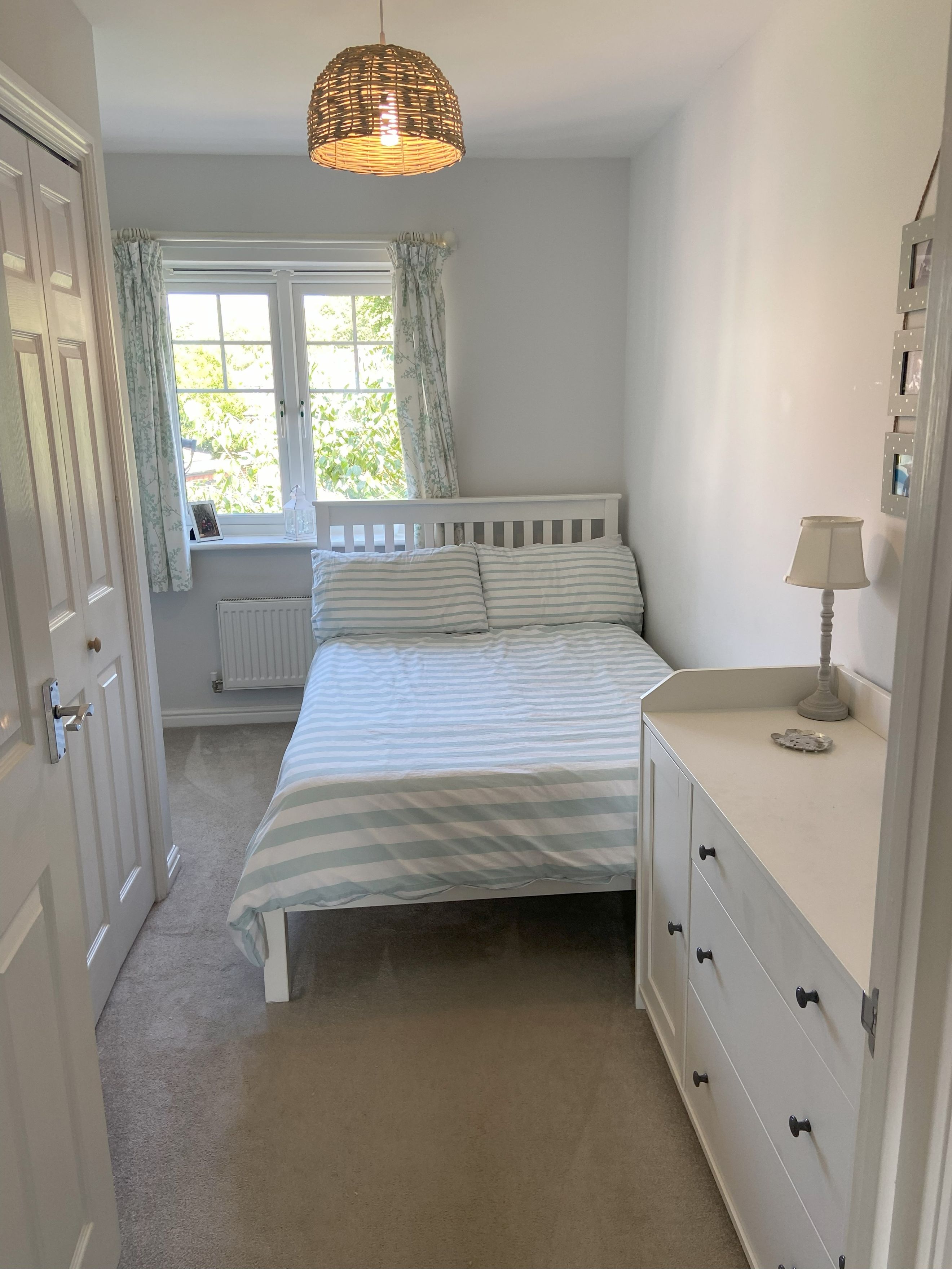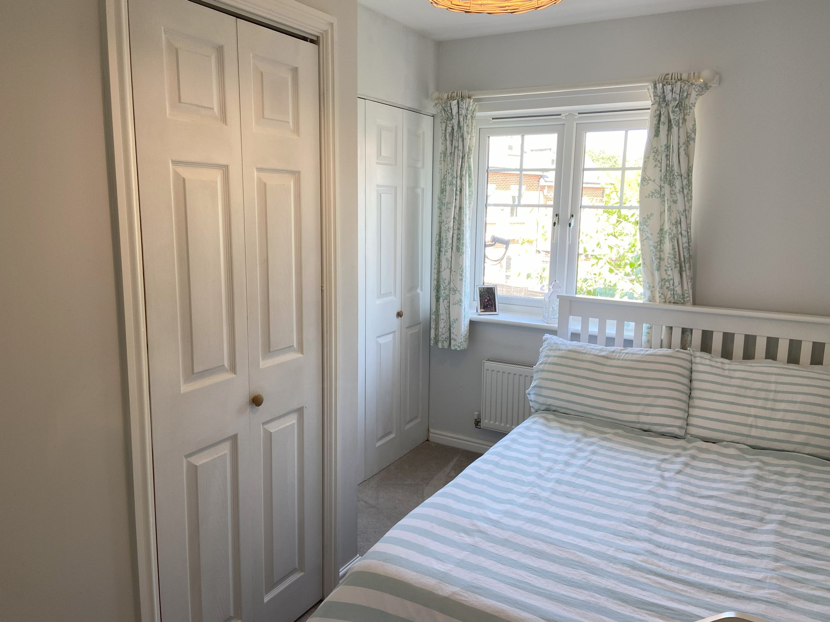 Single bedroom offering a built-in wardrobe and further storage cupboard.