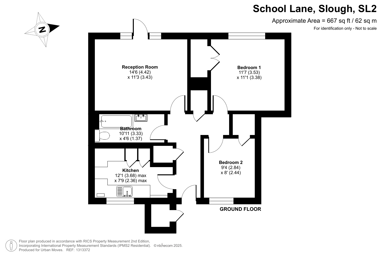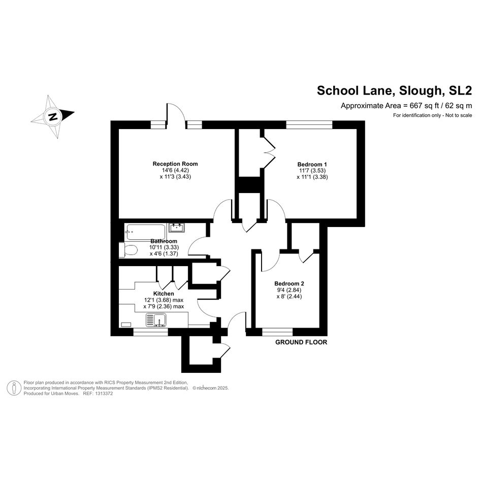 This ground-floor flat is accessed via a private entrance and has a good-sized kitchen, a smart, modern bathroom and a reception room which opens onto the communal rear garden. There is a spacious main bedroom plus a second bedroom which, though smaller, could still be considered a double. Both bedrooms include a built-in wardrobe. There are a pair of storage/utility cupboards in the hallway and an external store just outside the front door. Well insulated walls, double glazing and gas central heating make for a good energy-efficiency rating. The property comes with the use of two parking spaces and is also within comfortable walking distance, or a brief cycle ride, of Slough Railway Station and the town centre. School Lane is indeed close to a school - James Elliman (Primary) Academy was Ofsted-reviewed in 2024 and rated 'Good'.