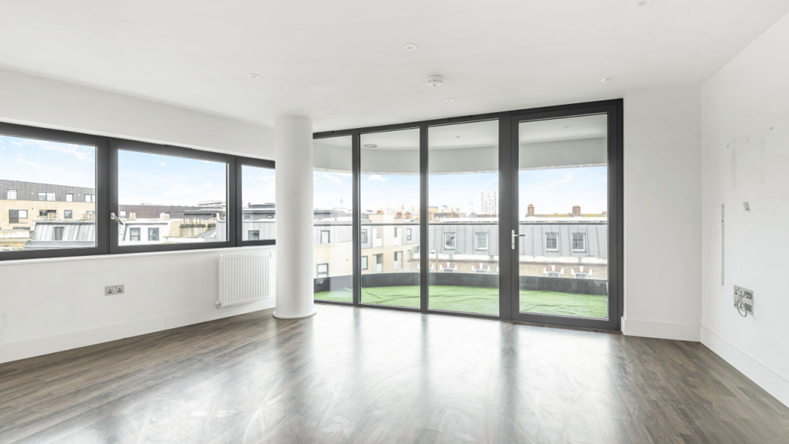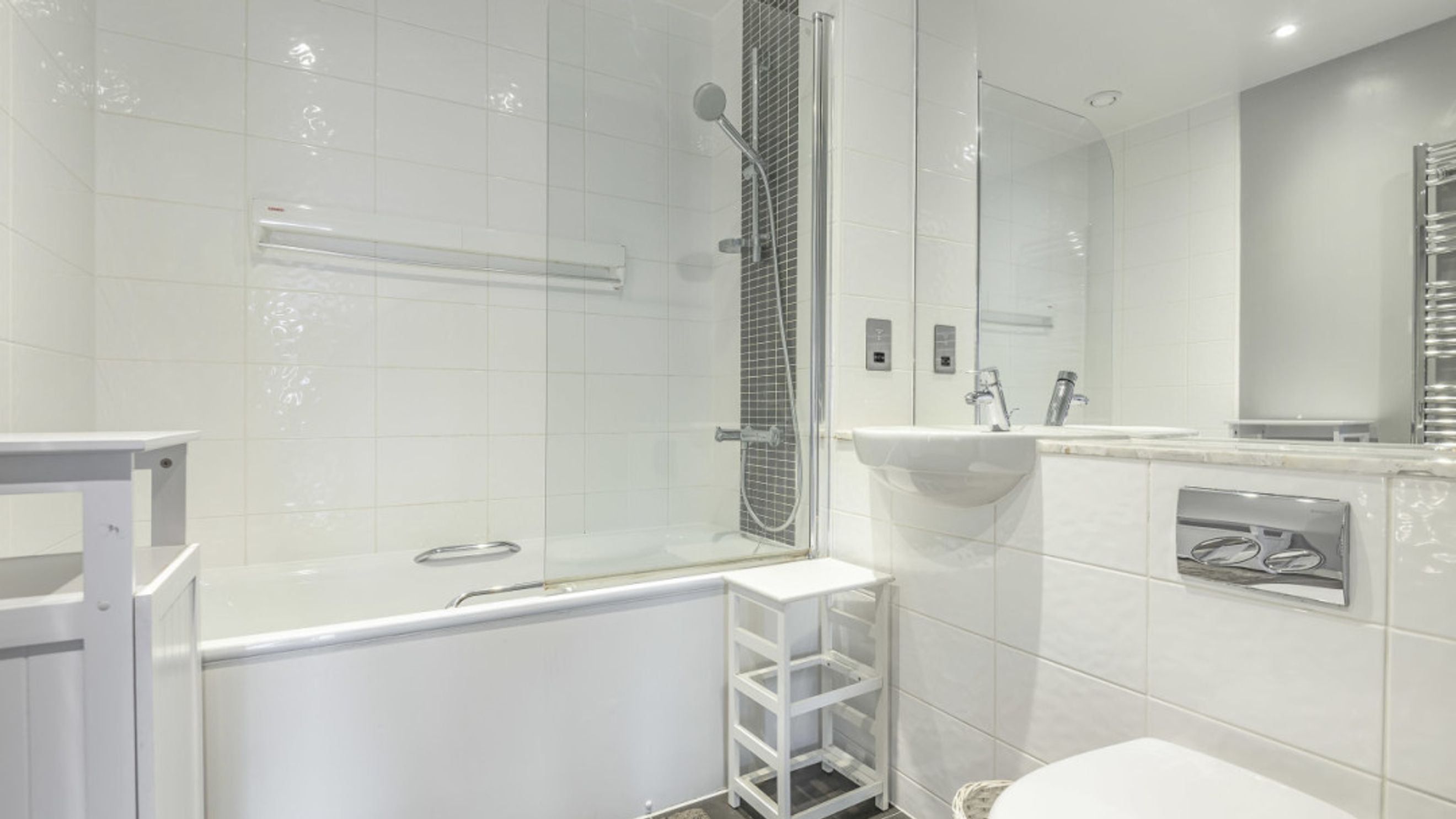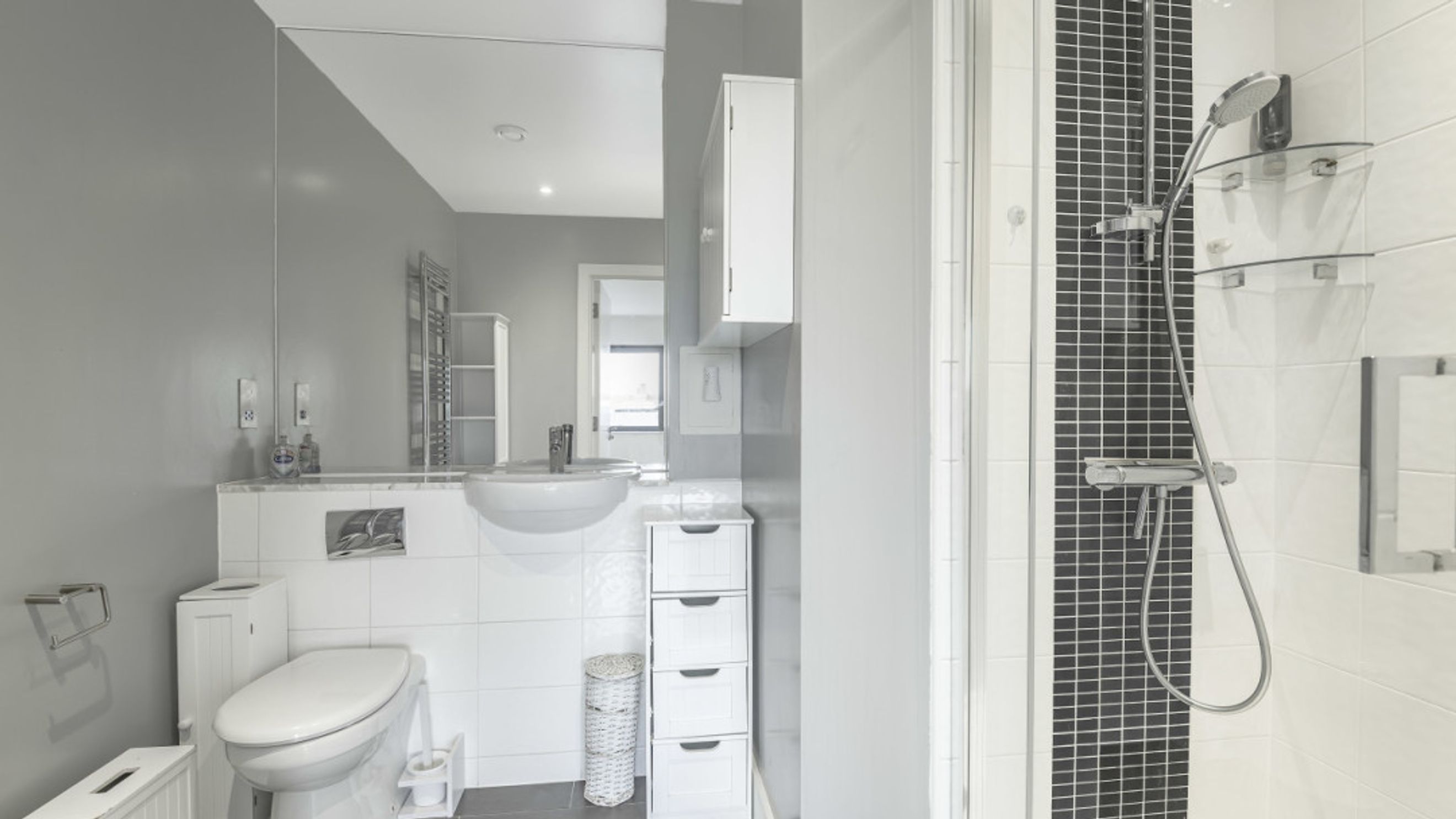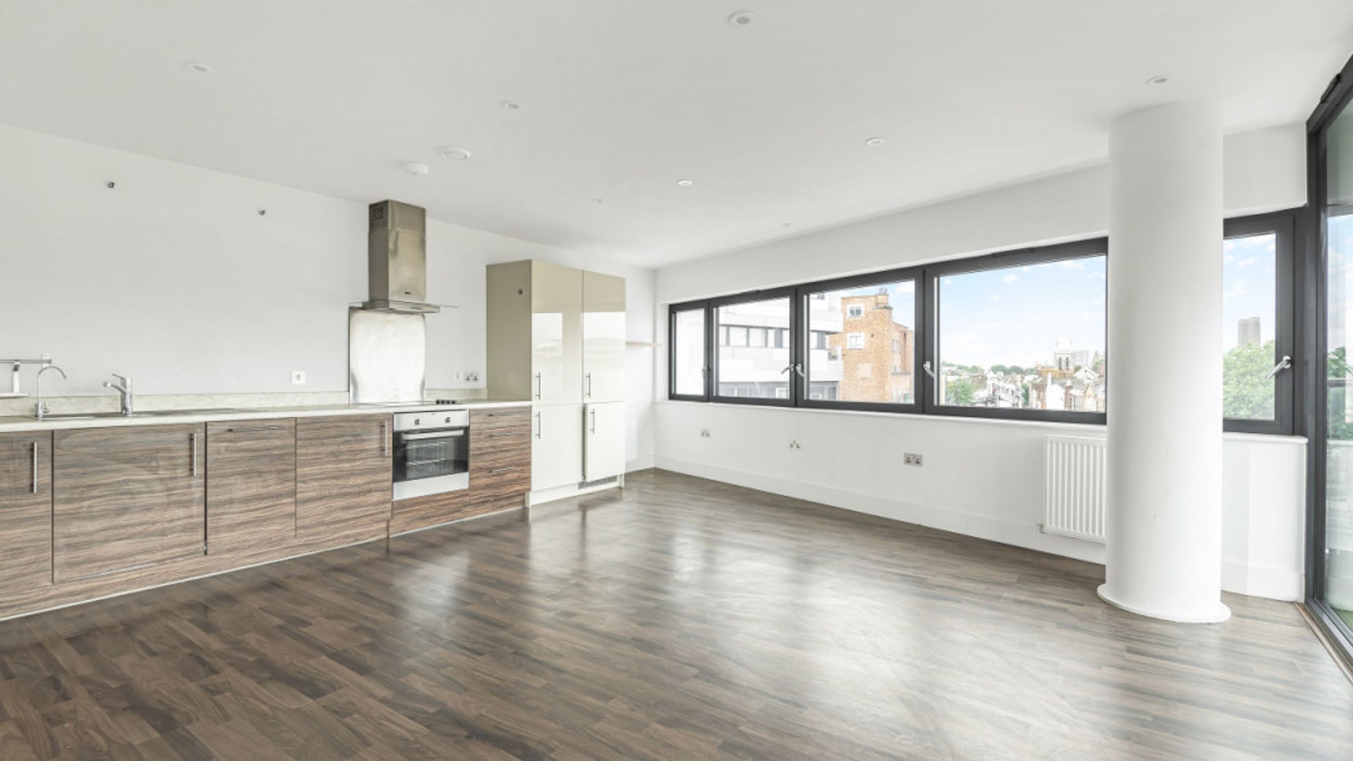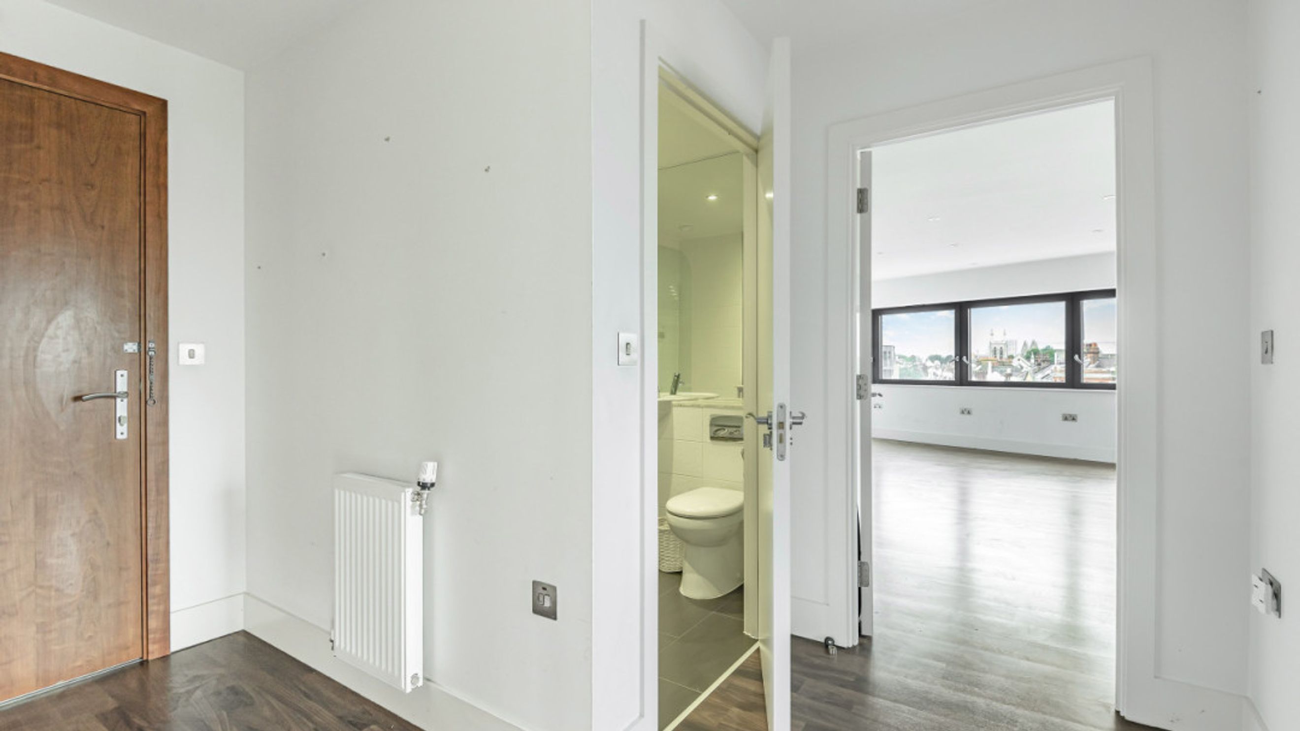 On entering this apartment, find the two double bedrooms to your right, the master with fitted wardrobe and en-suite shower room. Walk past the contemporary family bathroom into the dual aspect living area, which is flooded with light from the large windows. A larger than average balcony suitable for reclining or dining opens from the living area.