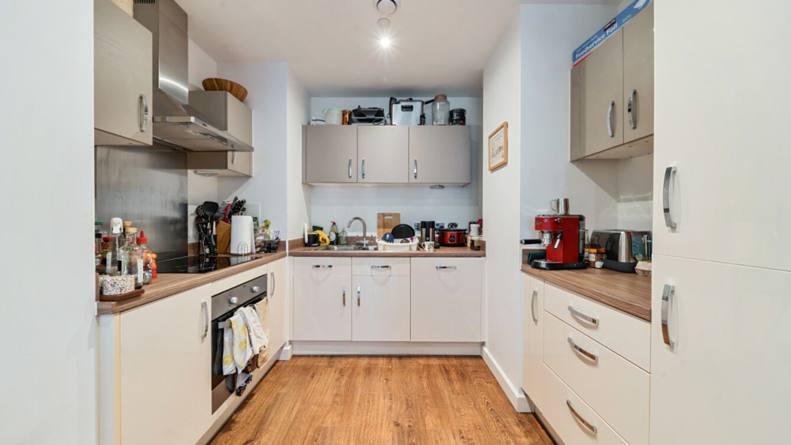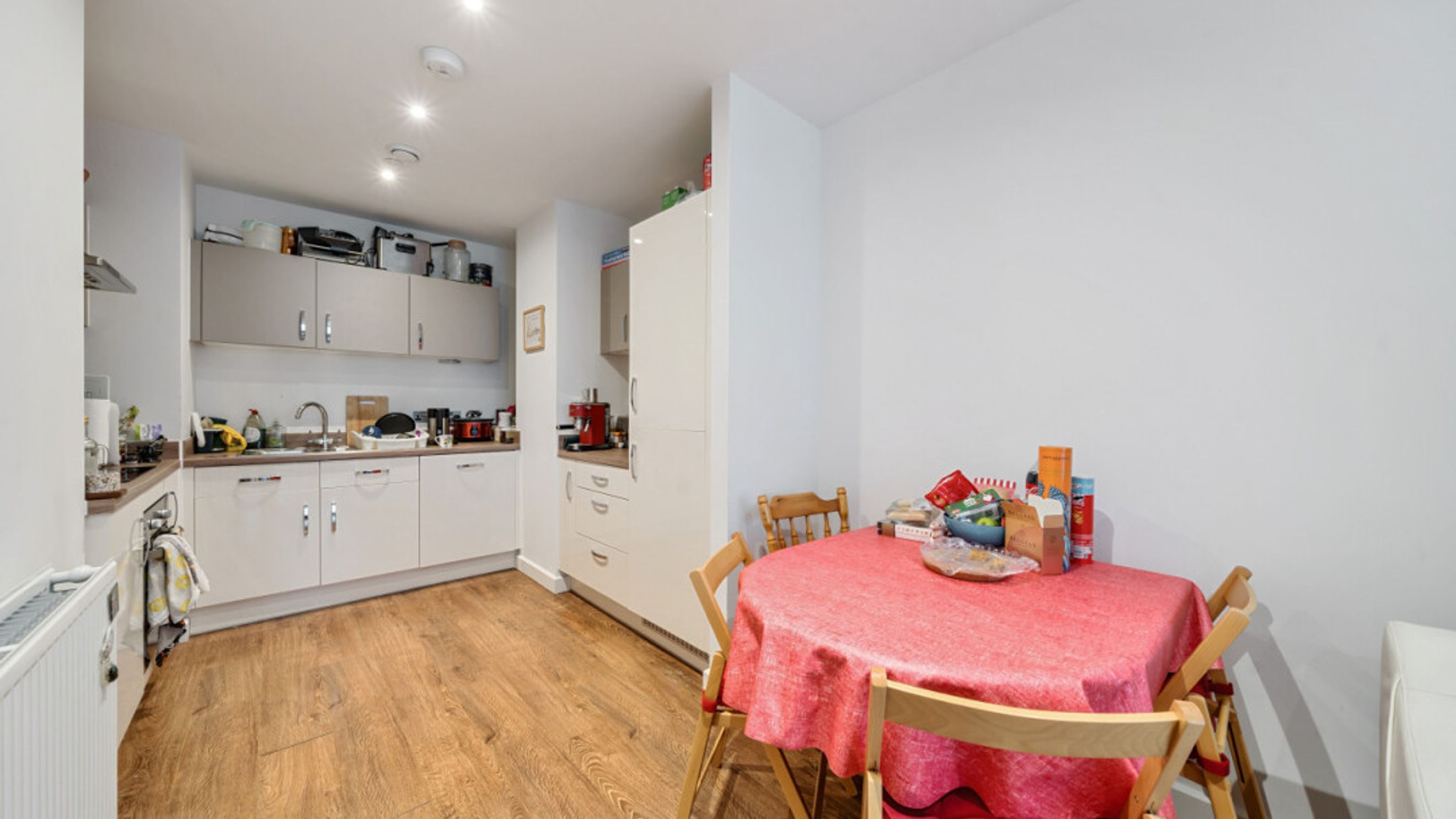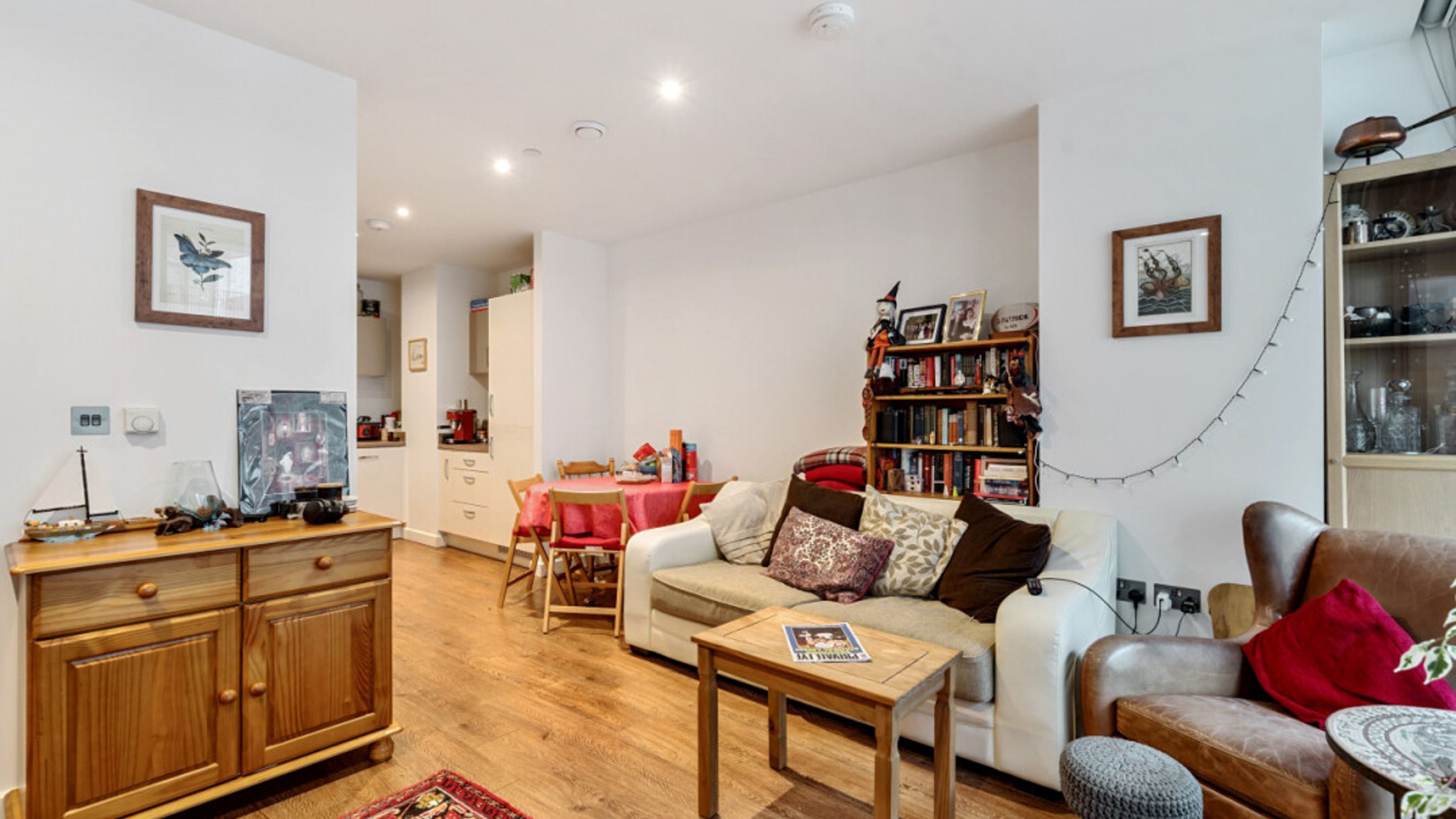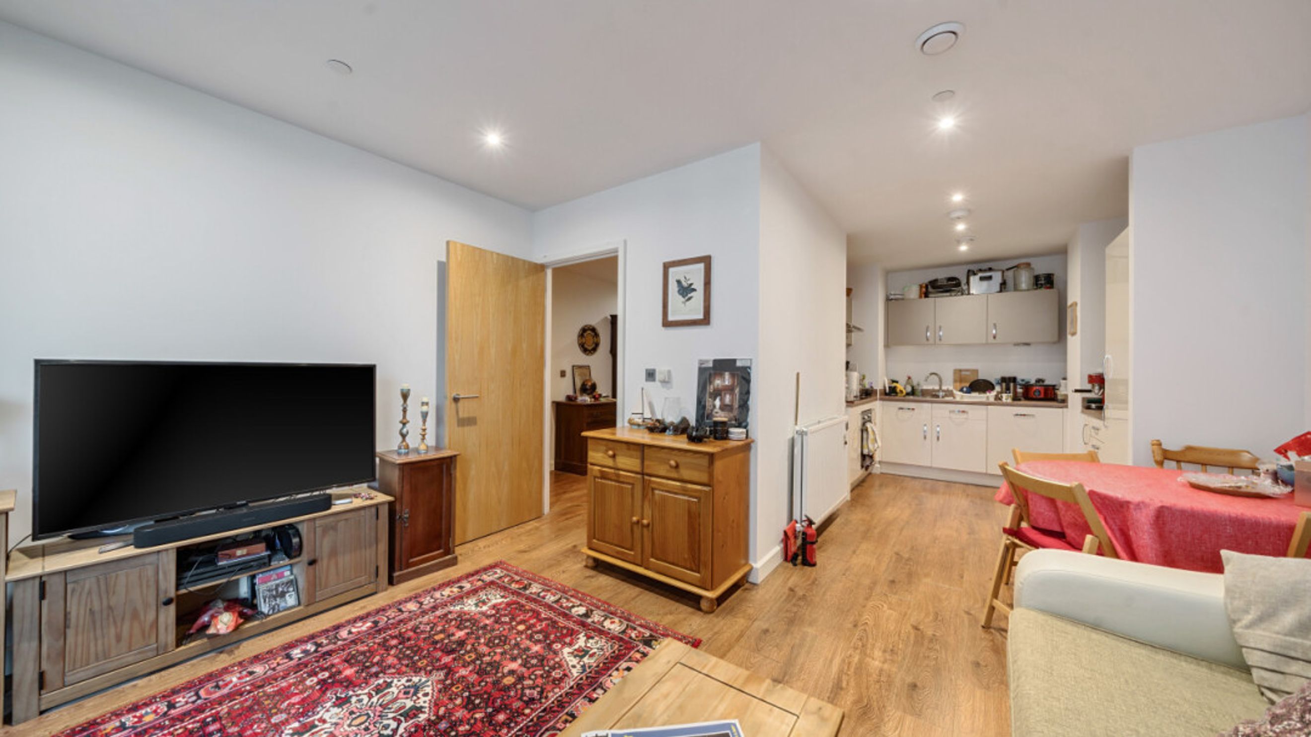 Enter this bright and spacious apartment through a hallway, with storage cupboards, one of which is currently set up as a home office. The open plan living area, incorporating a beautiful kitchen, leads to a private balcony. The well proportioned double bedroom benefits from built-in storage and a contemporary bathroom completes the accommodation.