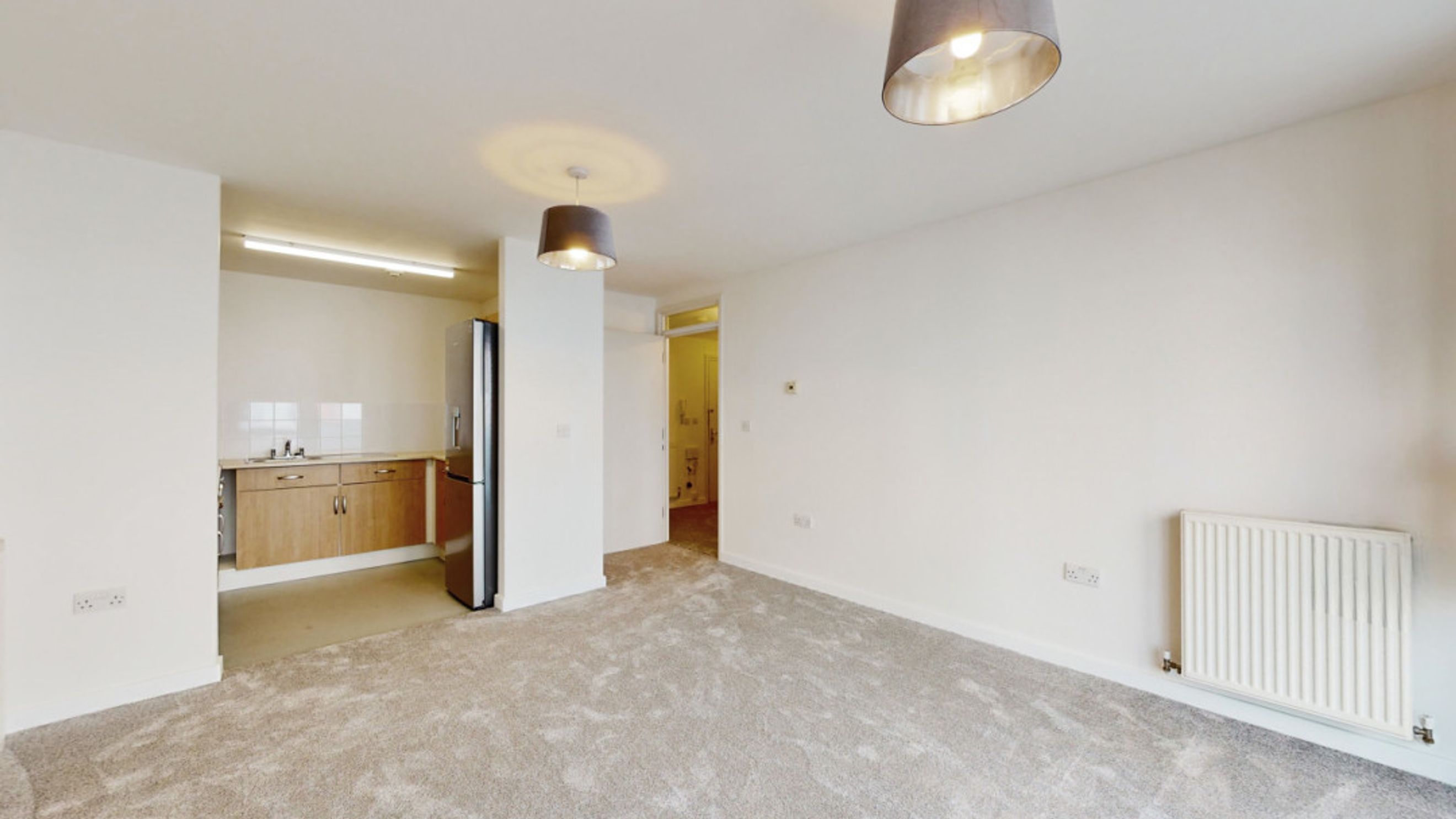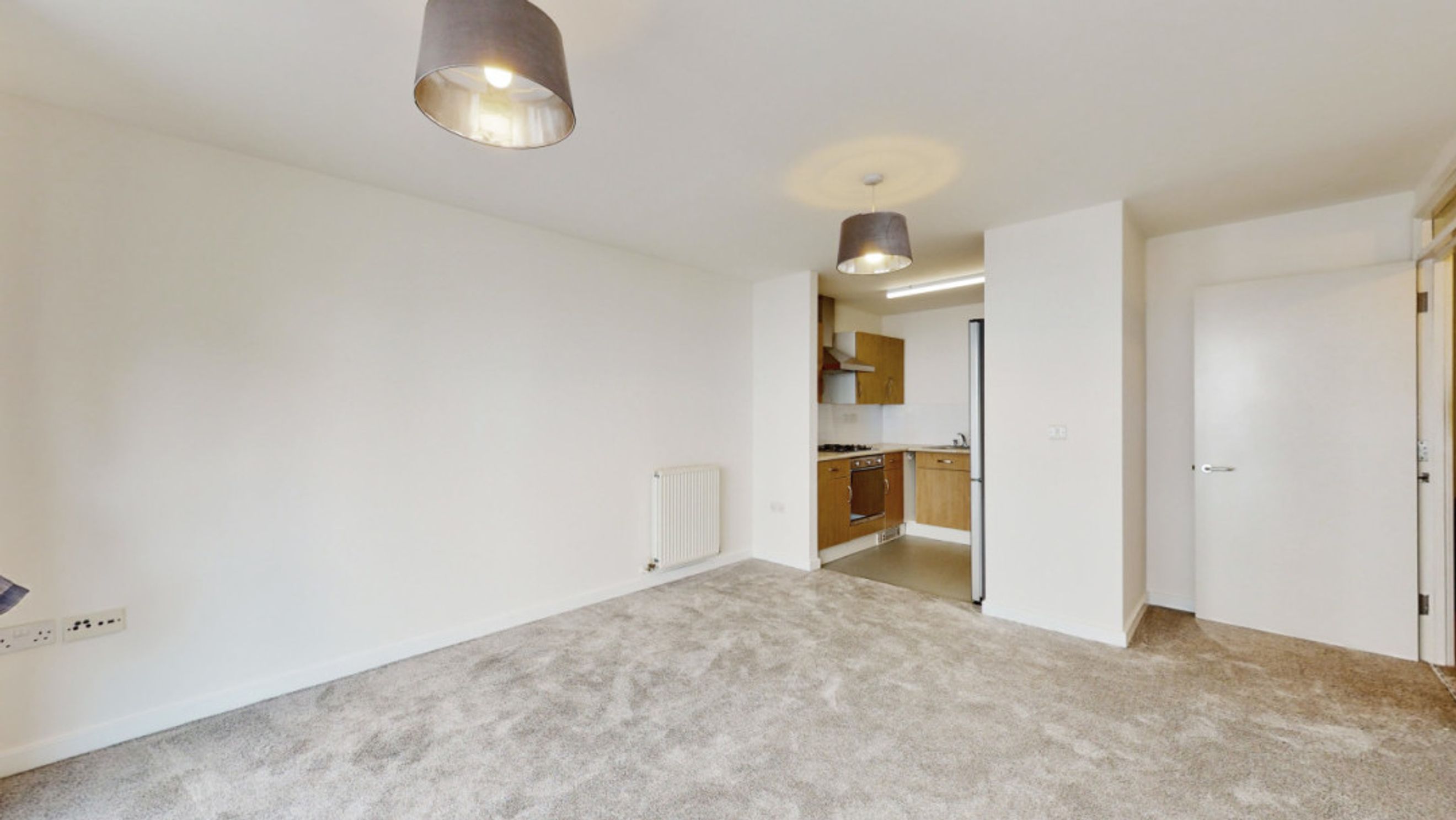 This apartment consists of an open-plan kitchen and living area, opening out onto a private balcony with canal views. The kitchen is fitted with light wood effect wall and base units, with a light wood effect worktop and white tiling. The kitchen also benefits from integrated appliances including an oven, hob, and extractor fan. One double bedroom benefits from a built-in wardrobe. The bathroom comes complete with a new modern white three-piece suite with a shower over the bath, and grey tile surround. New carpet throughout hallway, bedroom and living area.