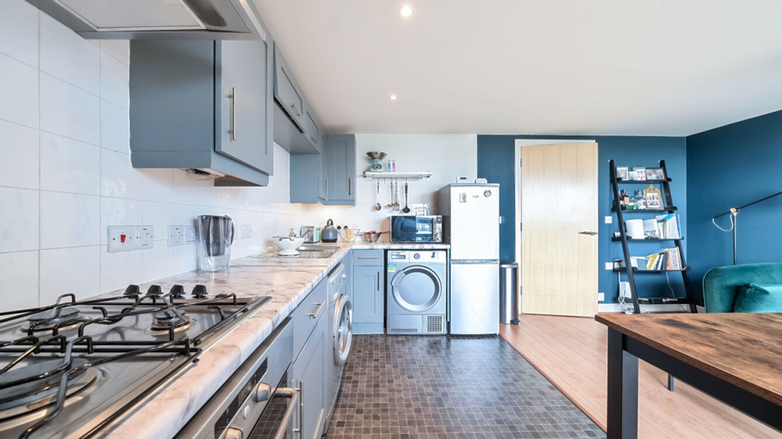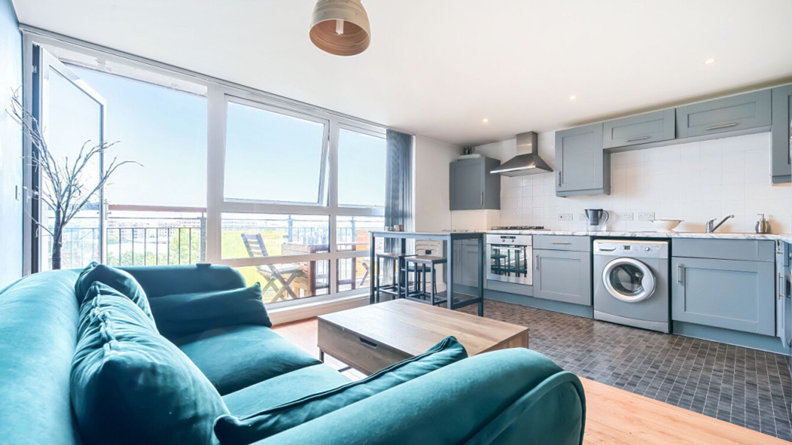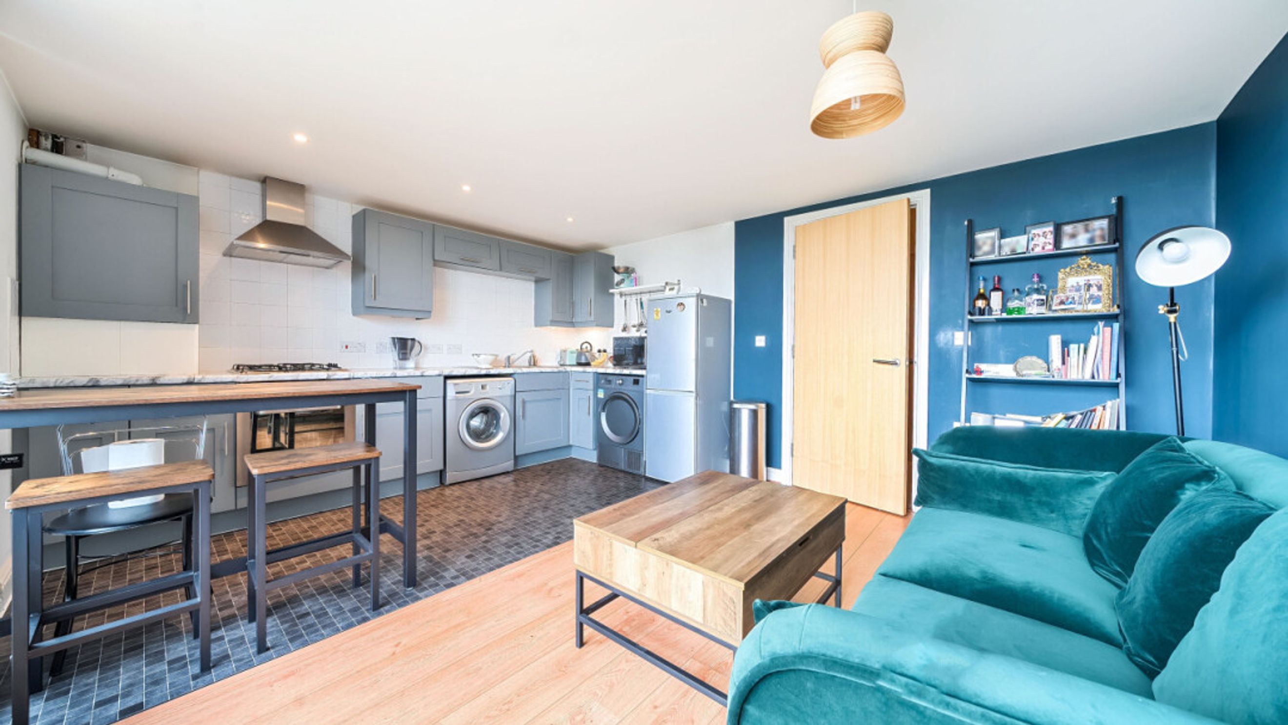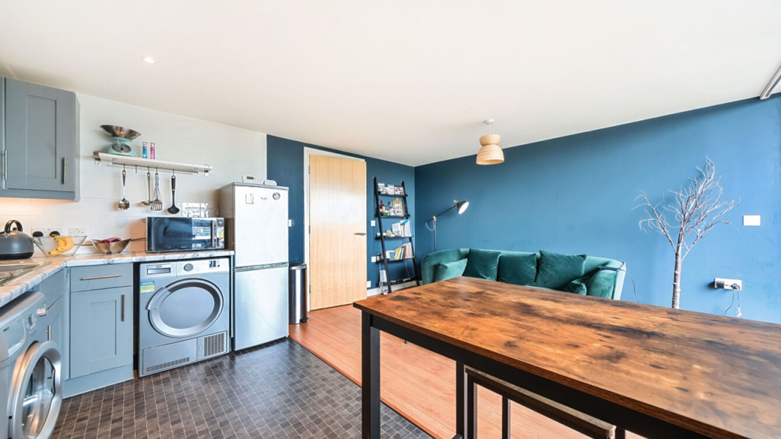 This bright and spacious one bed apartment consists of a stylish open-plan kitchen and living area, flooded with natural light from wide floor-length windows with door leading to private balcony. The kitchen is fitted with matt grey wall and base units, with under-cupboard lighting, and a white stone effect worktop. The kitchen also benefits from integrated appliances including a oven, hob and extractor fan. Spacious main double bedroom benefitting from built-in storage cupboards. The bathroom comes complete with a white three-piece suite with a shower over bath and a stone tile surround. Additional double storage cupboards in hallway. This property benefits from a sinking fund. A sinking fund is a long-term savings plan that leaseholders contribute to every month through service charges. This is used to pay for major works that are required, such as replacing a roof.