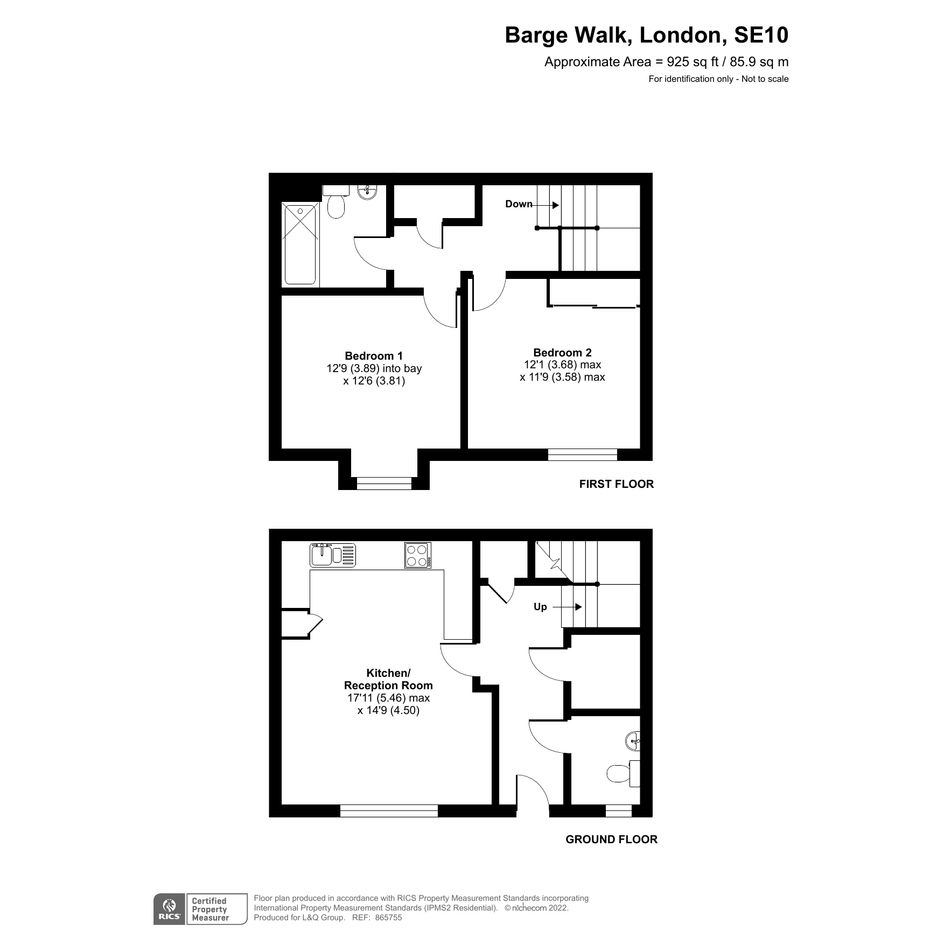Enter this bright and spacious maisonette via a private patio area. The good sized open plan living area is lit by full width floor to ceiling windows overlooking the patio. There is a walk in store, additional storage and a cloakroom/WC at this level. On the first floor, there are two double bedrooms, one with direct access to a private balcony and the other benefitting from built-in storage. Further storage and a contemporary bathroom complete the accommodation.