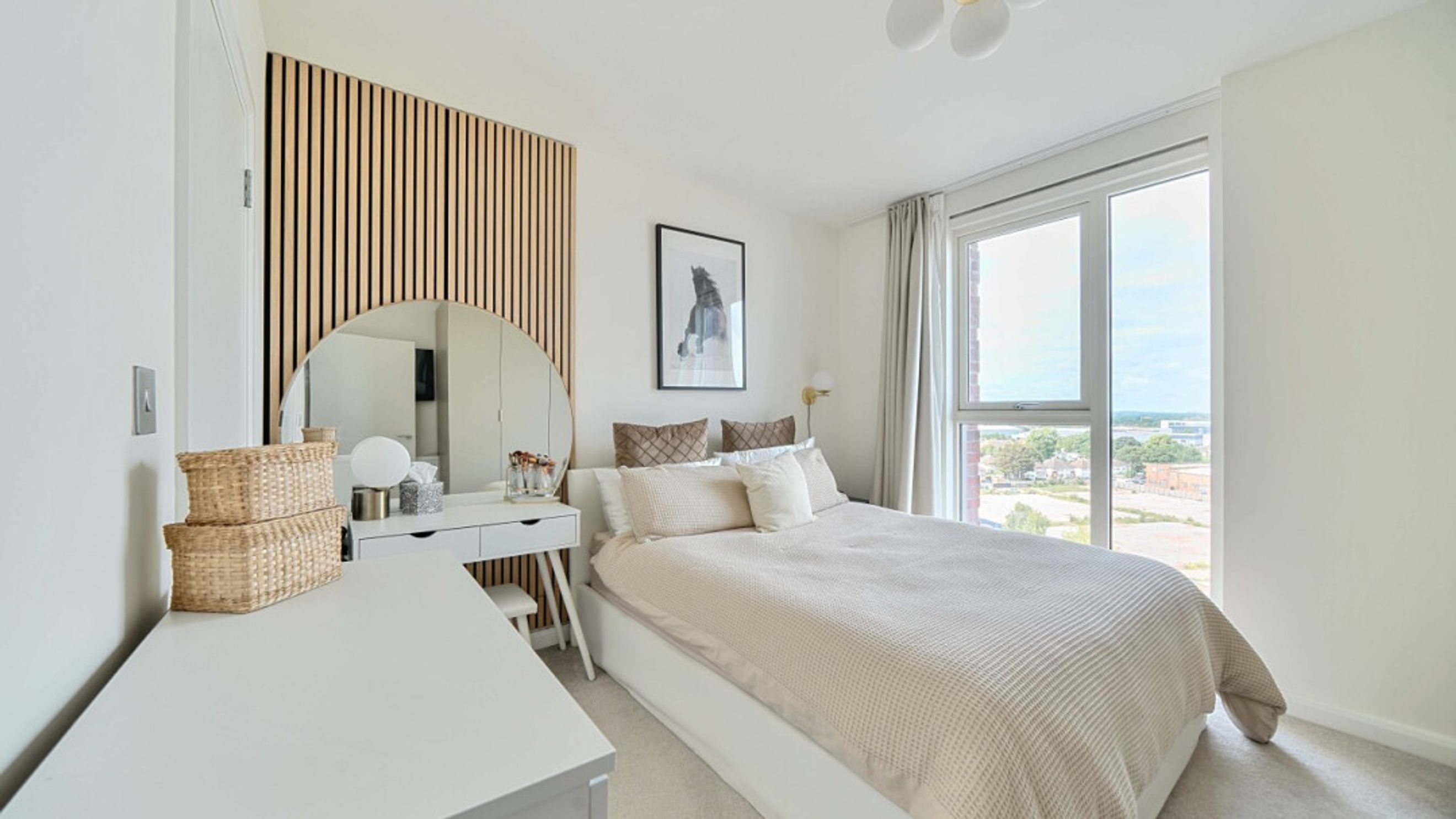 Enter this well presented top floor apartment via an entrance hall with two storage cupboards. The large, dual aspect open-plan living area, incorporating a modern kitchen with integrated appliances, leads directly on to a private west facing balcony with breathtaking views. There are two generous double bedrooms, the master including in-built storage and en-suite shower room. A contemporary family bathroom completes the accommodation. Residents have the right to park in an allocated parking bay.