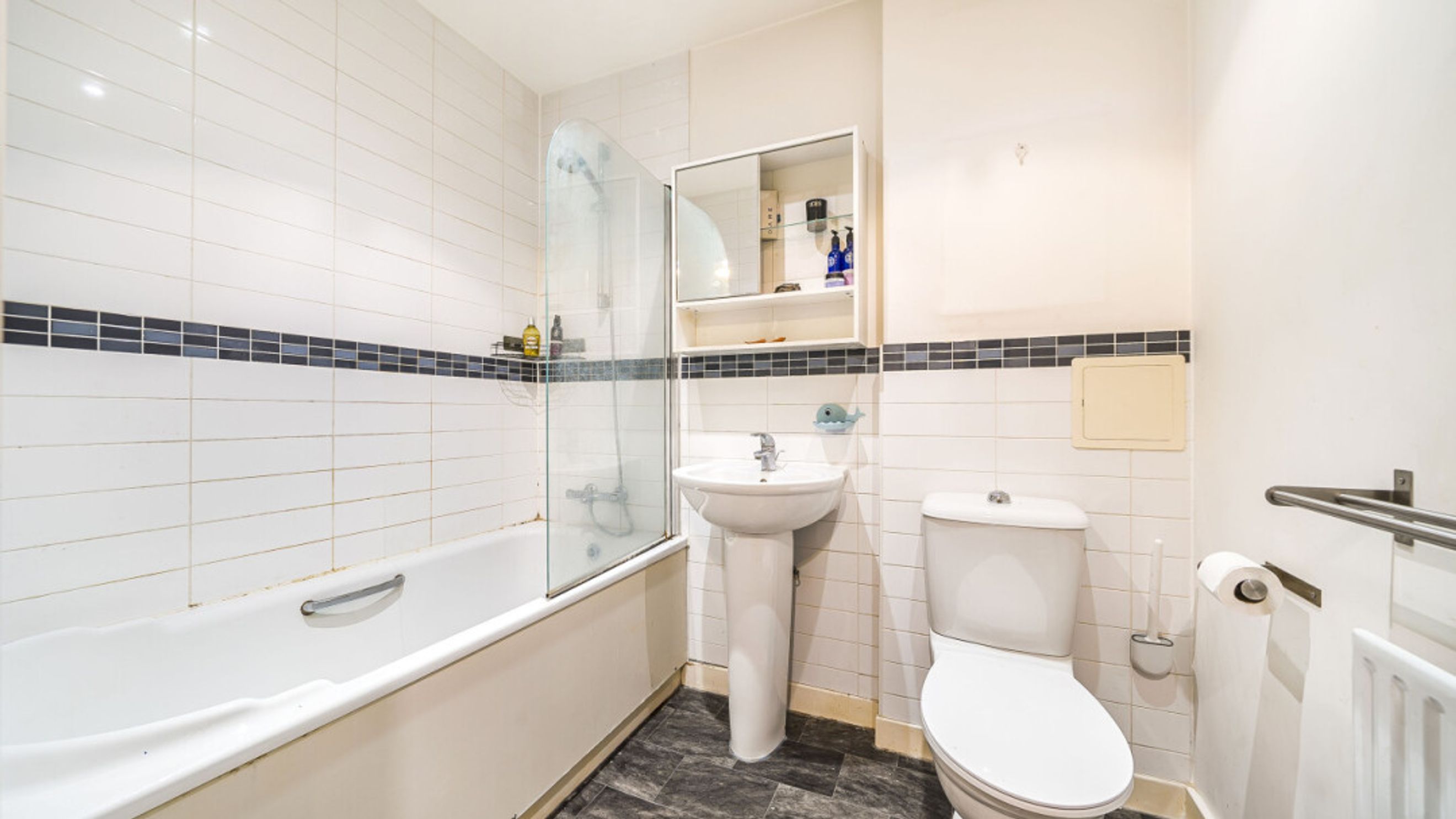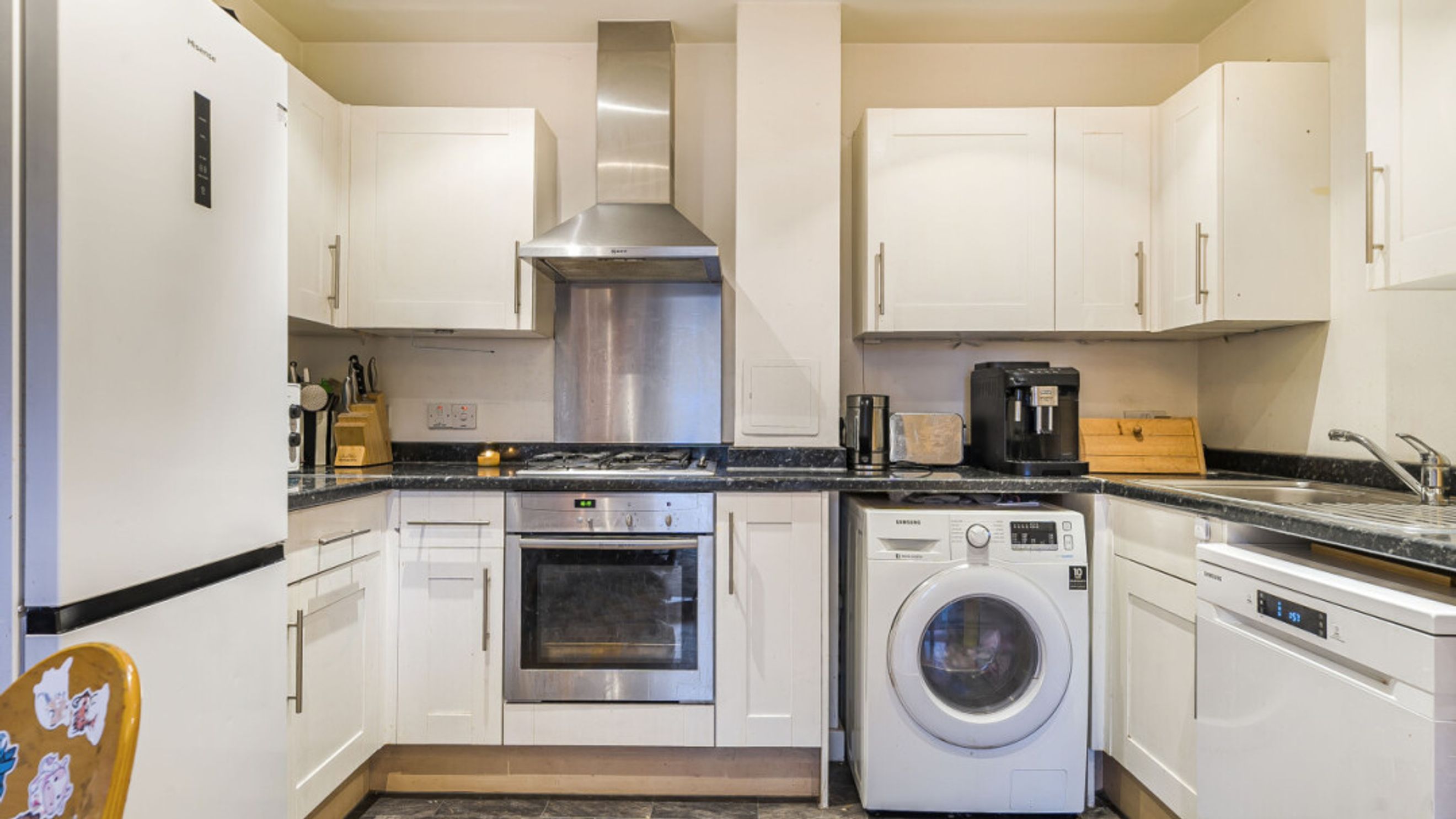 A wide entrance hall, complete with storage cupboards welcomes you into this well presented apartment. consisting of an open-plan kitchen and living area, flooded with natural light from wide floor-length windows, which open onto a west facing private balcony. The modern white kitchen includes an integrated oven, hob and extractor and has spaces for all your white goods.The double bedroom benefits from built-in storage cupboards and a family bathroom completes the accommodation.
