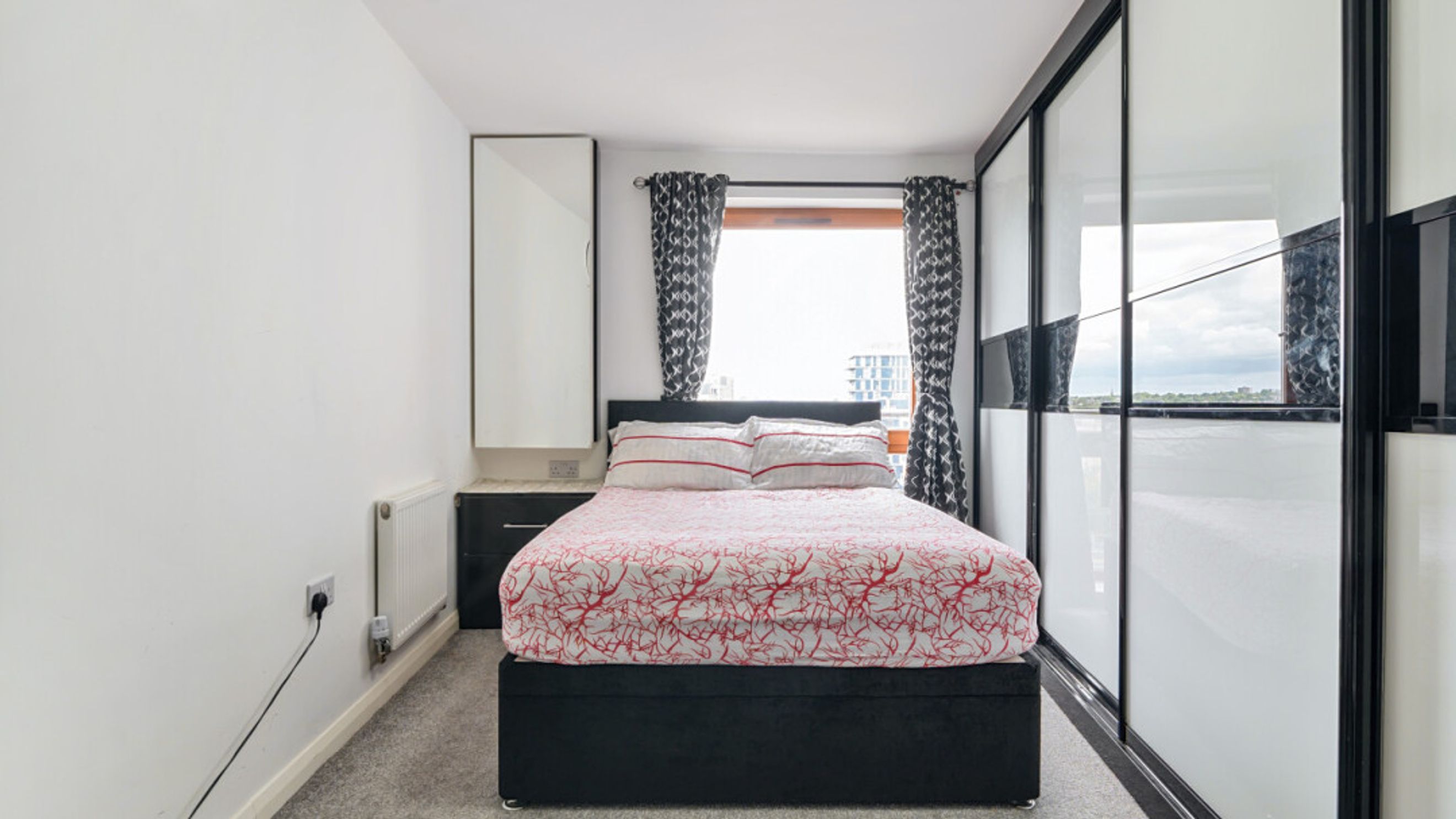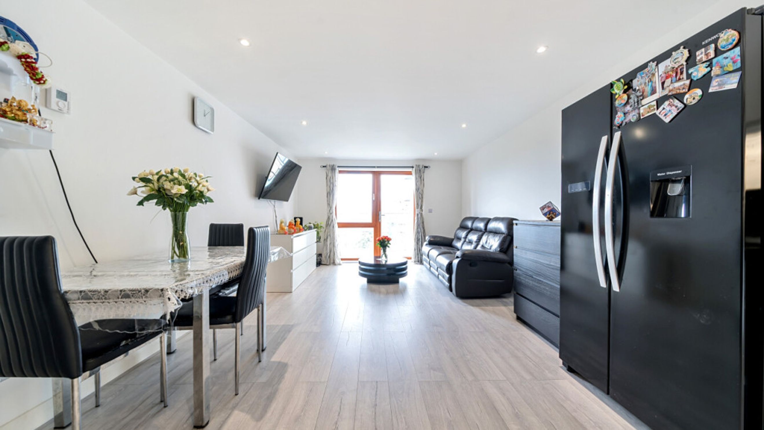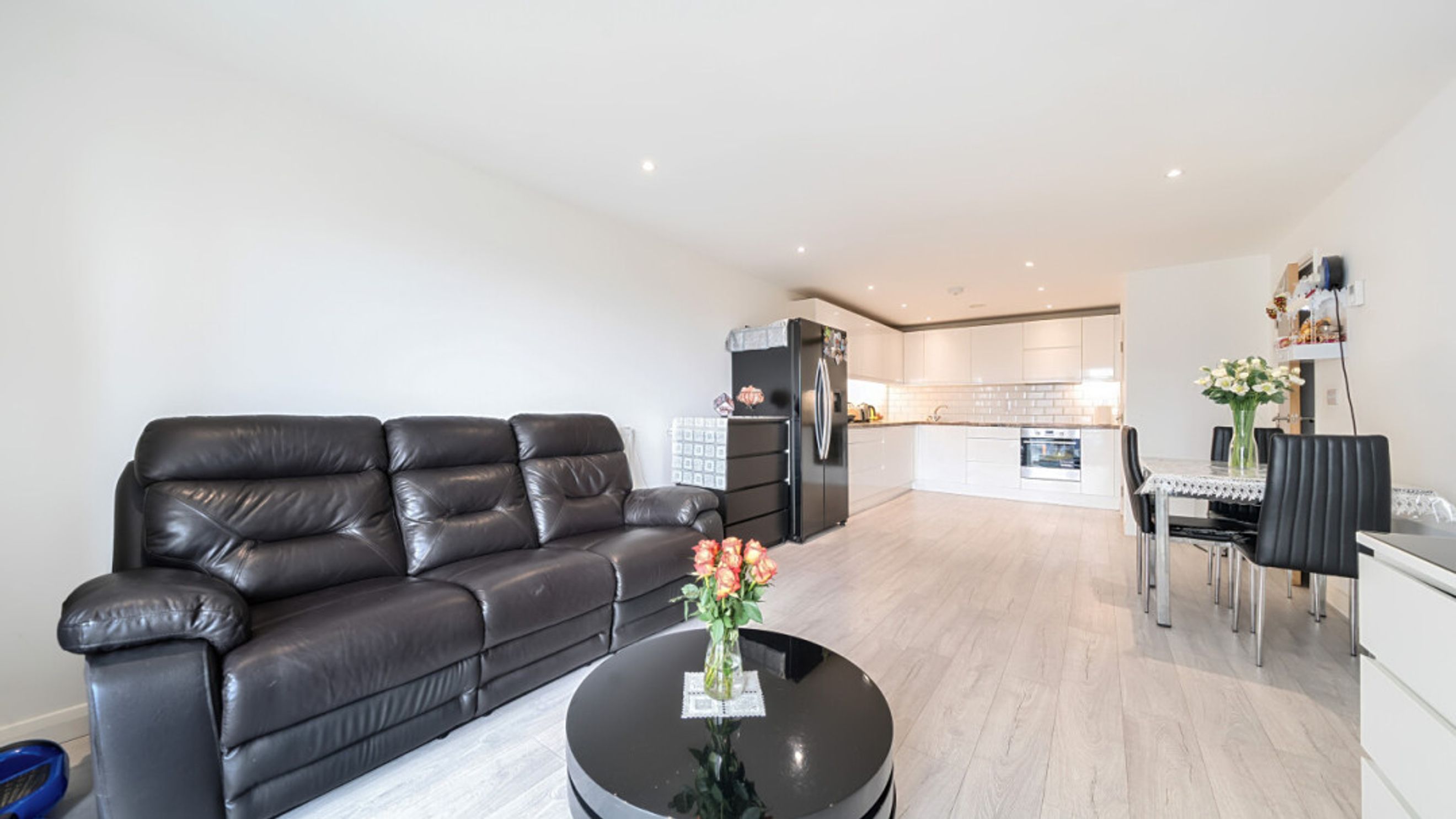 This bright and spacious apartment consists of a stylish open-plan kitchen and living area, flooded with natural light from wide floor-length windows, leading onto a private balcony overlooking the canal. The kitchen is fitted with white gloss wall and base units, with under-cupboard lighting, and a granite effect worktop. The kitchen also benefits from integrated appliances including an oven, hob, extractor fan and dishwasher. Spacious main double bedroom benefitting from built-in storage cupboards. Bright and airy second double bedroom. The bathroom comes complete with a white three-piece suite with a shower over bath and a white tile surround.