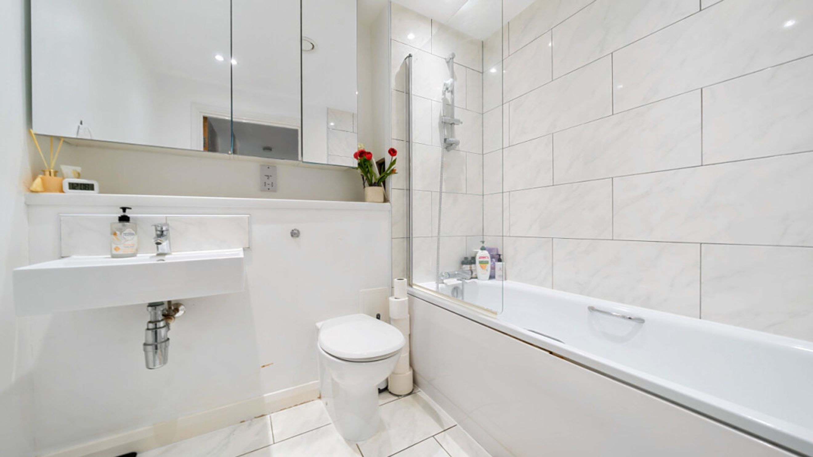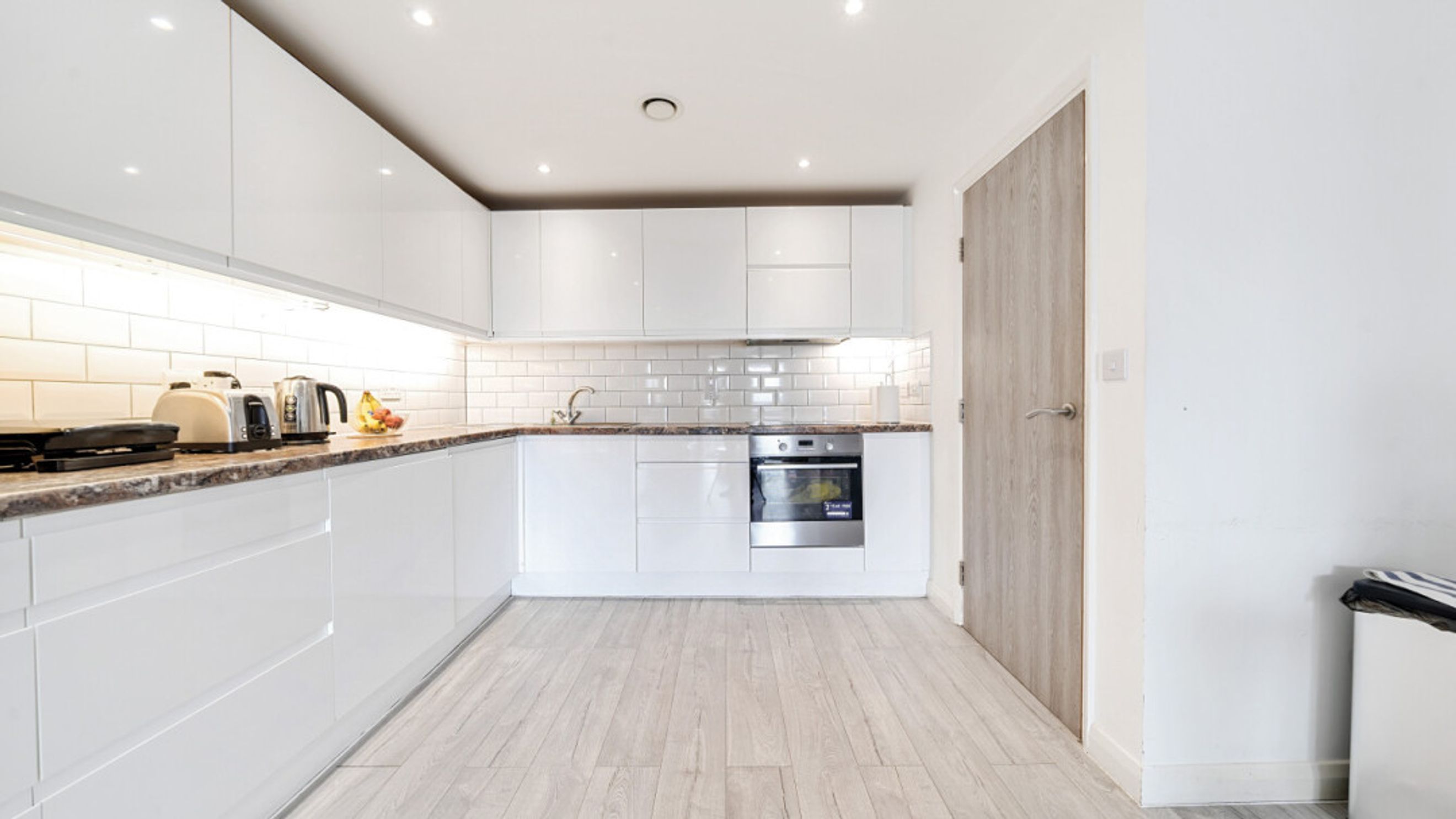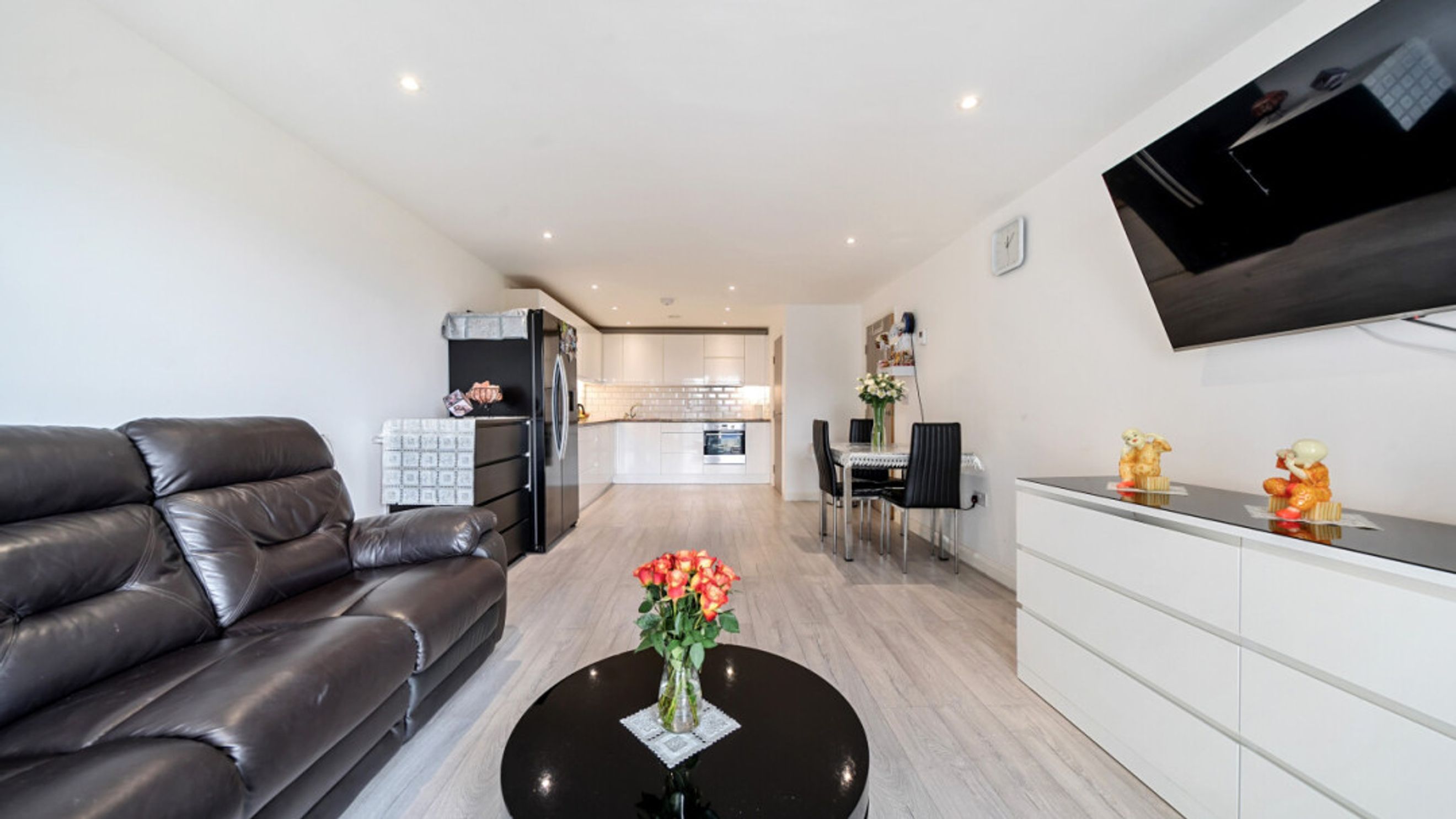 This bright and spacious apartment consists of a stylish open-plan kitchen and living area, flooded with natural light from wide floor-length windows, leading onto a private balcony overlooking the canal. The kitchen is fitted with white gloss wall and base units, with under-cupboard lighting, and a granite effect worktop. The kitchen also benefits from integrated appliances including an oven, hob, extractor fan and dishwasher. Spacious main double bedroom benefitting from built-in storage cupboards. Bright and airy second double bedroom. The bathroom comes complete with a white three-piece suite with a shower over bath and a white tile surround.