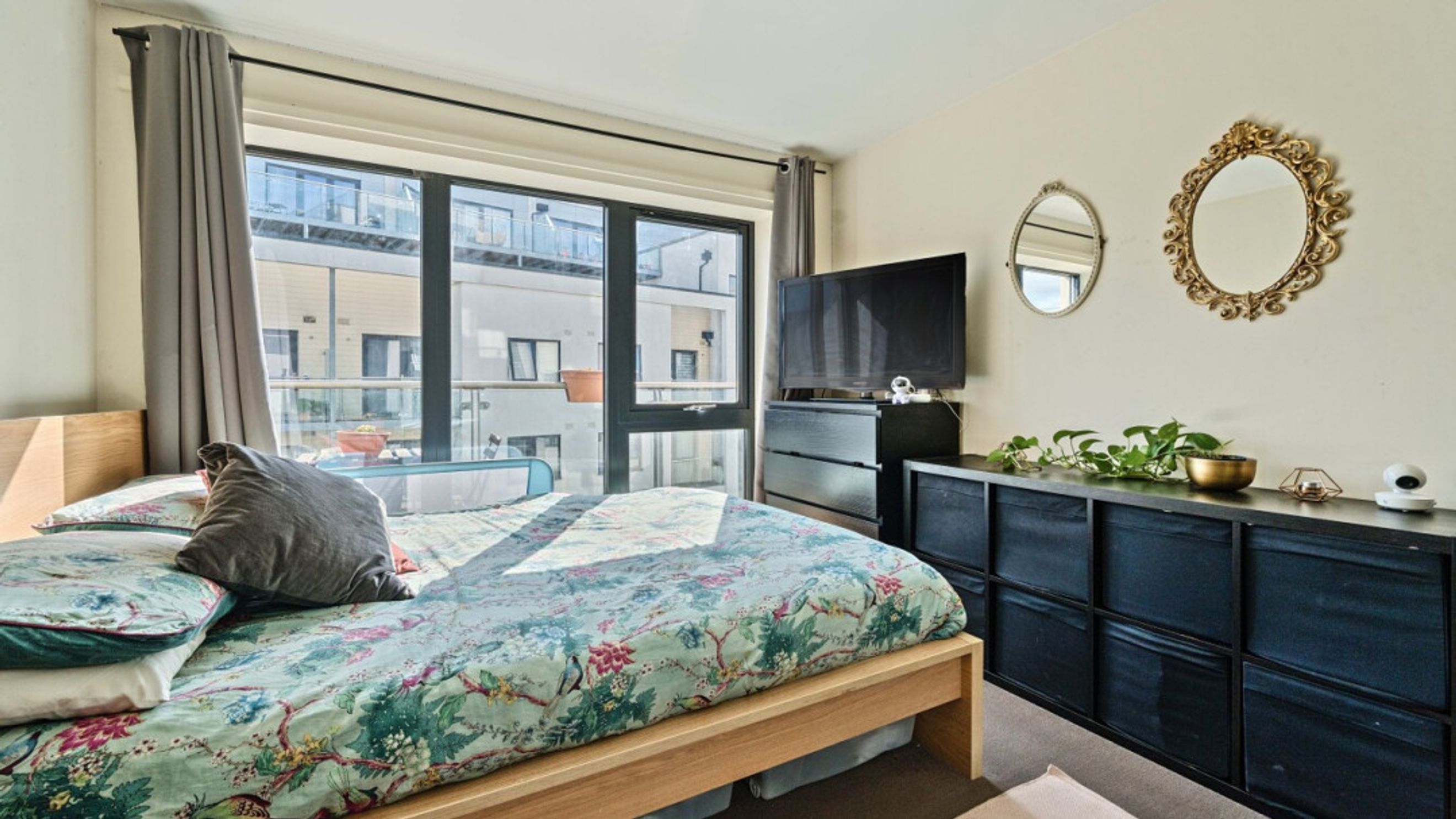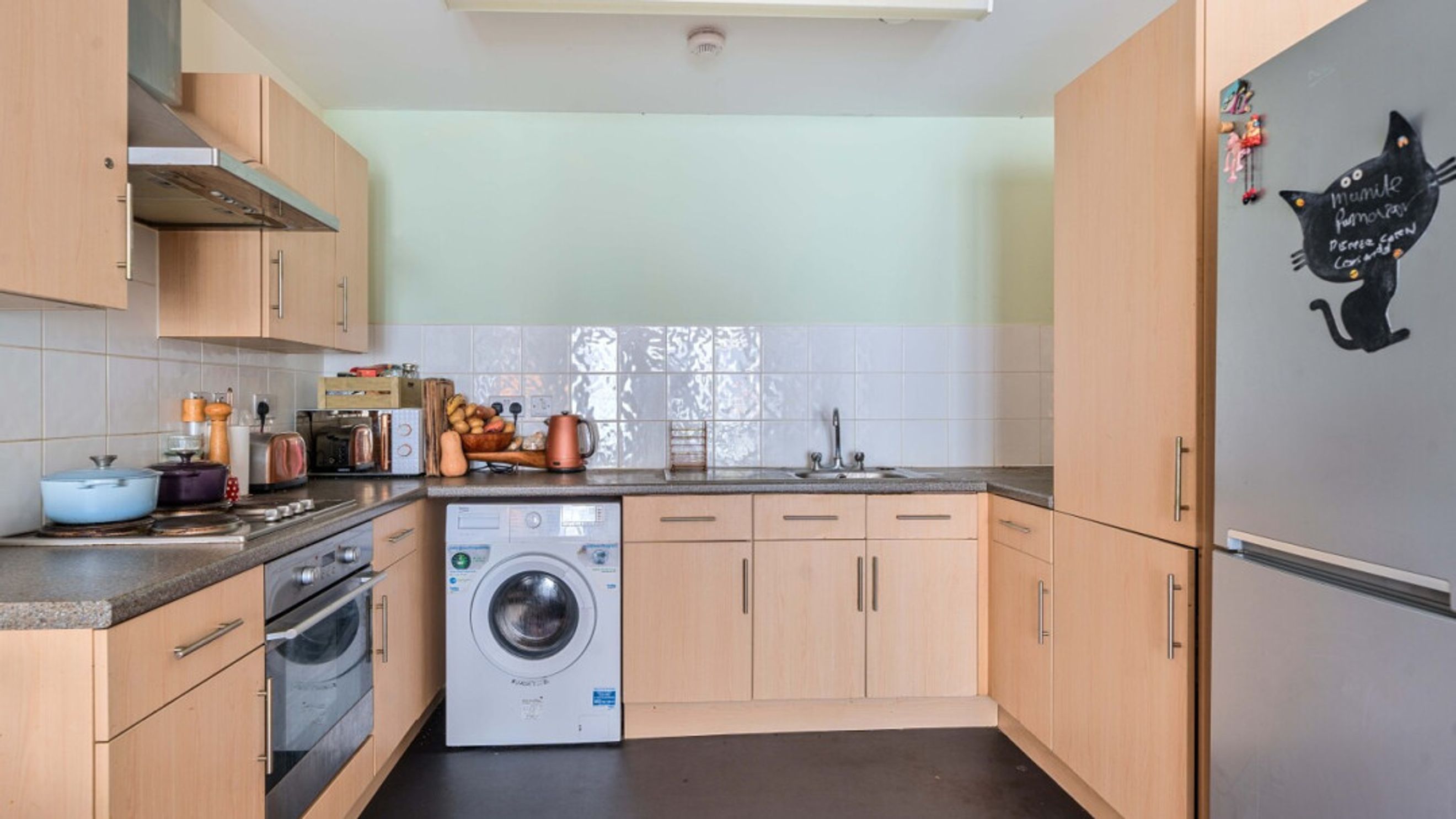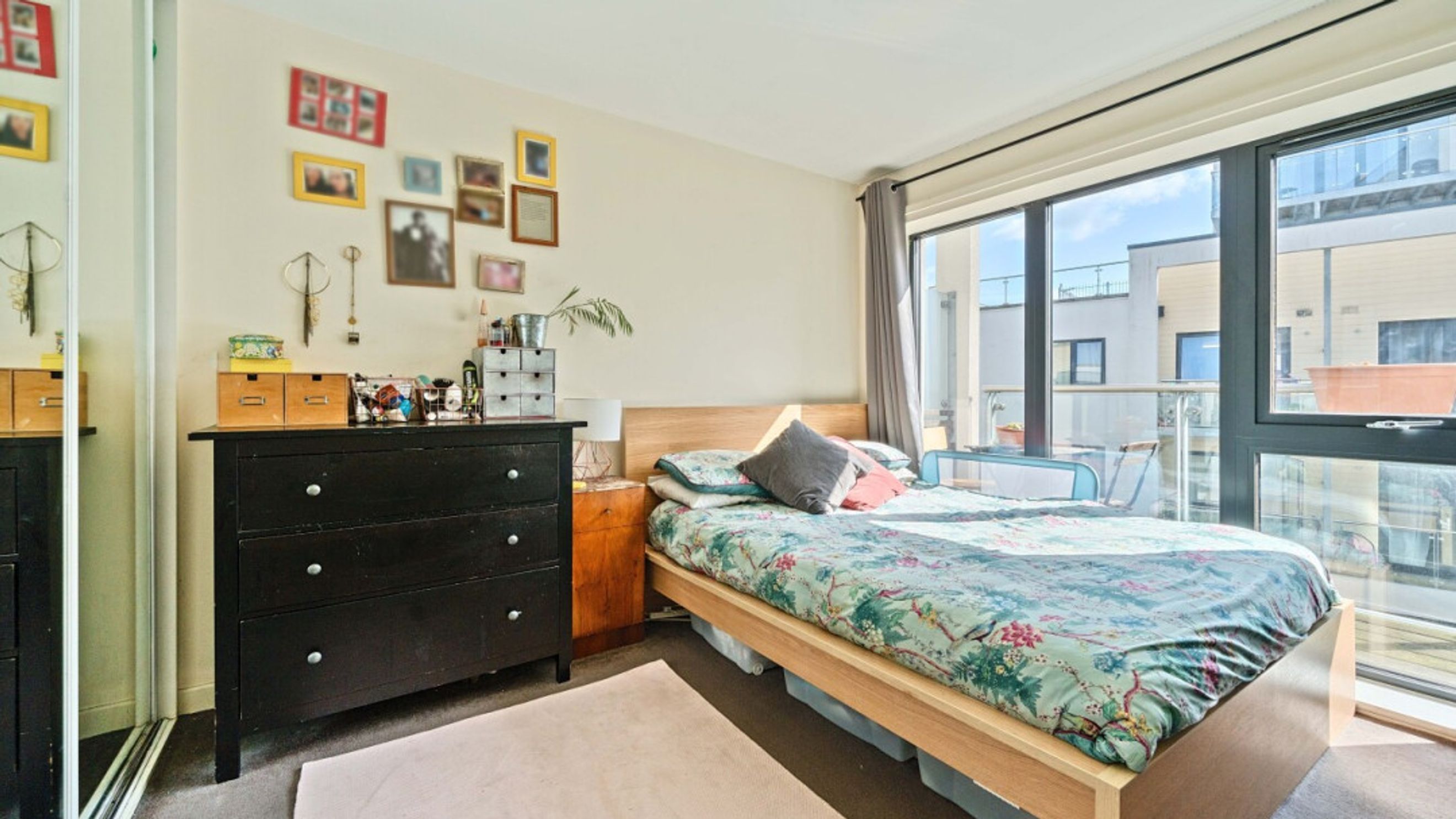 This east facing second floor apartment has an open-plan kitchen and living area opening onto a full width private balcony overlooking a quiet courtyard. The kitchen is fitted with a range of beech wall and base units with integrated oven, hob and extractor and spaces for white goods. The double bedroom, which overlooks the balcony includes built in storage. A contemporary tiles bathroom with a shower over bath and glass shower screen completes the accommodation. There is a designated parking space in the underground secure car park. Bike storage is subject to availability.
