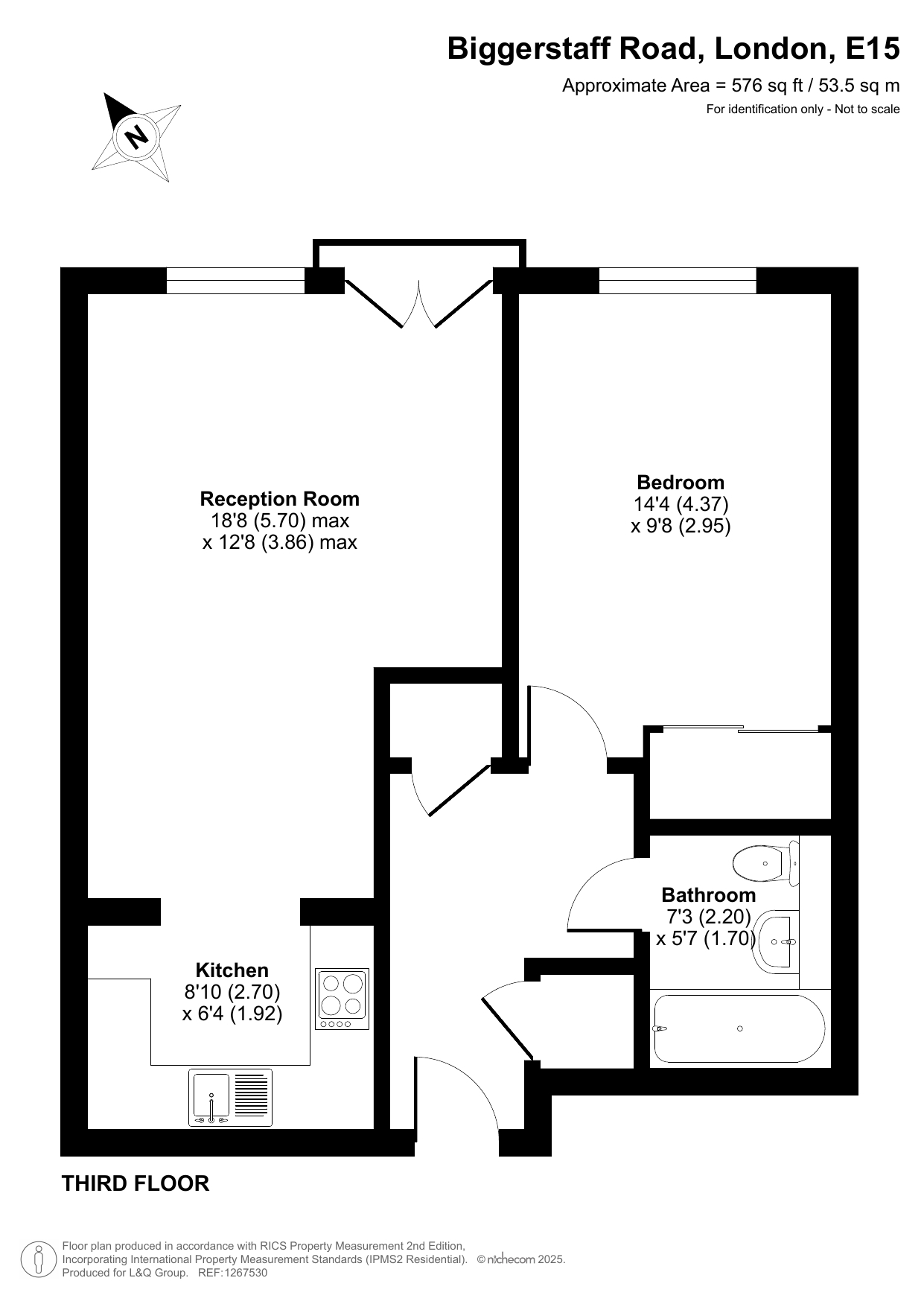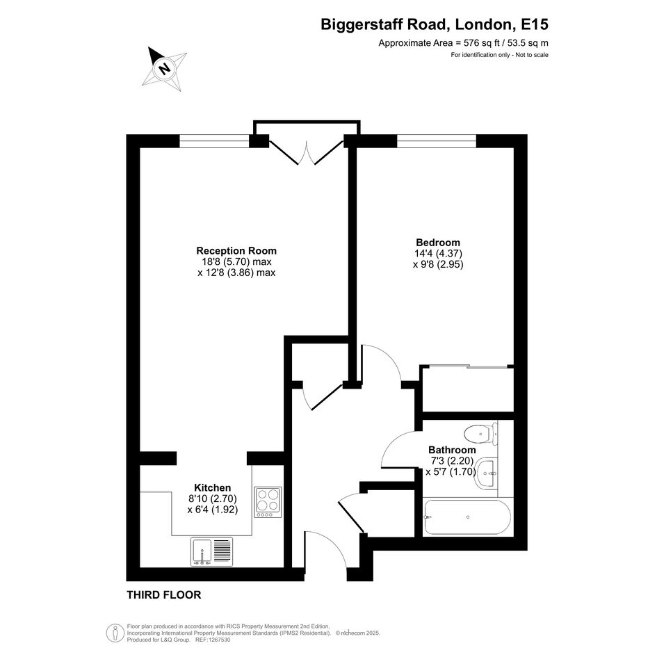 Enter this apartment via a spacious hallway with storage and find a tiled family bathroom to your right. A spacious north east facing open plan living area opens onto a juliette balcony which floods the room with light. The kitchen is fitted with a range of units and has an integrated oven, hob and extractor and spaces for your white goods. The double bedroom benefits from a mirrored wardrobe. Monthly service charge includes use of an onsite Gym and 24 Hour concierge.