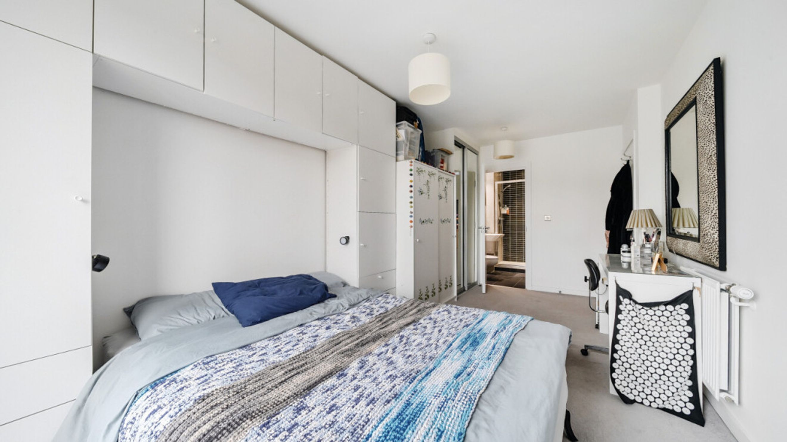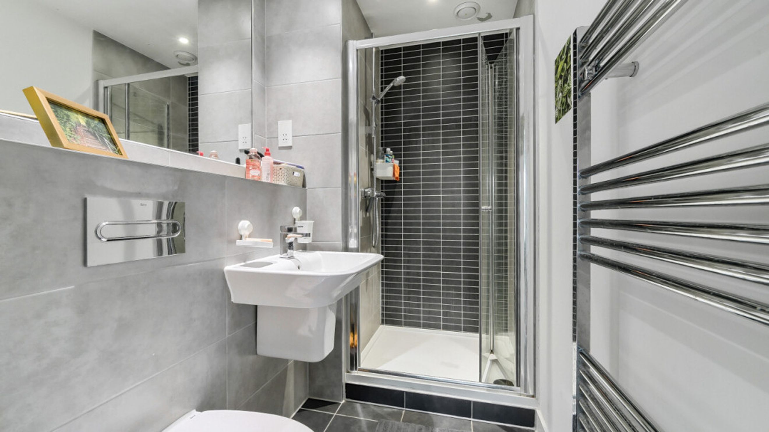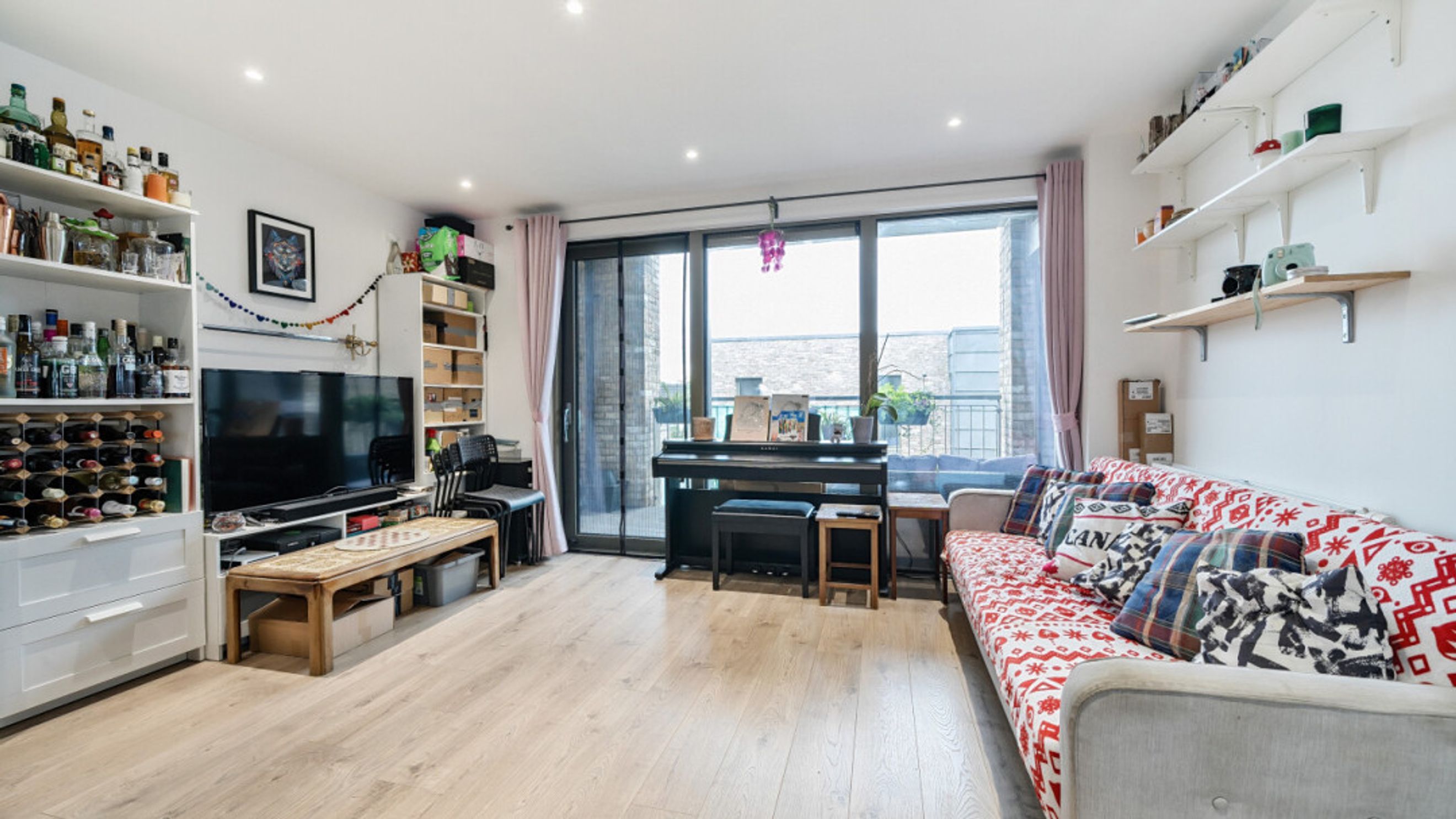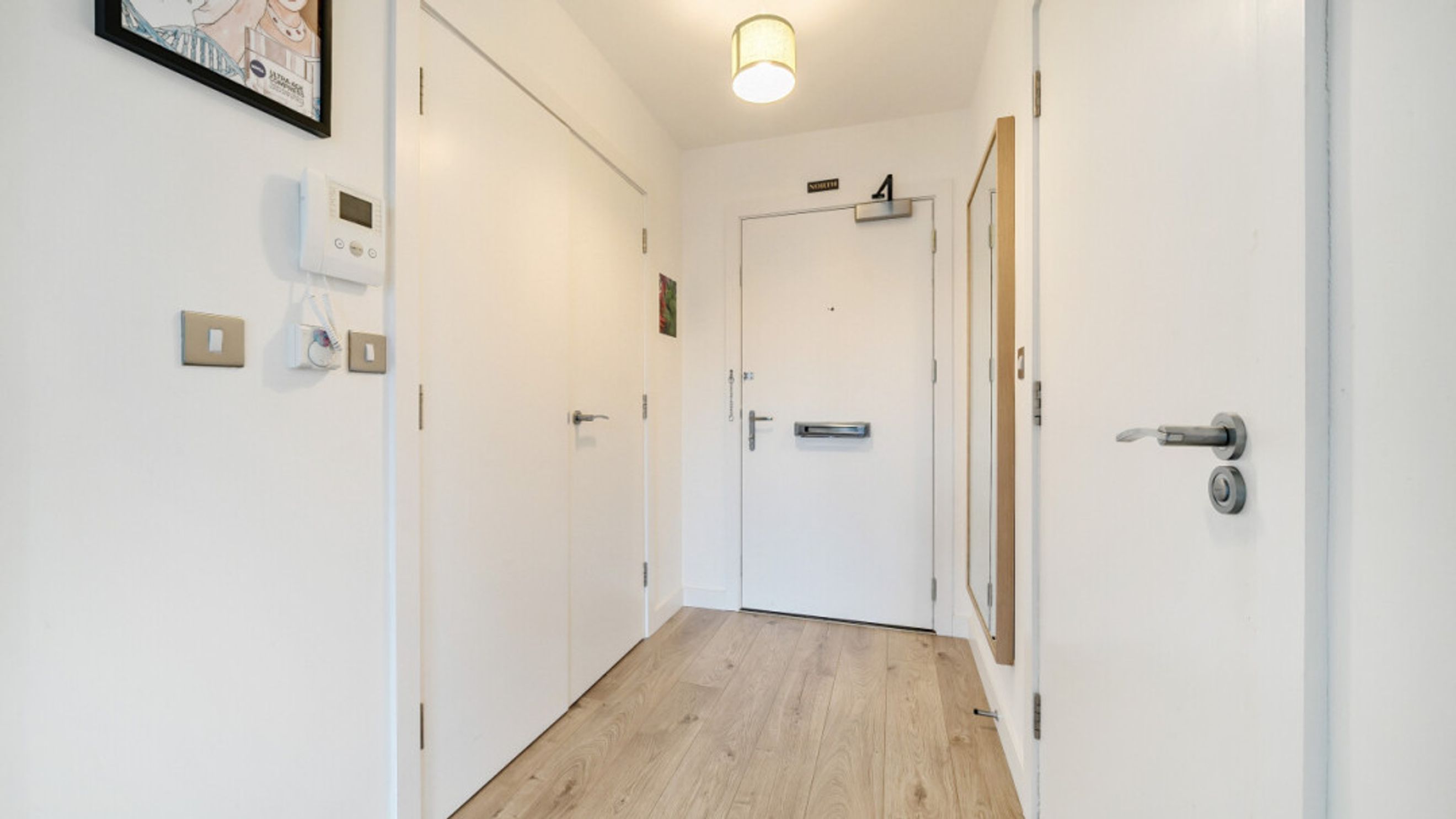 Entering this apartment find a utility cupboard and contemporary bathroom to your left. To your right is the master bedroom which benefits from fitted wardrobe and en-suite shower room and a door to the full width balcony. The second double bedroom has a dual aspect and provides a perfect place to work from home. The light and airy spacious open plan living area is also dual aspect providing views over a green roof and then of the locale via the balcony , which provides a place to sit and relax or to eat outside.