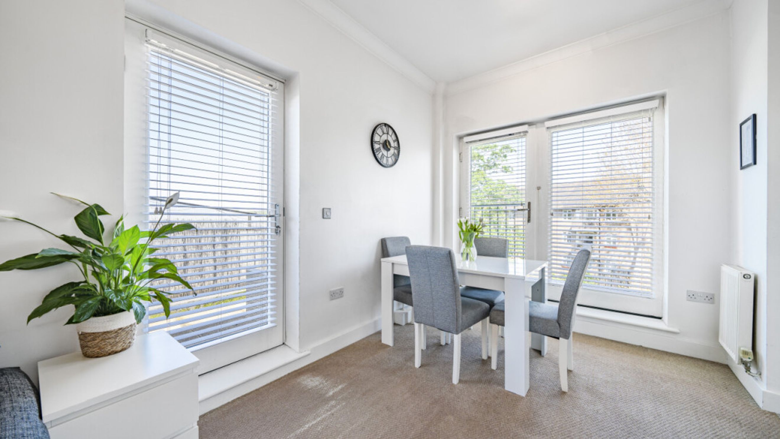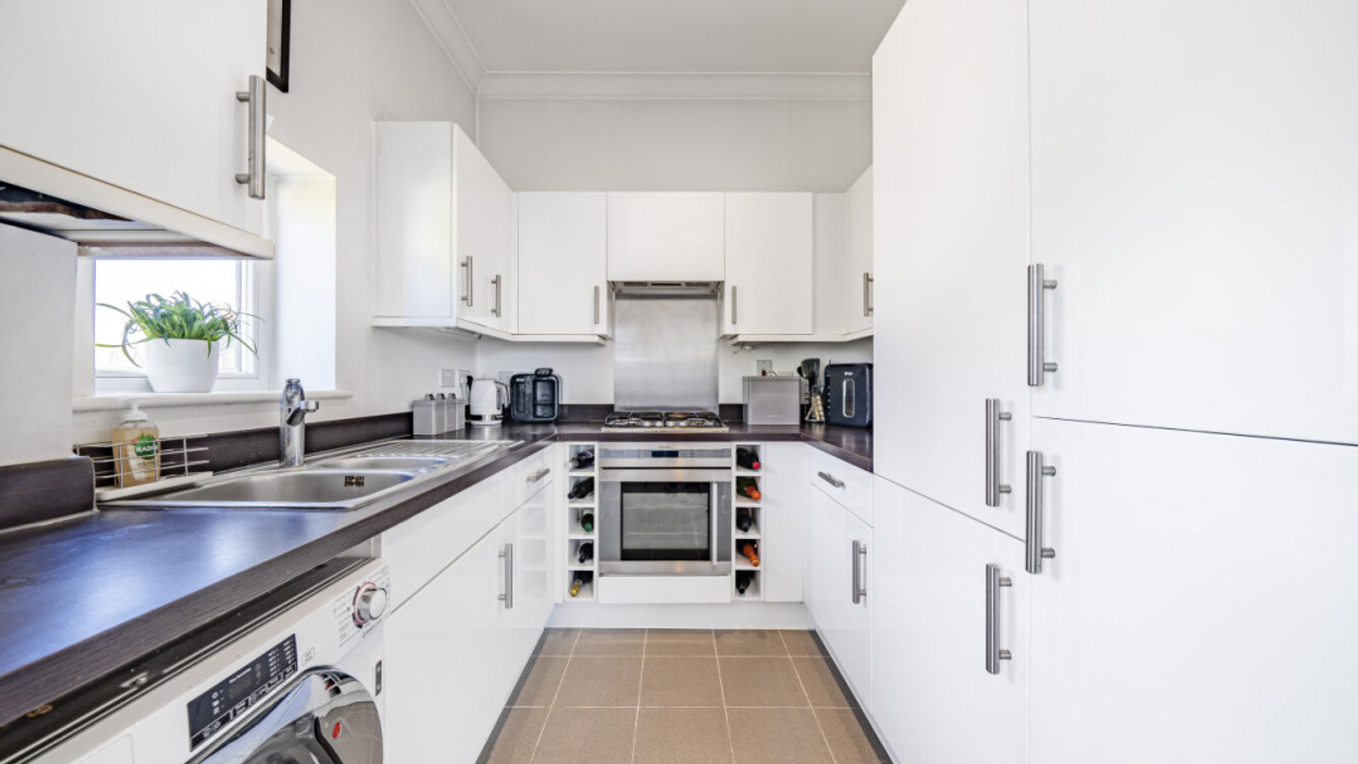 This bright, airy and spacious one bedroom second floor apartment consists of a large reception room, opening to private balcony. There is a separate kitchen fitted with white wall and base units, and a wood effect worktops. The kitchen also benefits from integrated appliances including a fridge freezer, oven, hob and extractor fan. A generous double bedroom benefits from built-in storage and floor to ceiling windows. The bathroom comes complete with a white three-piece suite with a shower over bath and a stone tile surround. Additional storage can be found in the hallway. Access to a large shared garden and secure off-road parking for one vehicle is perfect for first-time buyers