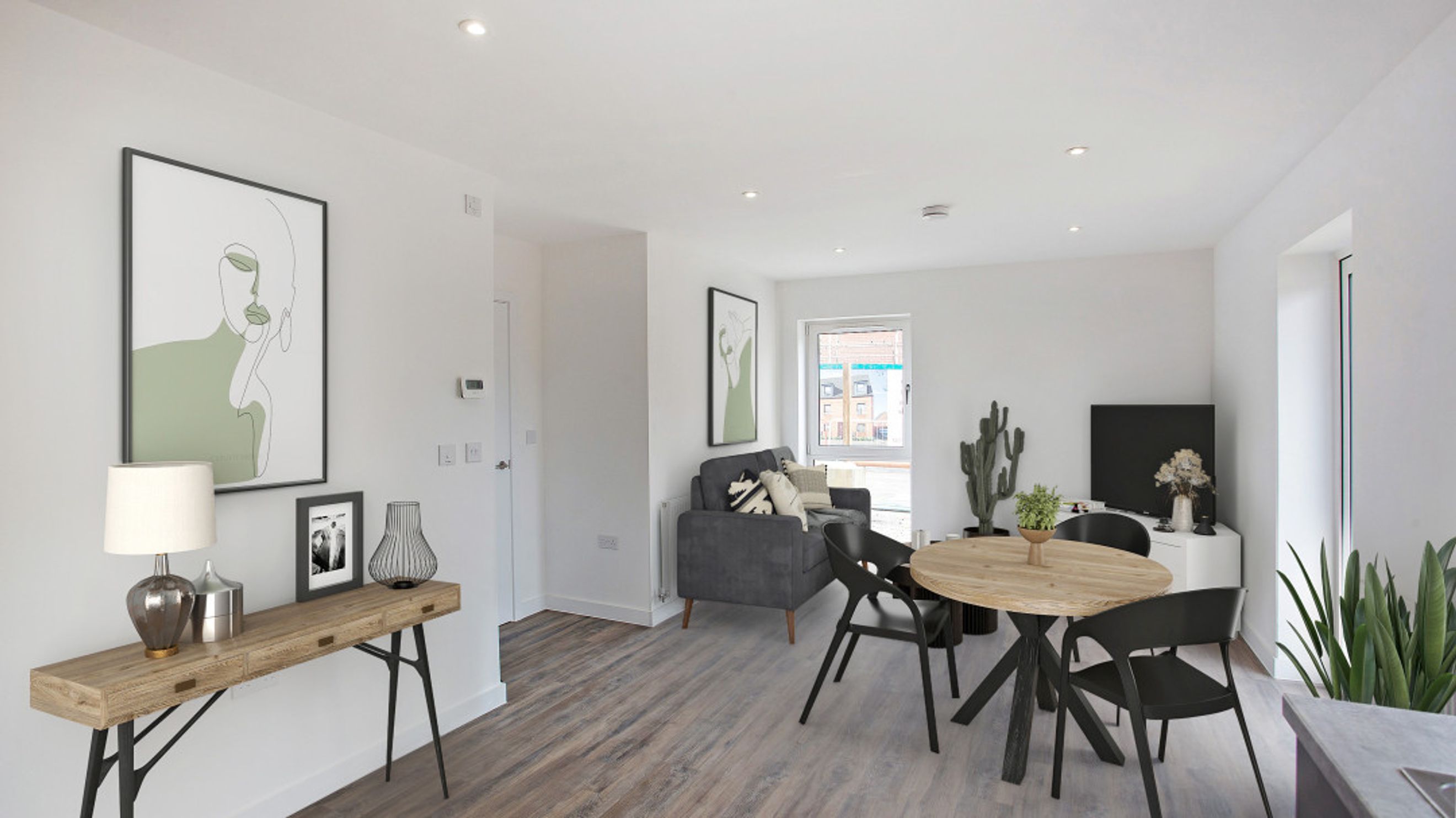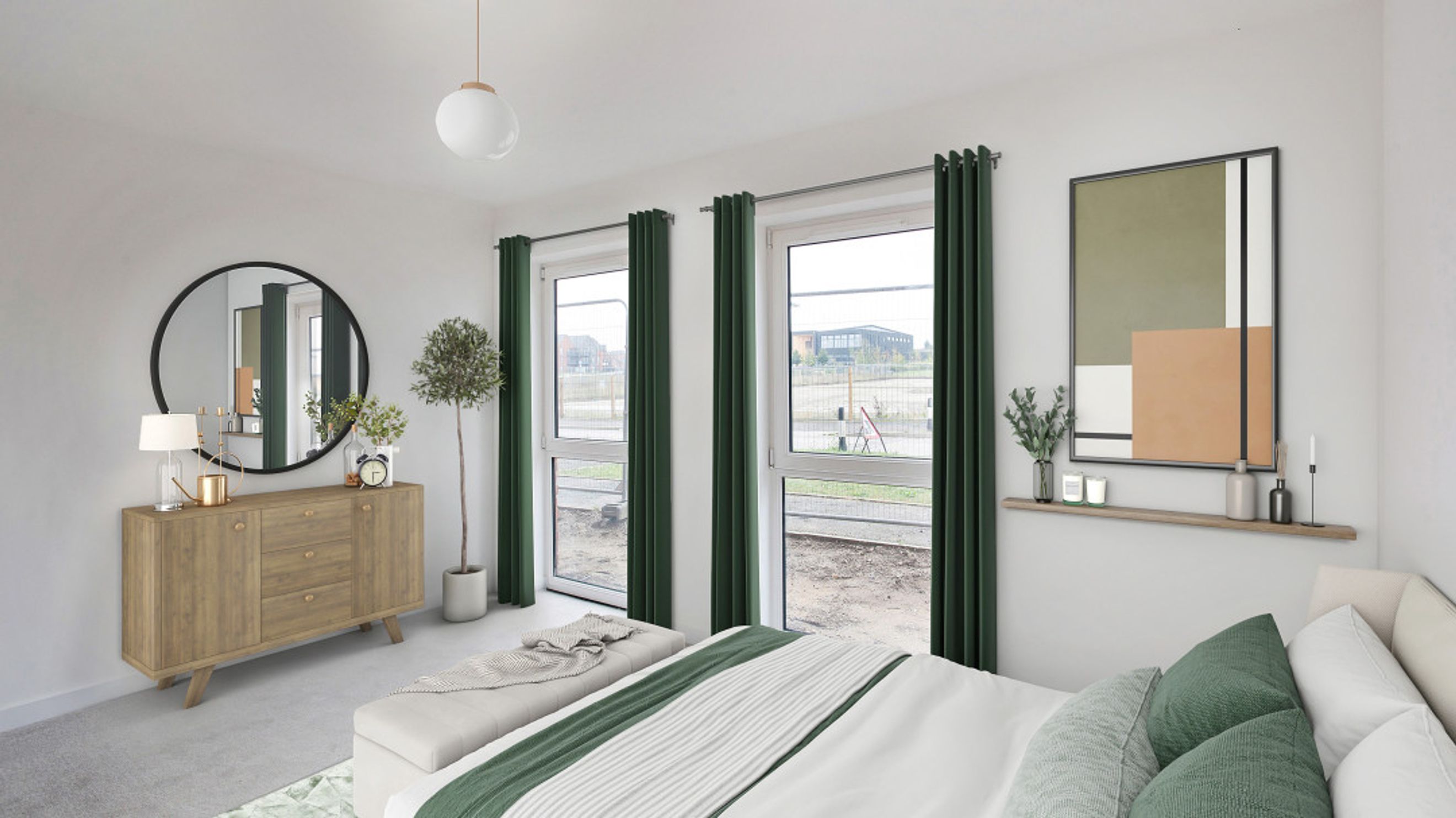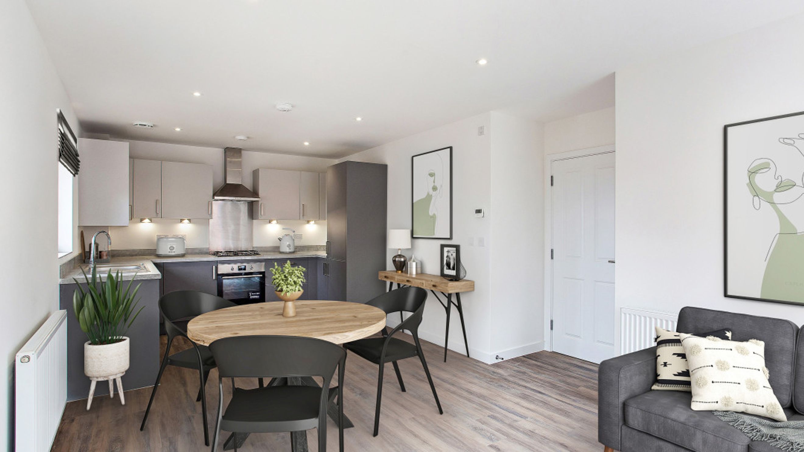 Linmere, a place to put down roots. A stylish collection of 1 & 2 bedroom apartments, 2 bedroom coach house and 2 & 3 bedroom houses. A beautiful new locality with brand new school, community facilities, shops and open spaces. 3-bedroom family homes span three floors, offering ample living space. The ground floor features an open-plan kitchen and dining area, alongside a spacious lounge with garden access. The first floor hosts two bedrooms and a modern family bathroom. The entire second floor is dedicated to the main bedroom with a dressing area, providing a private retreat. 2-bed cottages present an open-plan kitchen and dining space, a spacious lounge with French doors opening to the garden, and a contemporary family bathroom. Crafted to a high standard, these homes are tailored for a modern lifestyle. Spacious 1 bedroom apartments, each with a private balcony. The bright, airy open-plan kitchen, lounge, and dining area, featuring doors to the balcony, create the ideal space for hosting and entertaining.