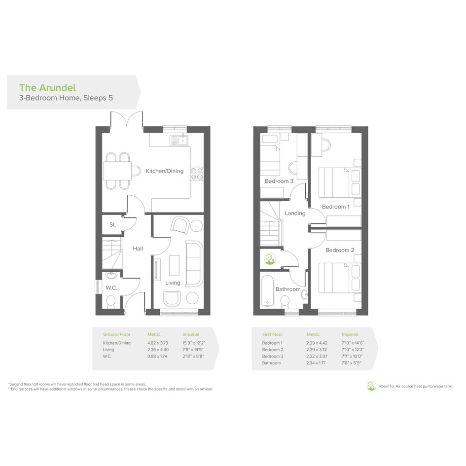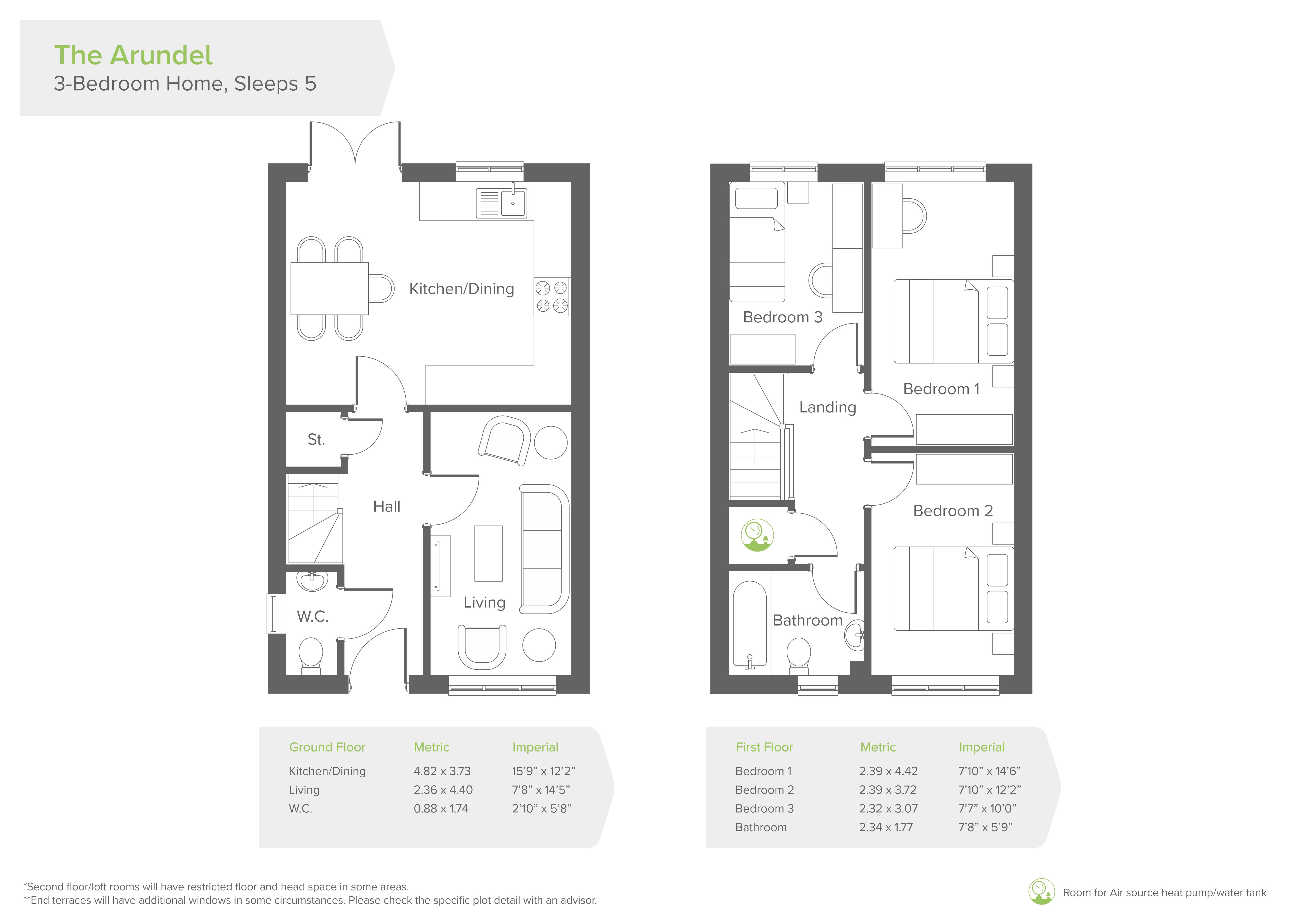 On the first floor of The Arundel you’ll find two good-sized double bedrooms, and one single bedroom. The contemporary three-piece family bathroom contains an over-bath shower plus designer taps and tiling.