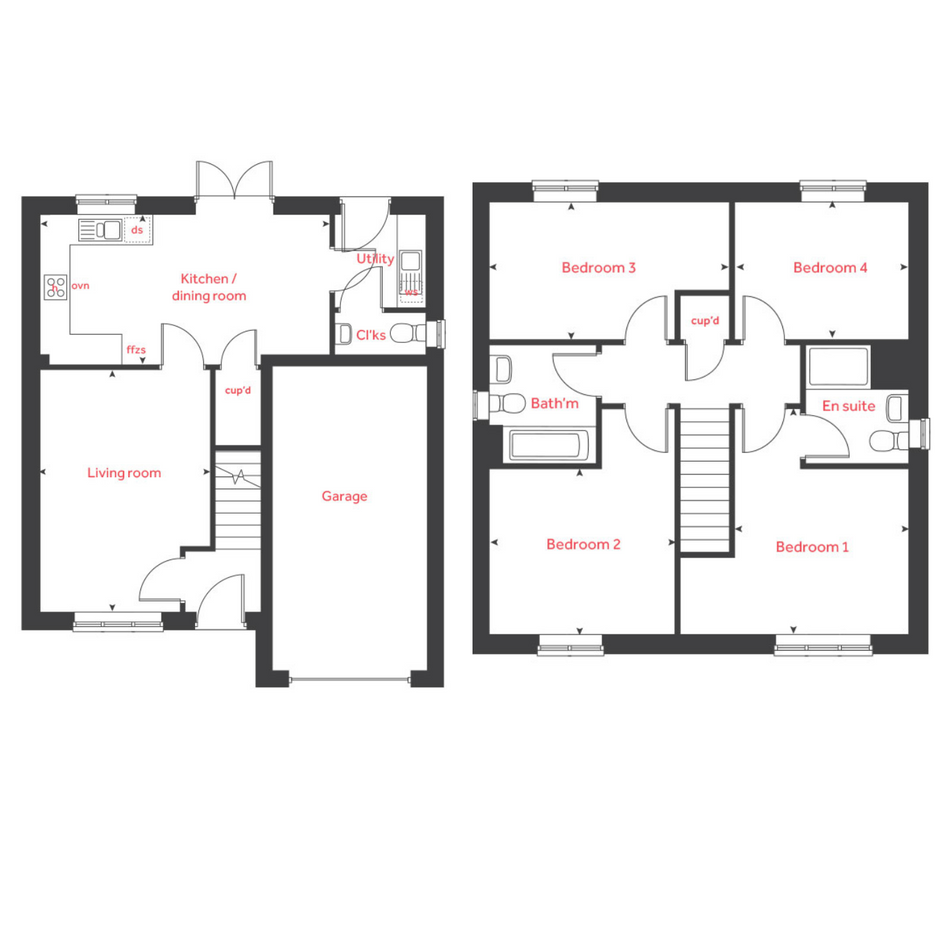 A living room at the front of the home is bright and airy thanks to a large window. An open plan kitchen/dining room is a sociable space which allows for cooking, dining and entertaining to take place in a flexible and spacious environment. While access to the garden, through a set of French doors, floods the room with light and provides the opportunity to expand your living spaces into the garden when the weather allows. With a downstairs cloakroom, a utility room and ample storage, the Goodridge meets all your needs and more.