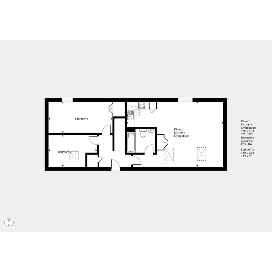 Featuring an open-plan living area with skylights. The kitchen is fitted with an oven, hob and hood. There are two comfortable bedrooms, with a wardrobe to the master. The bathroom has a white suite.