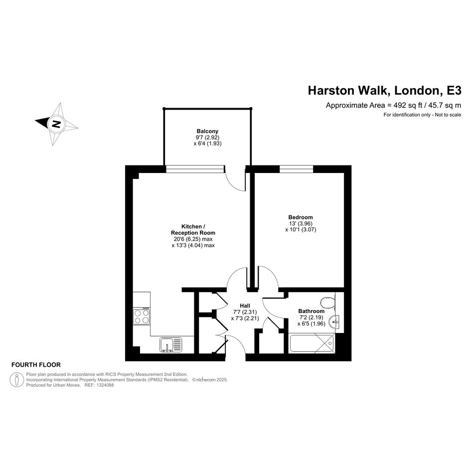 This bright, modern apartment is on the fourth floor (building has a lift) and has a reception room with full-height windows and a door that leads out onto a balcony which provides a pleasant, east-facing view. The kitchen is semi open plan and features sleek, white units and contrasting work surfaces. There is a spacious bedroom, a stylish bathroom and three storage/utility cupboards in the entrance hallway. Well insulated walls, double glazing and a communal heating/hot water system make for a very good energy-efficiency rating. The development has a communal garden and is just minutes from Devons Road DLR and Bromley-by-Bow Station, for the District and Hammersmith & City Lines.