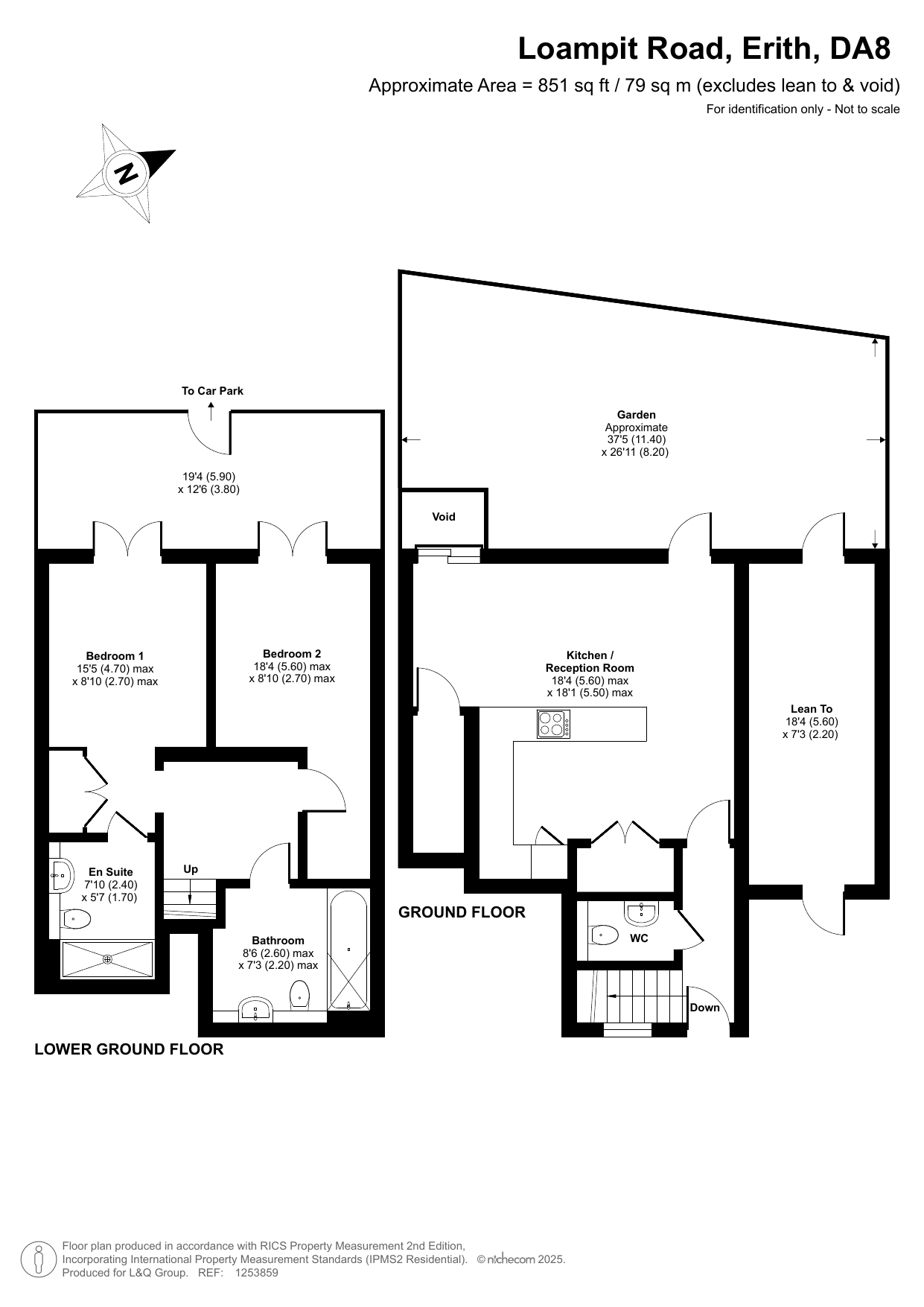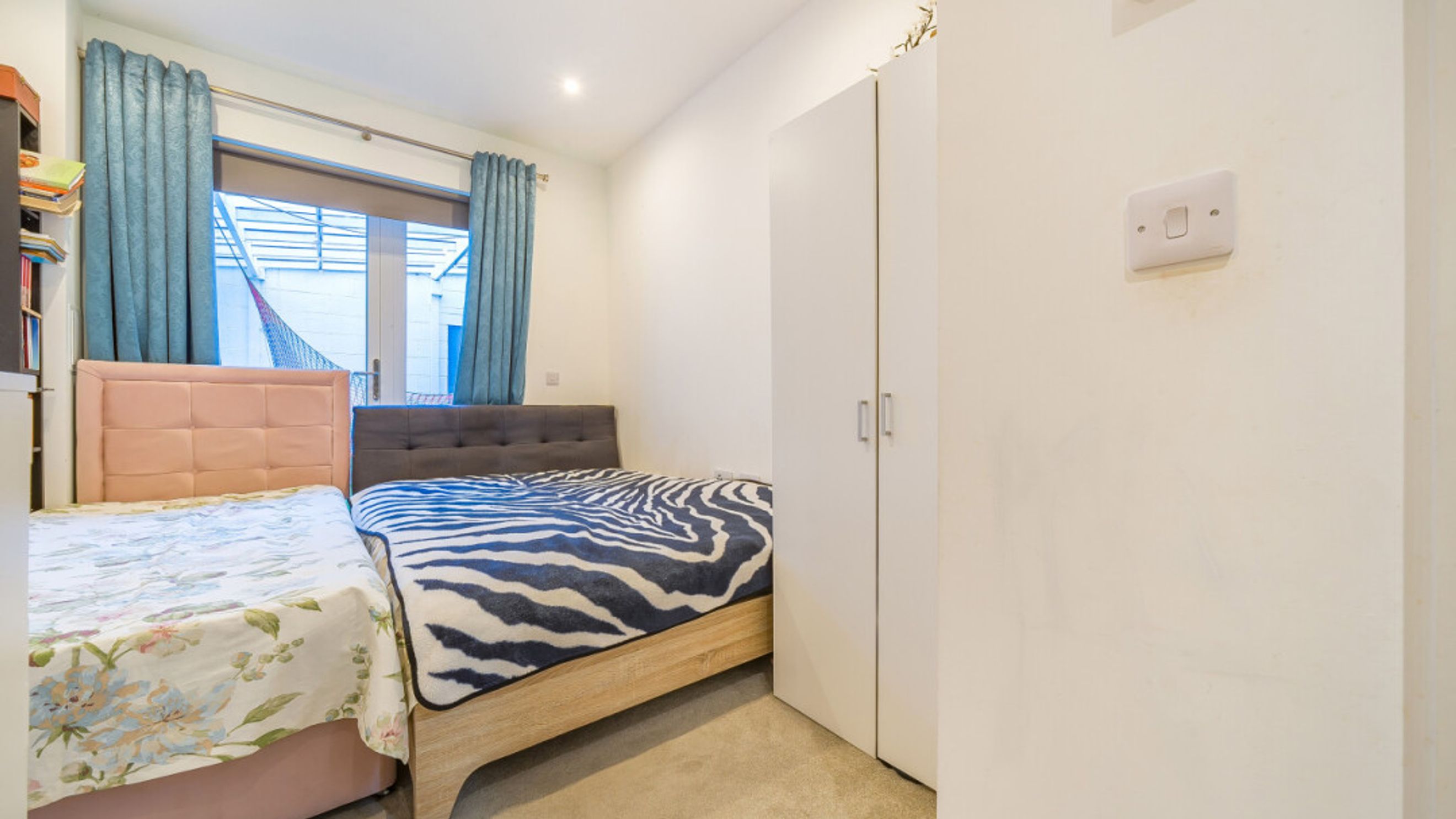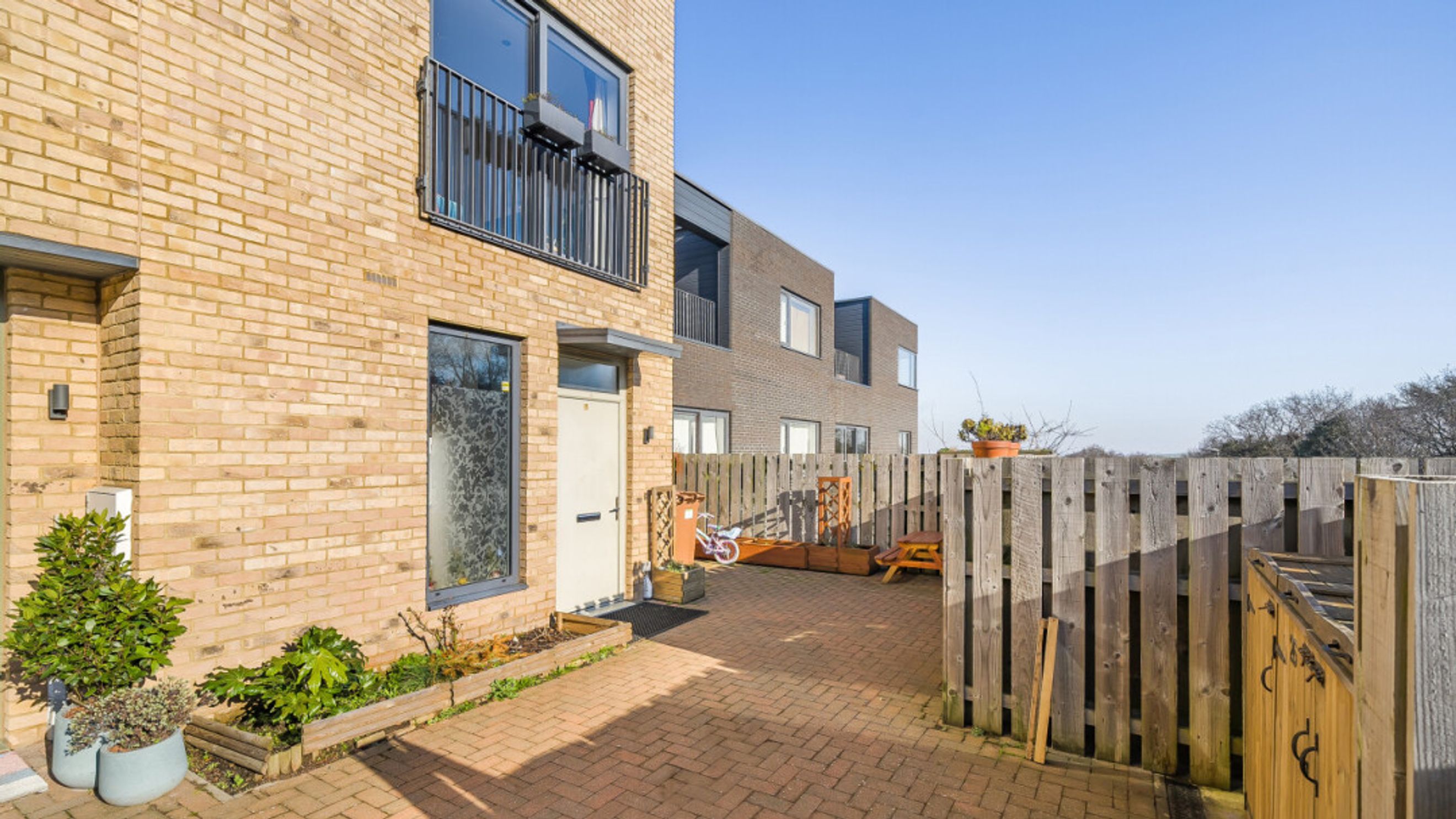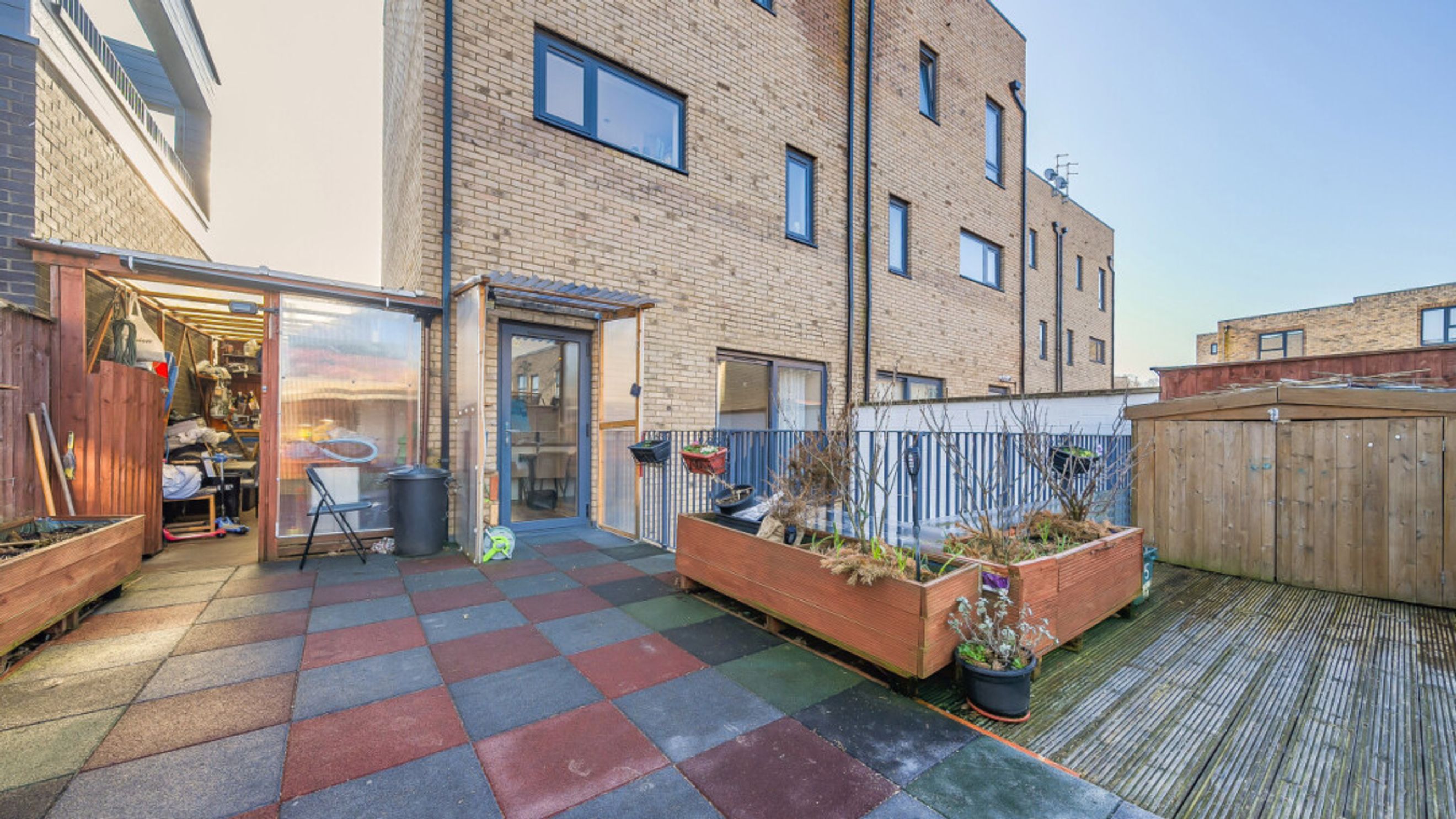 Enter this maisonette on the ground floor. An open plan living area including a contemporary kitchen with integrated appliances, opens onto a private decked garden with a large covered store. There is also a cloakroom at this level. Take a few steps downstairs to two double bedrooms, the master with ensuite shower and built-in storage, and a family bathroom. Both bedrooms open onto a private covered courtyard, which in turn gives access to the car park. This home also benefits from incredible storage options.
