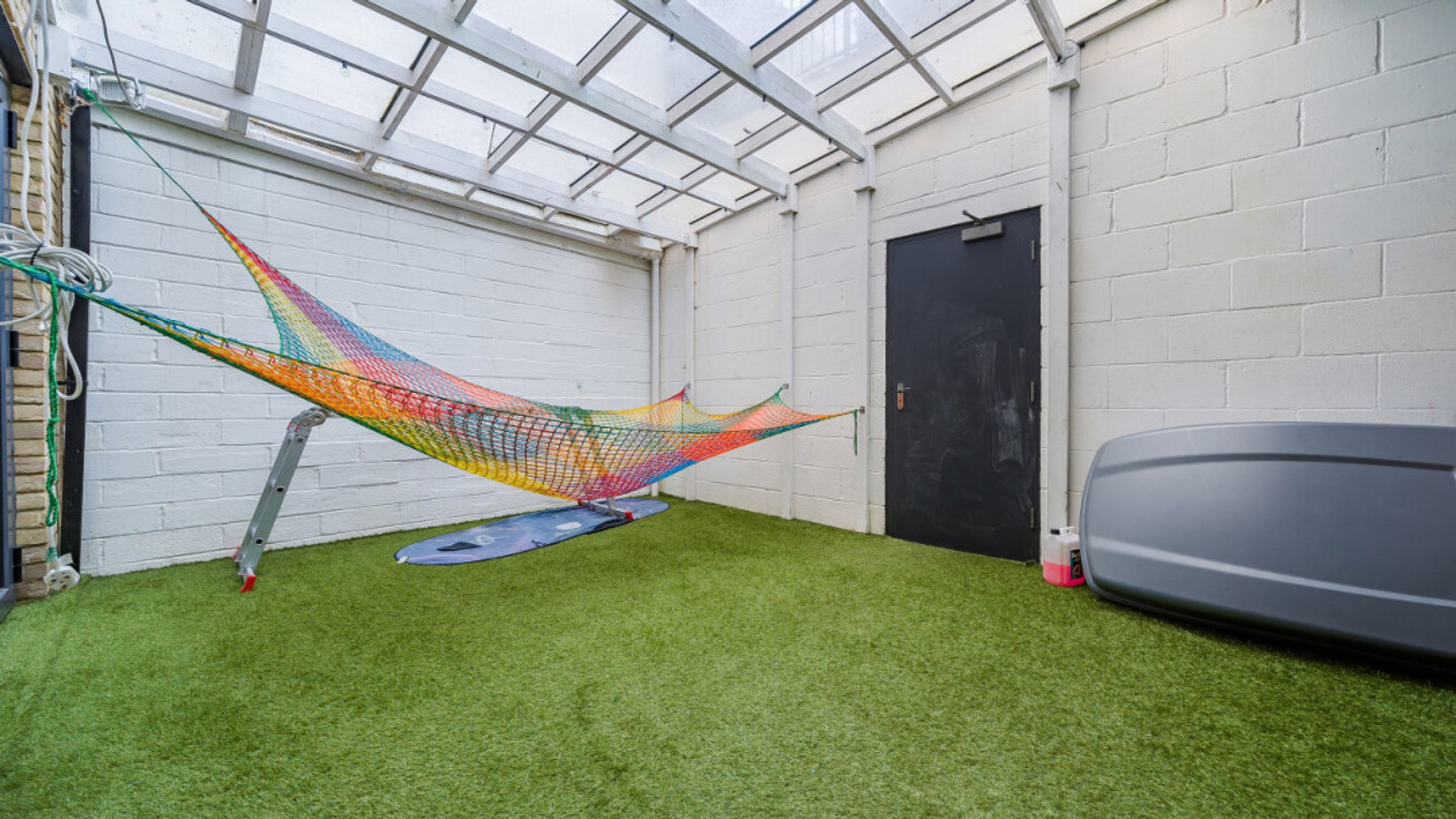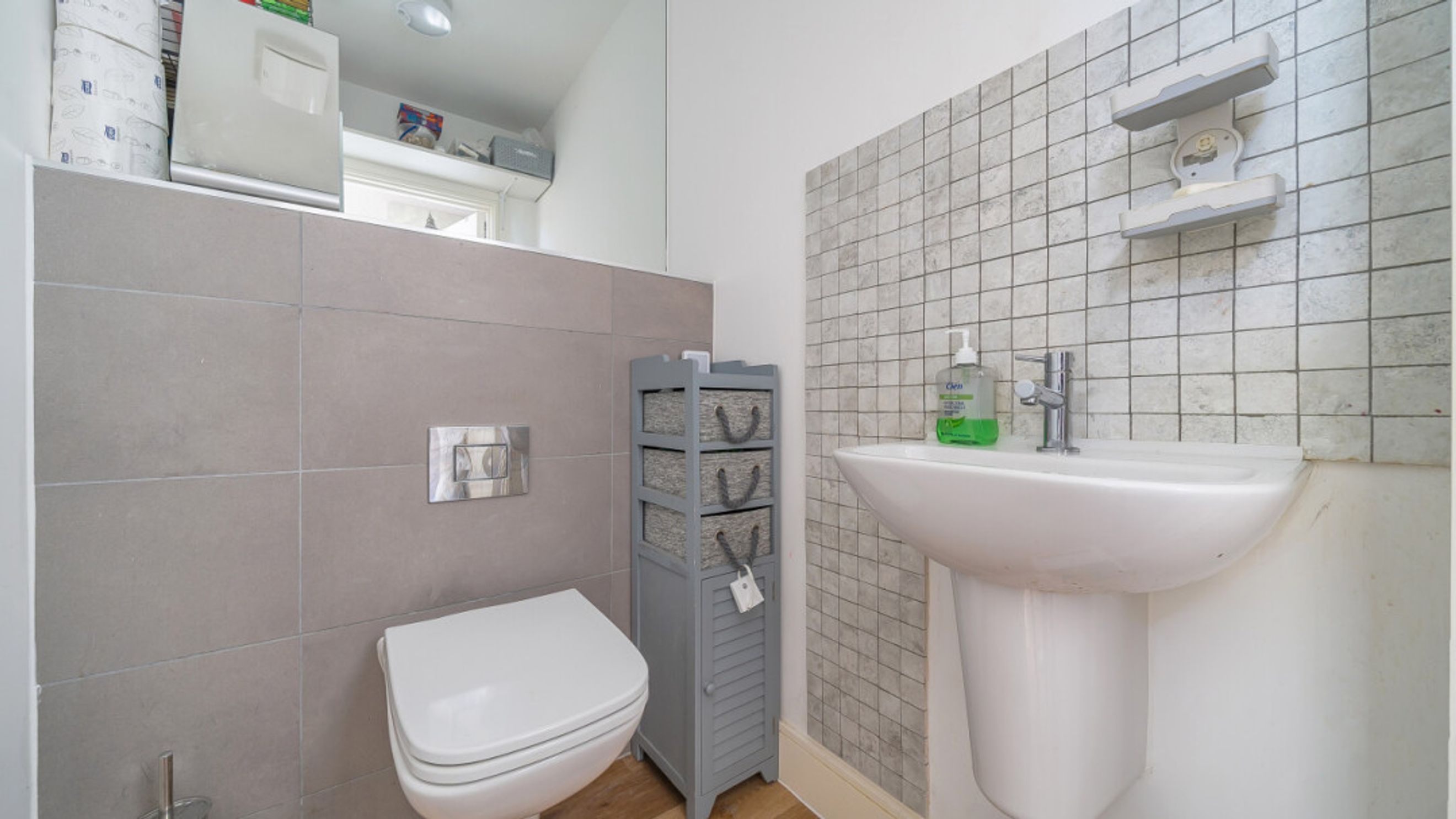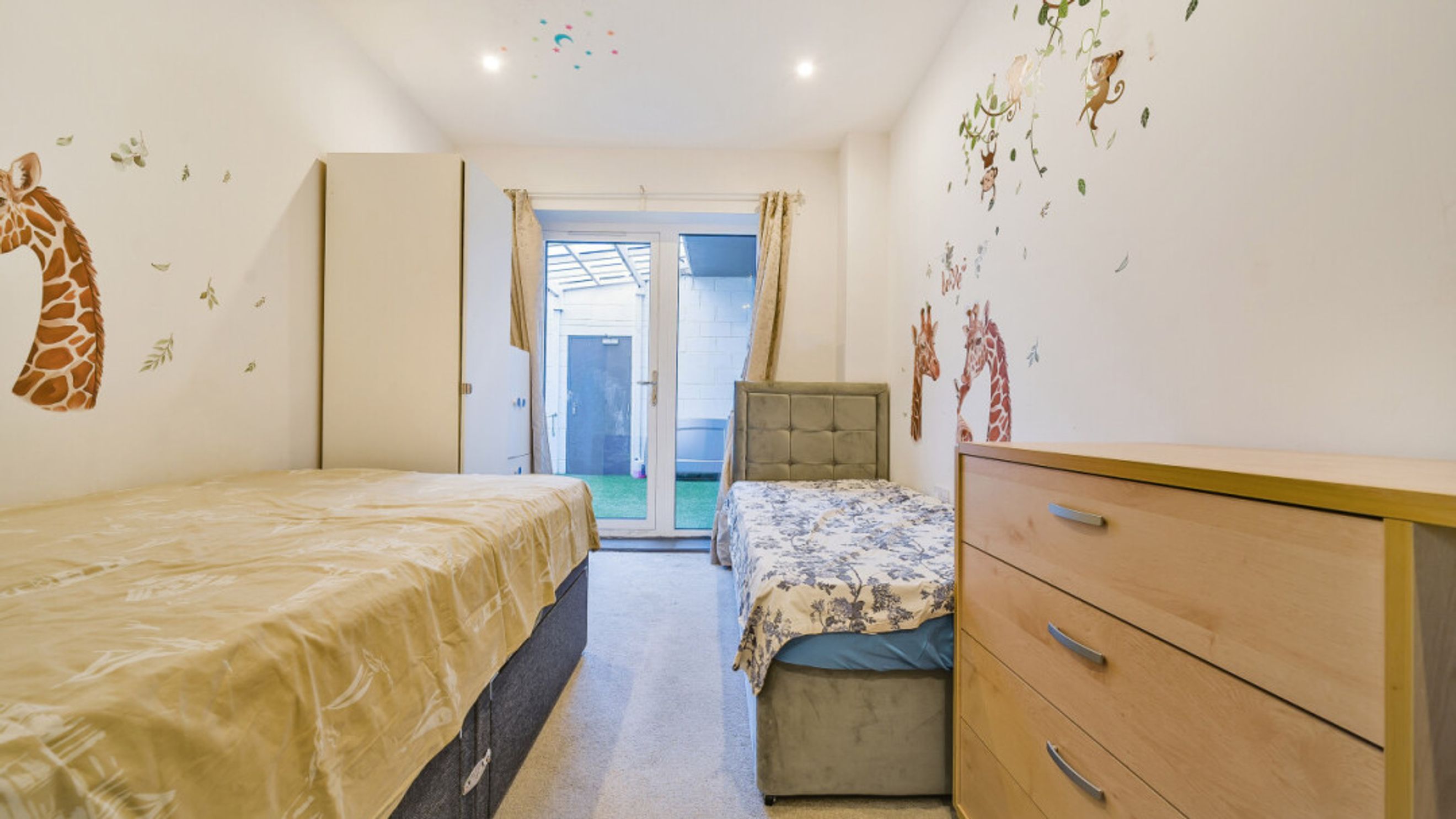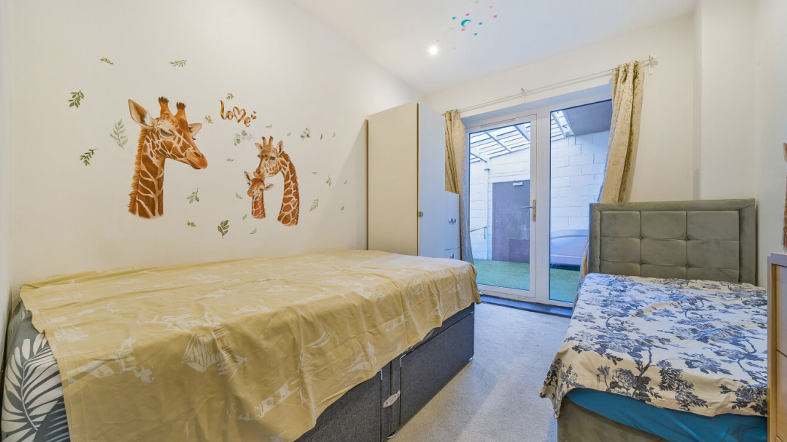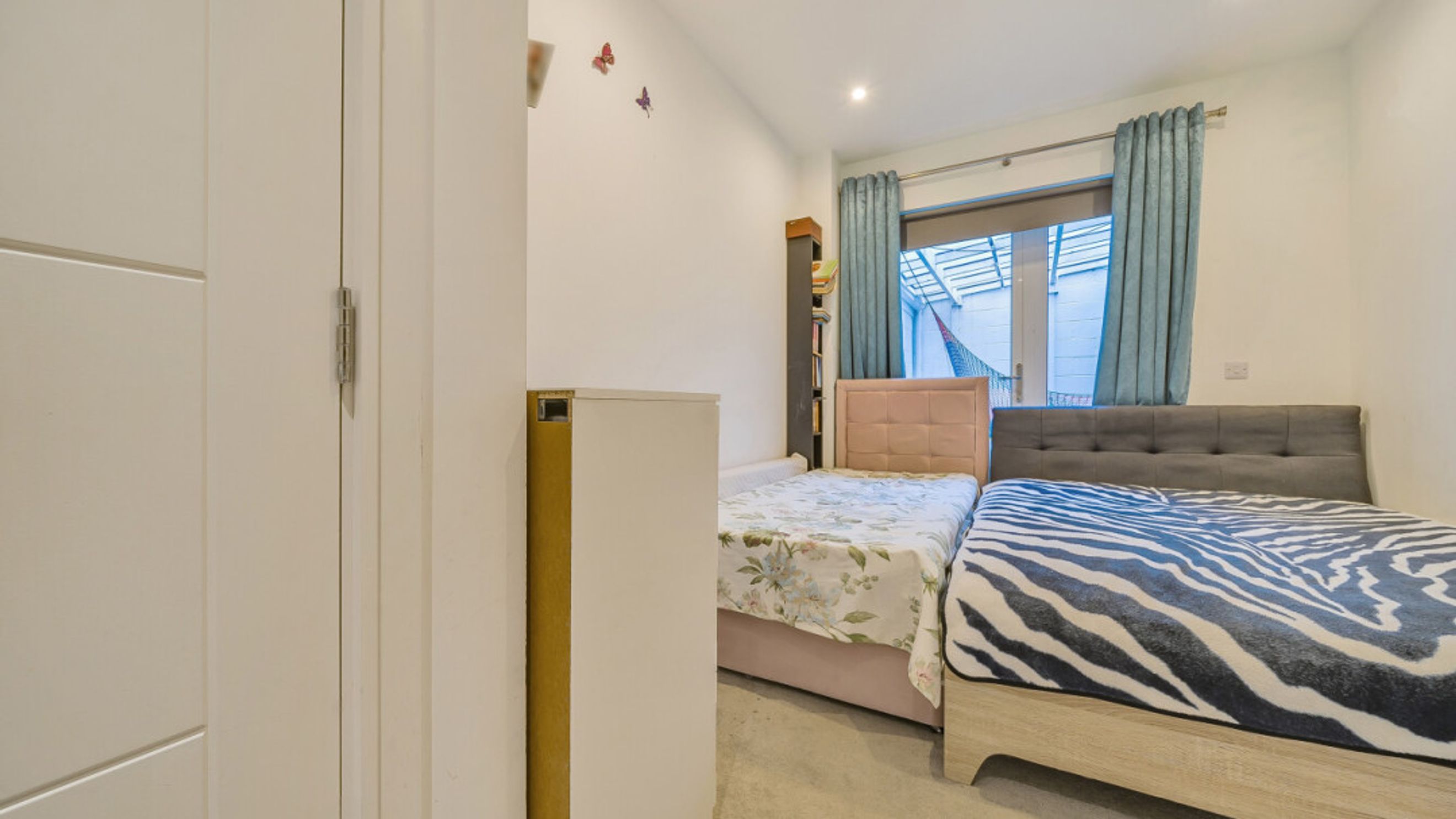 Enter this maisonette on the ground floor. An open plan living area including a contemporary kitchen with integrated appliances, opens onto a private decked garden with a large covered store. There is also a cloakroom at this level. Take a few steps downstairs to two double bedrooms, the master with ensuite shower and built-in storage, and a family bathroom. Both bedrooms open onto a private covered courtyard, which in turn gives access to the car park. This home also benefits from incredible storage options.