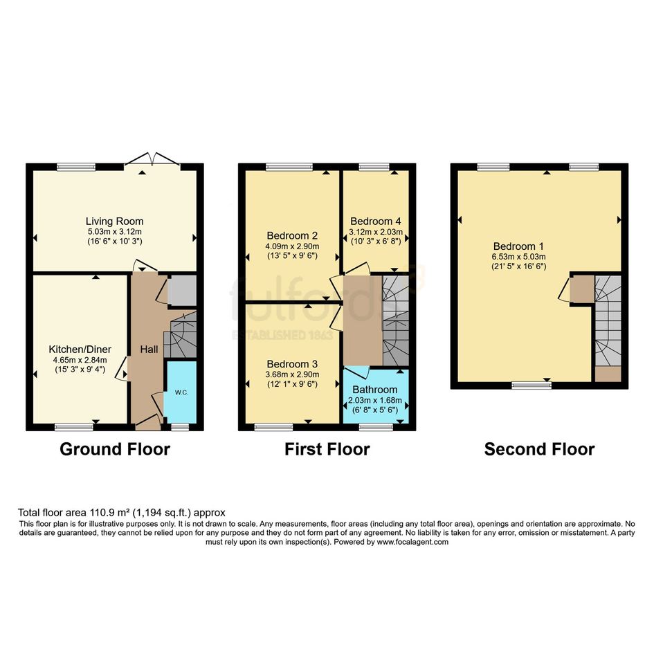 Upstairs you'll find four bedrooms (the master bedroom is located on the second floor), providing plenty of space for family, guests, or working from home. There are two modern bathrooms, including a stylish family bathroom and a convenient downstairs W.C.