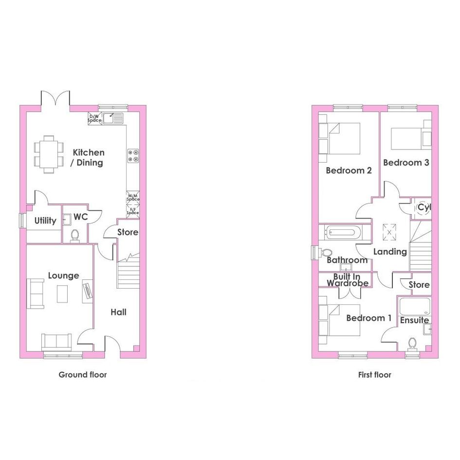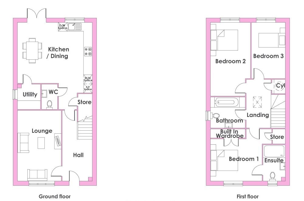 Step into the welcoming hallway and enter the lounge, a warm and inviting space ideal for relaxing with the family. The open-plan kitchen, with ample room for dining, features French doors to a turfed rear garden, creating the perfect setting for entertaining family and friends. For added convenience, you'll find, a separate utility room, a guest cloakroom and a handy under-stair storage cupboard.