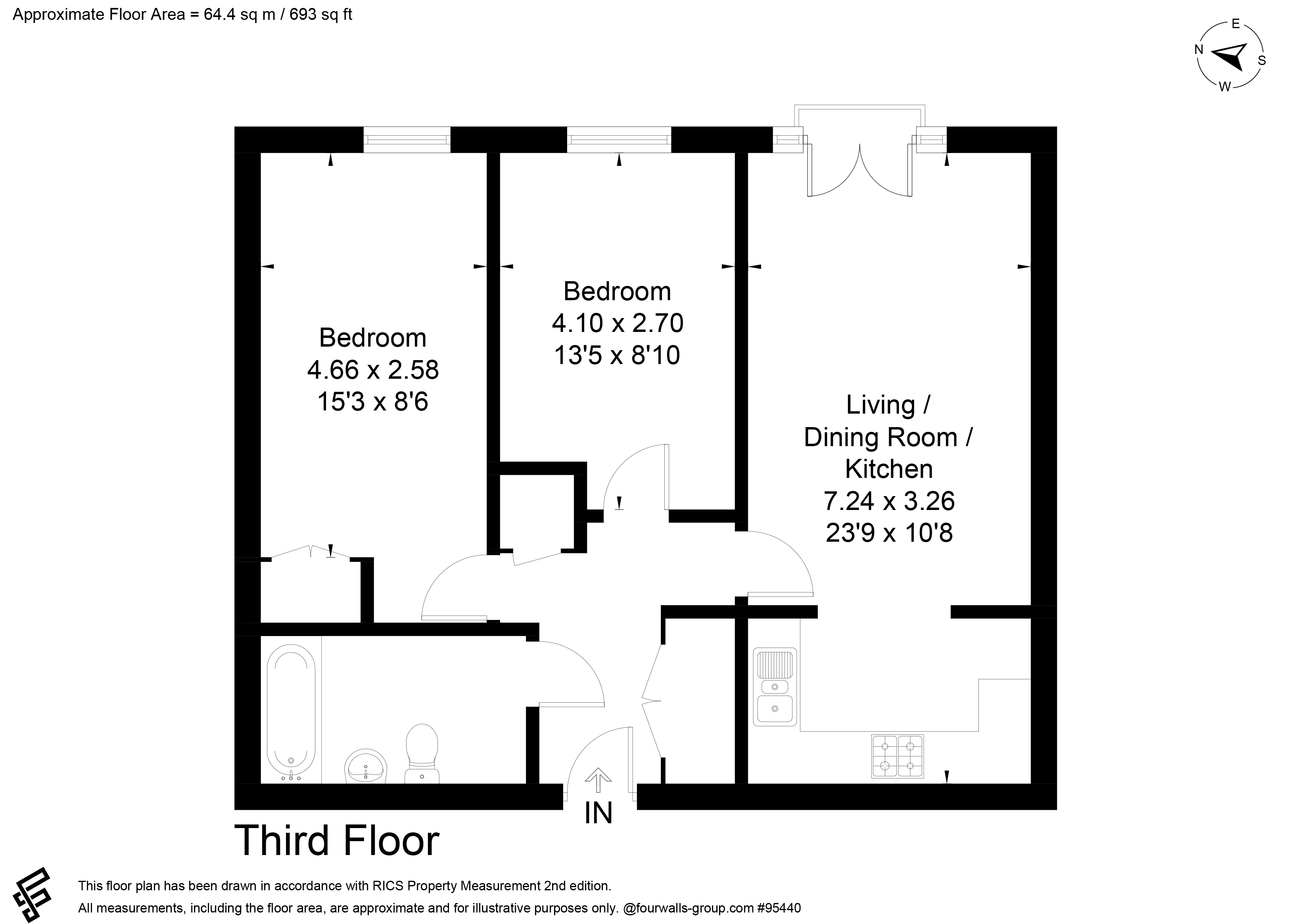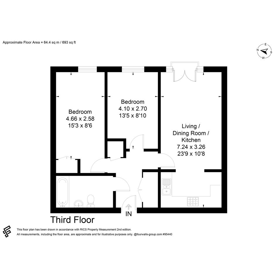 The modern kitchen is well-equipped with contemporary fittings and plenty of worktop space, ideal for everyday cooking. Both bedrooms are generously sized, offering comfortable living and flexibility for a home office or guest room. The property also features a stylish family bathroom, perfect for busy mornings, complete with a shower over the bath for added convenience.