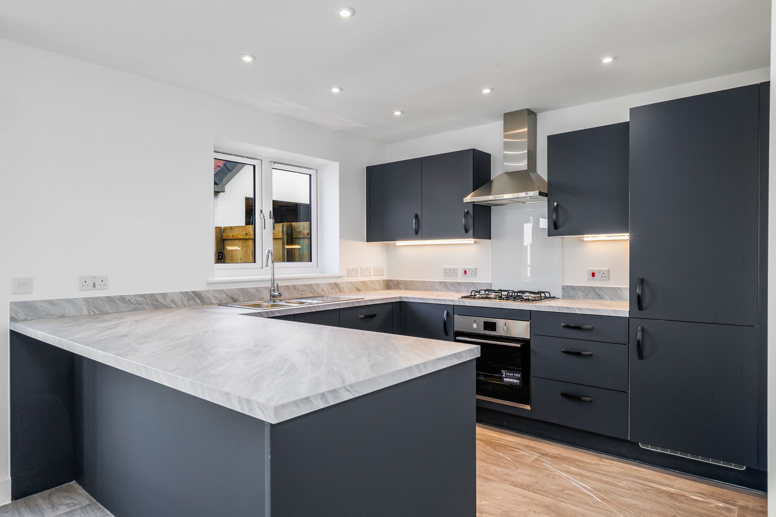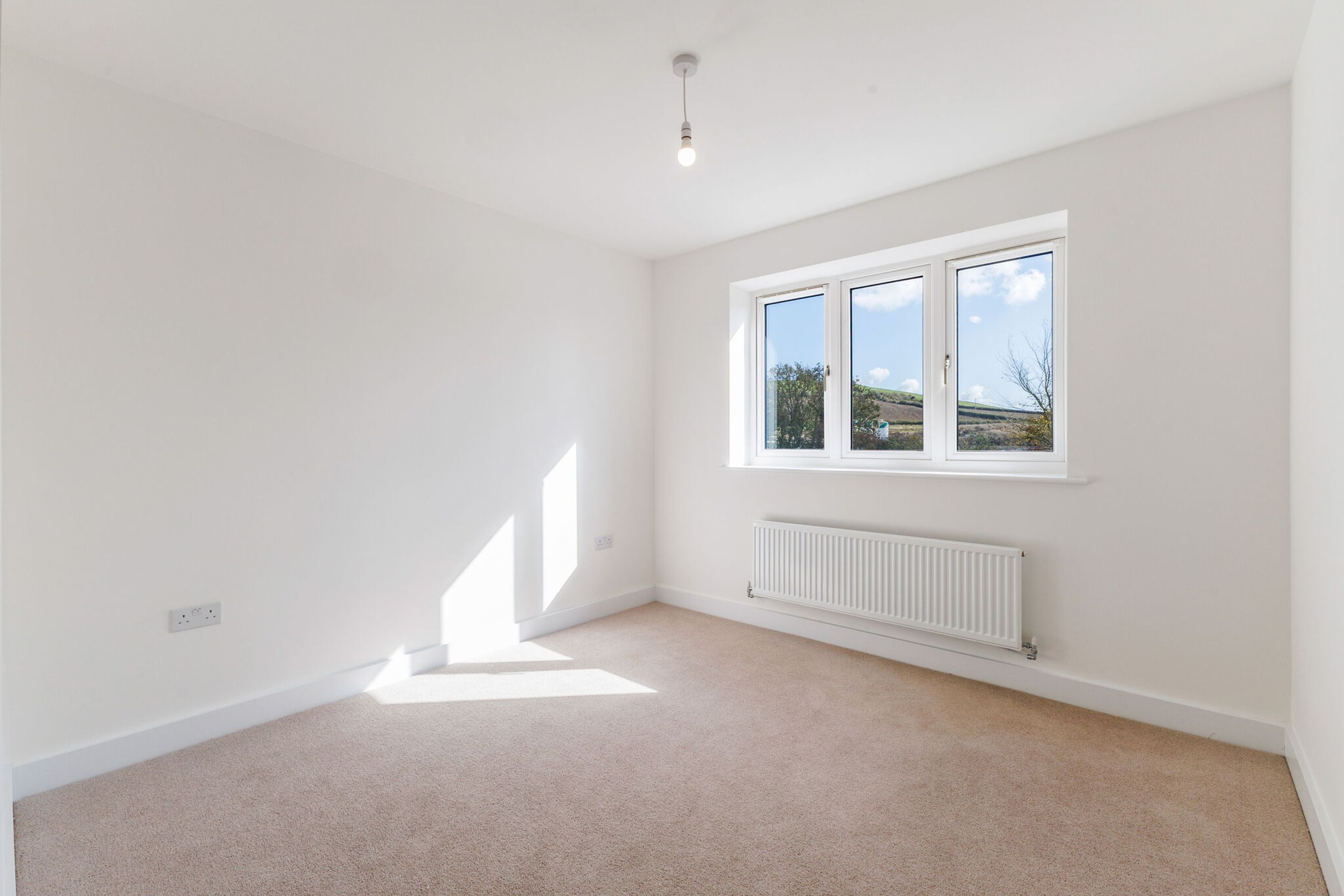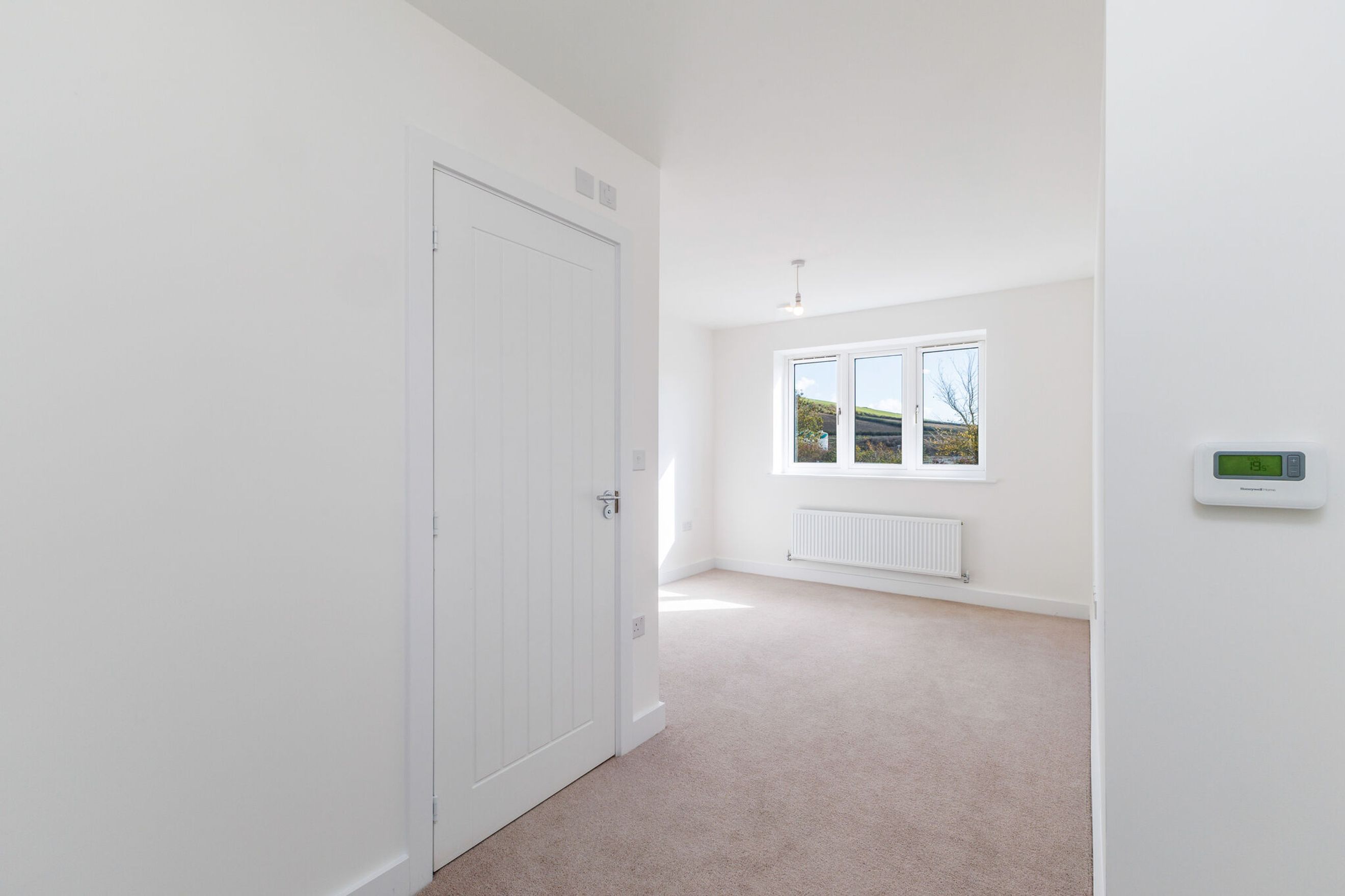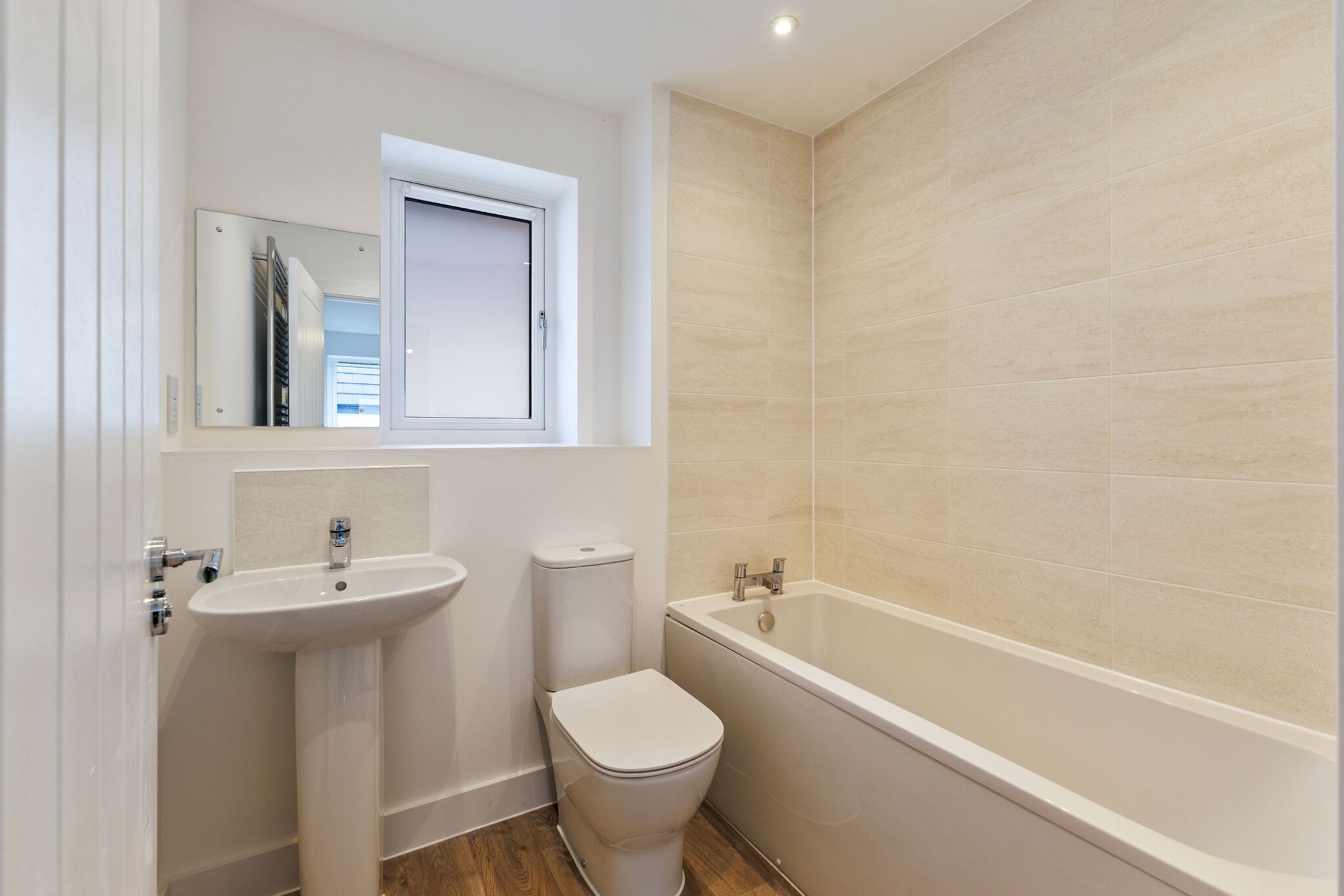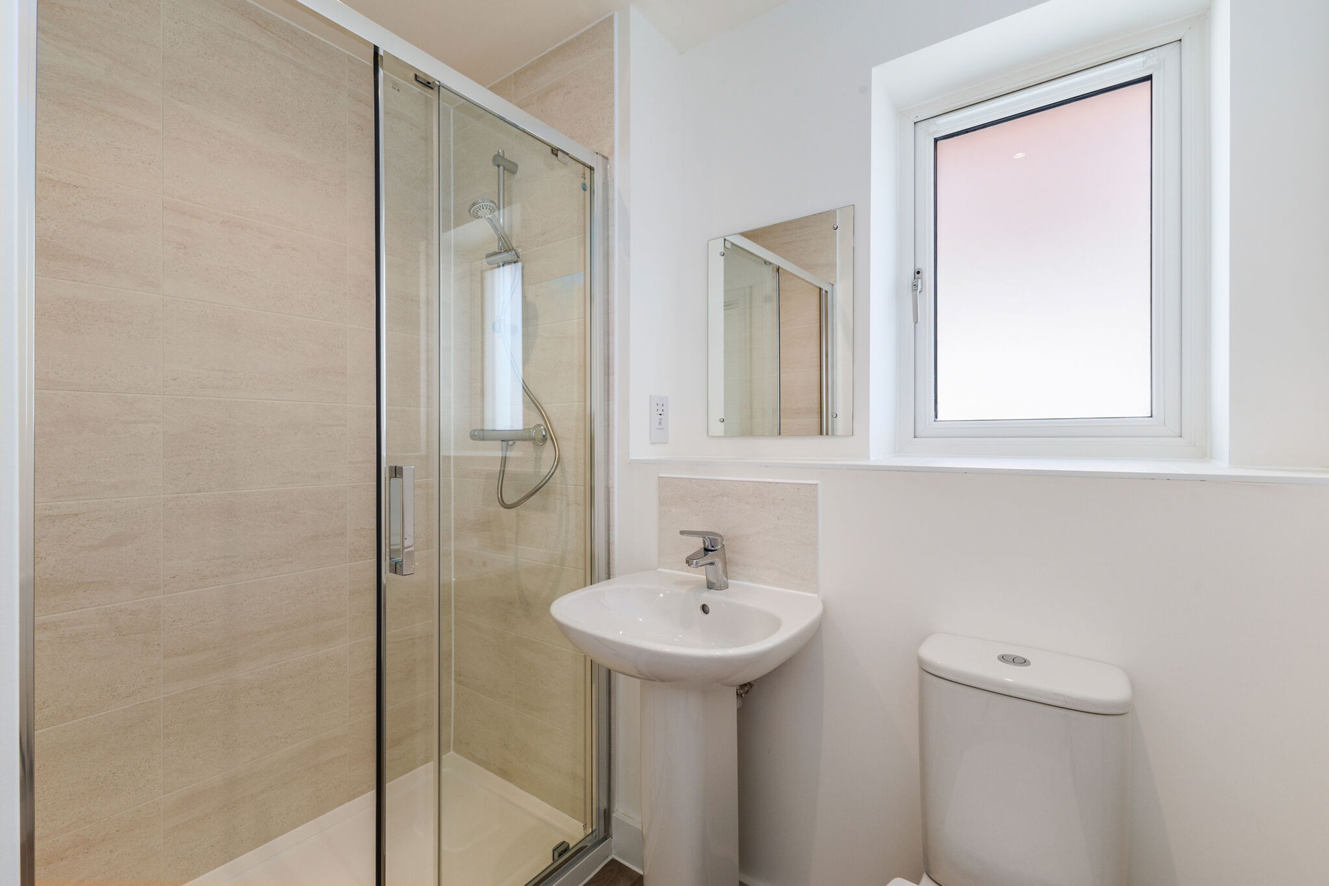 Upstairs, there are four comfortable bedrooms, with an ensuite to the master. The bathroom has a modern, white suite. You'll also have a single garage and two driveway spaces with electric vehicle charging, as well as a turfed back garden.