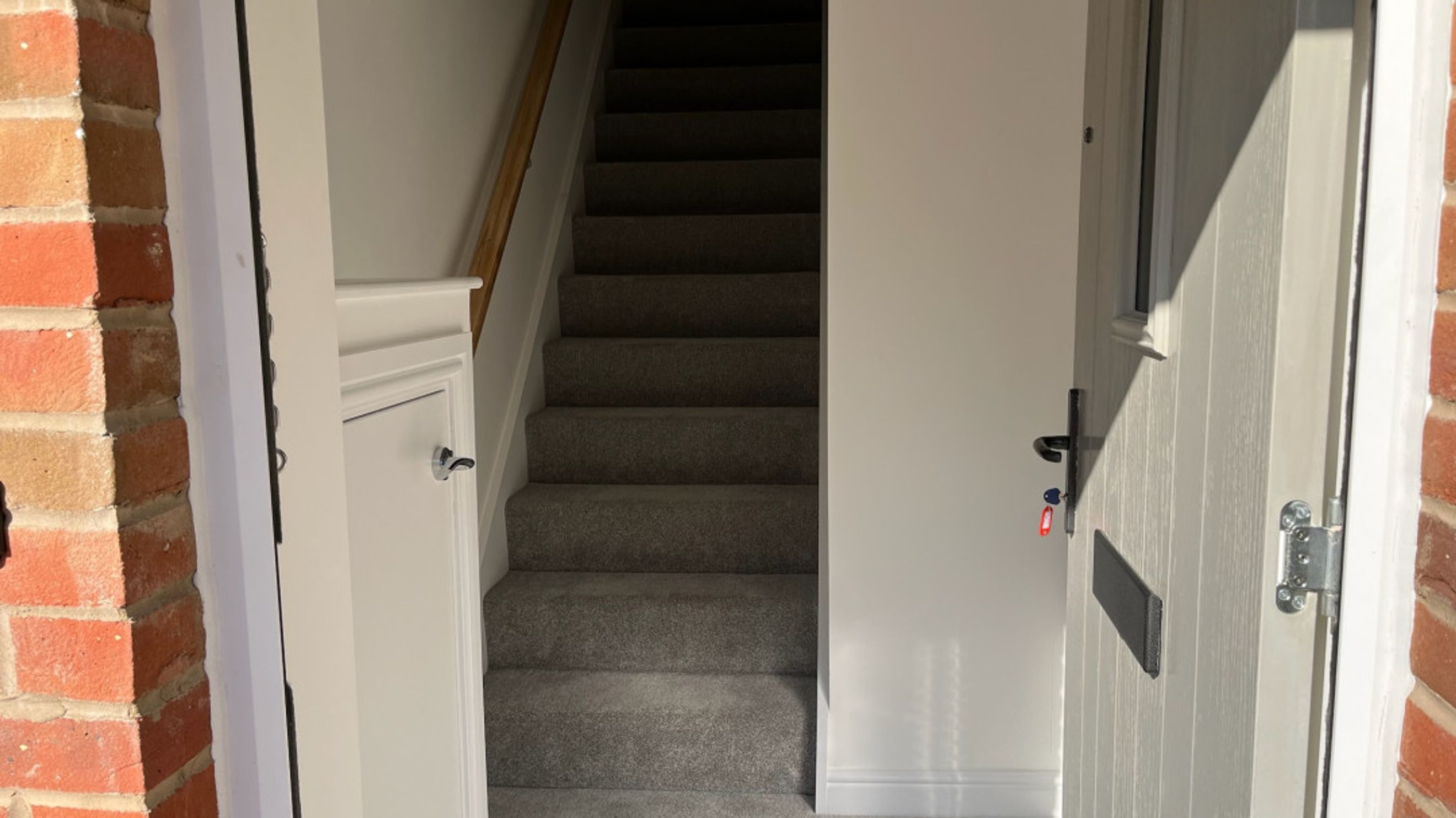 As you come into the home you step into the hallway with the stairs to the maisonette. When you enter into the welcome hall. you have a large storage cupboard in front of you and you have Bedroom one to your right. This is a light and airy room with ample space. In the hallway you will find the family bathroom which has a shower over bath feature. The kitchen/dining/living area is spacious and perfect for hosting and relaxing. There is space for your fridge/freezer and under counter appliances. The maisonette allows for lots of beautiful and natural light.