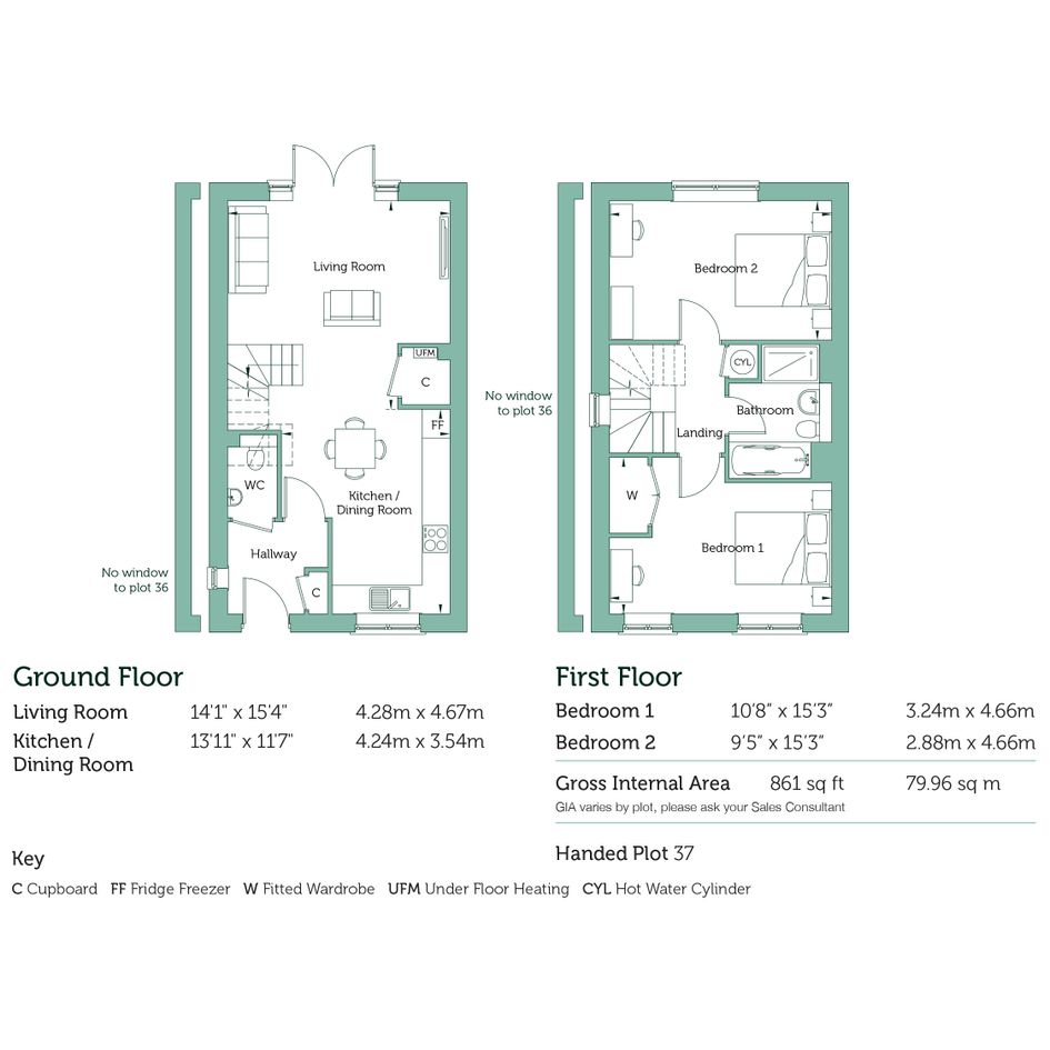 The two bedroom Rowan opens to an entrance hall leading through to the open plan kitchen/dining/living room, featuring integrated appliances and French doors to the turfed rear garden. Downstairs also benefits from a cloakroom and storage cupboard.