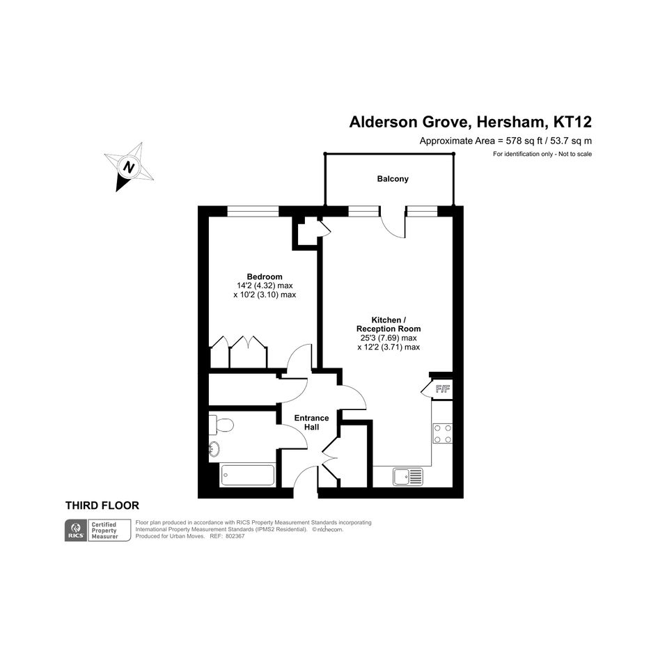 This smartly-presented, top-floor flat features a twenty-five-foot reception room with attractive flooring, open-plan kitchen area and a door that leads out onto a south/south-east-facing balcony. There is a spacious bedroom with fitted wardrobe, a simple white-tiled bathroom and a generous amount of storage space has been provided in the hallway. Well insulated walls and roof, high performance glazing and a modern gas central heating system all contribute towards a very good energy-efficiency rating. The property comes with the use of an allocated parking space plus Walton-on-Thames Station, for rail services between Woking/Basingstoke and London Waterloo, is only a short walk away.