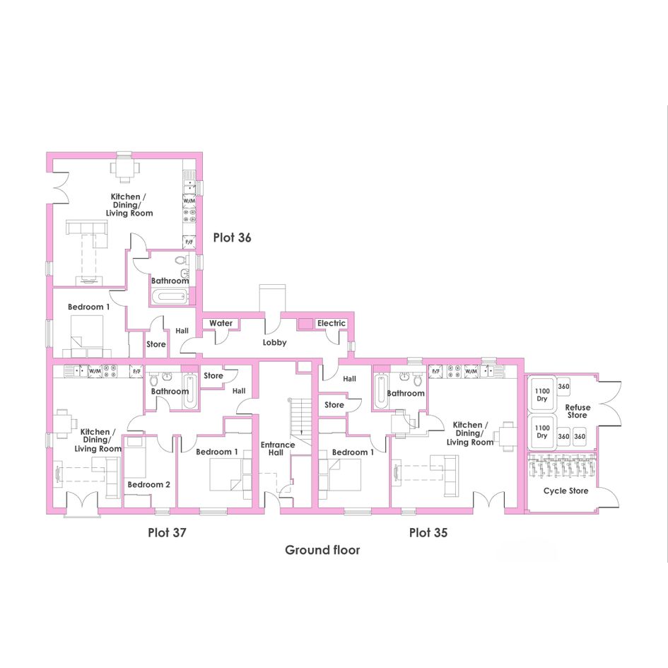 The apartment block also includes a dedicated refuse area and secure cycle storage.