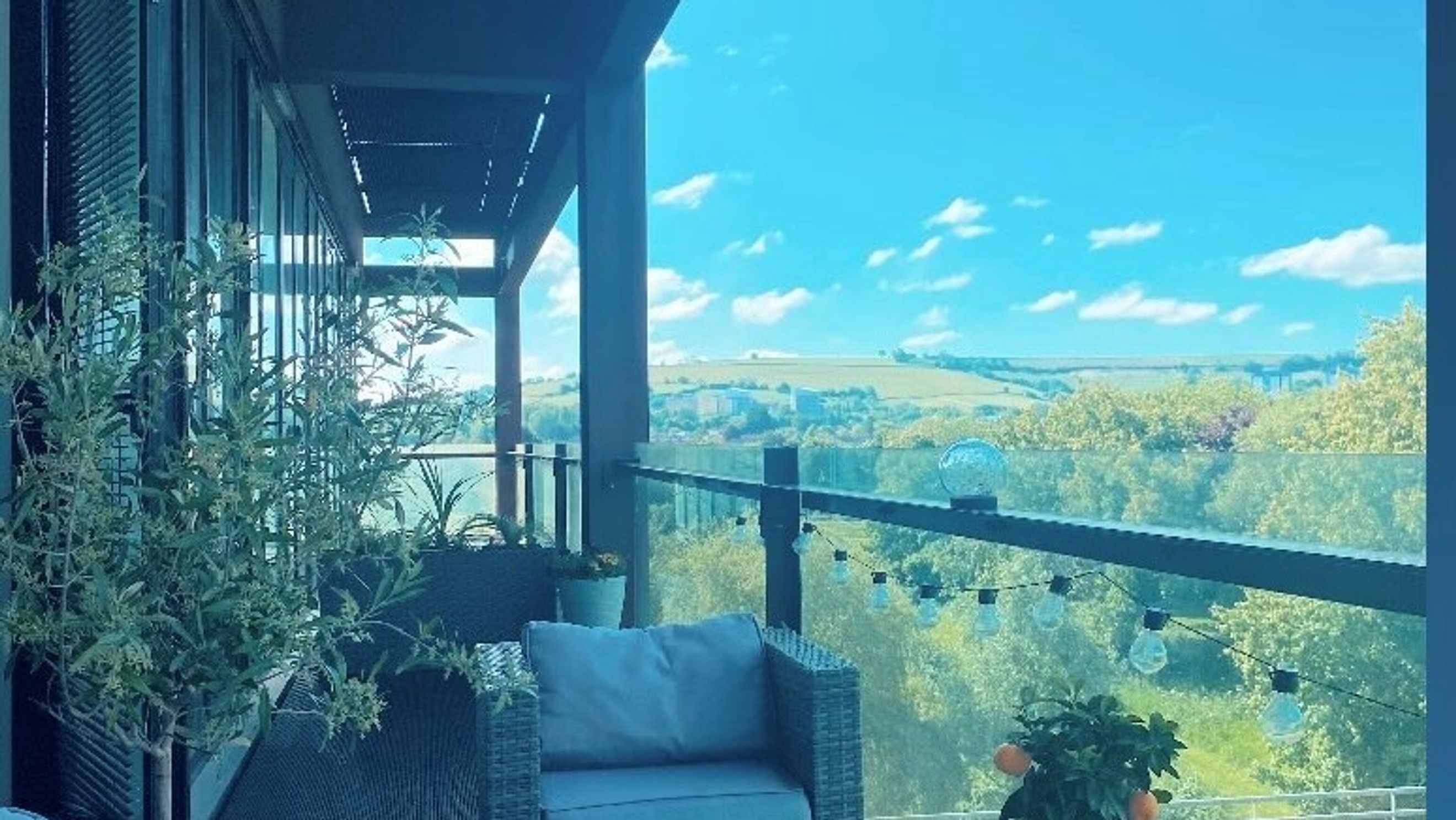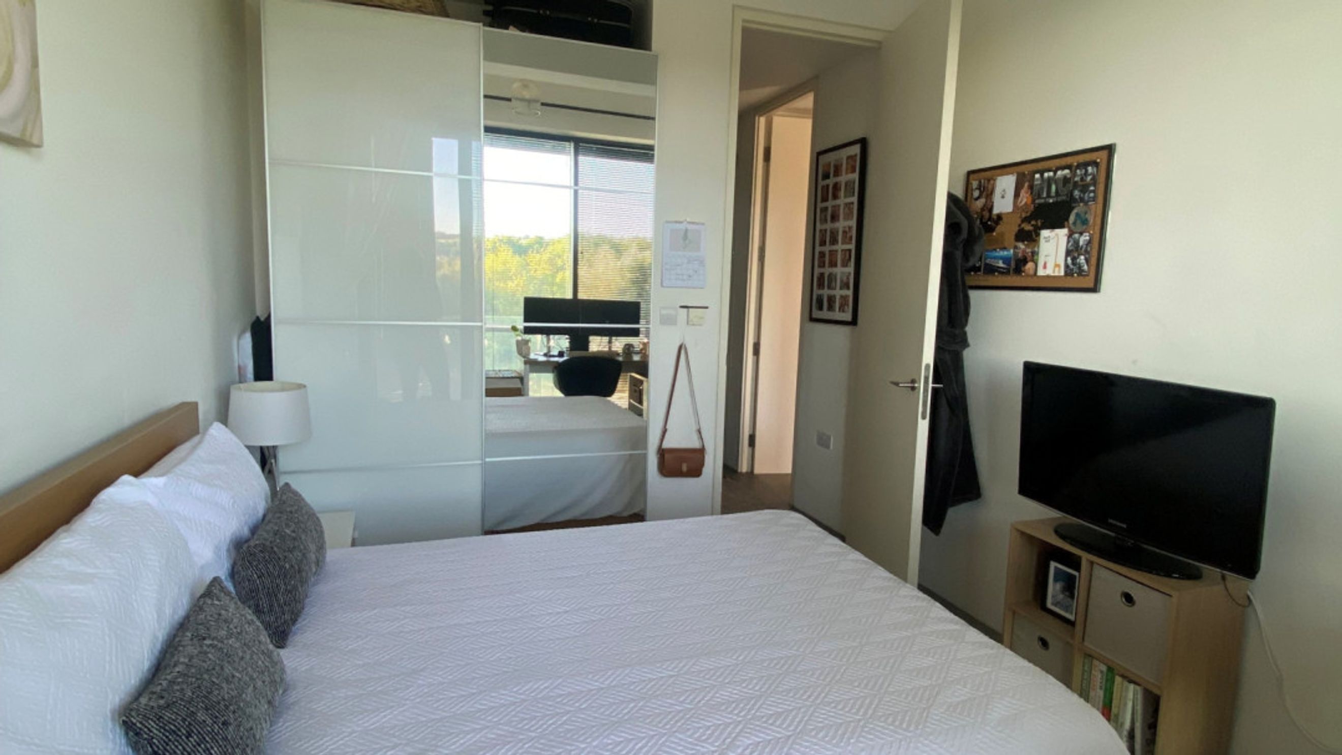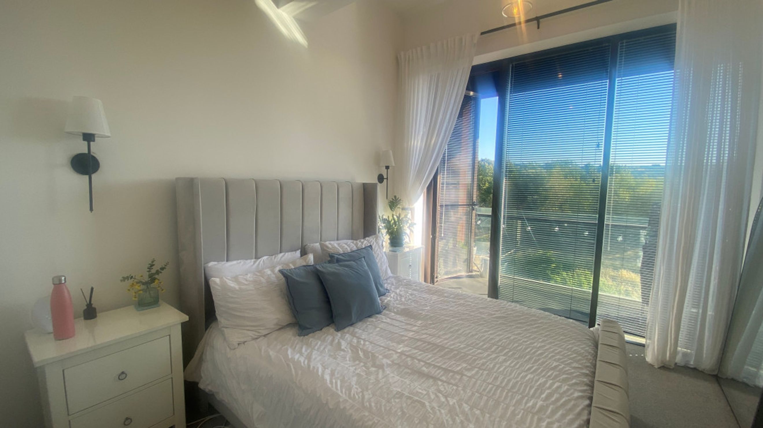 Bedroom one is generously sized and carpeted, featuring balcony access, a fitted wardrobe, and a private ensuite bathroom. Bedroom two is also carpeted and benefits from balcony access, offering a comfortable and versatile space.