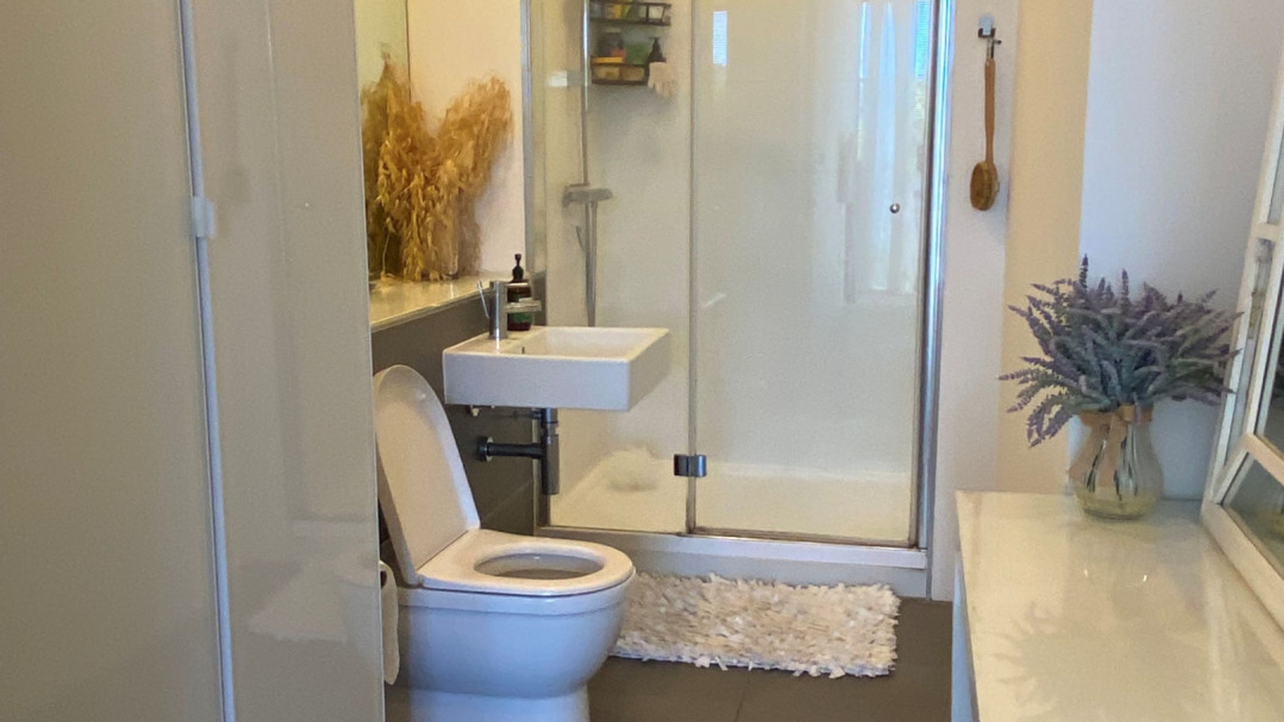 The main bathroom includes tiled flooring, a white suite, and a shower over the bath, with partial tiling for a clean, modern finish.