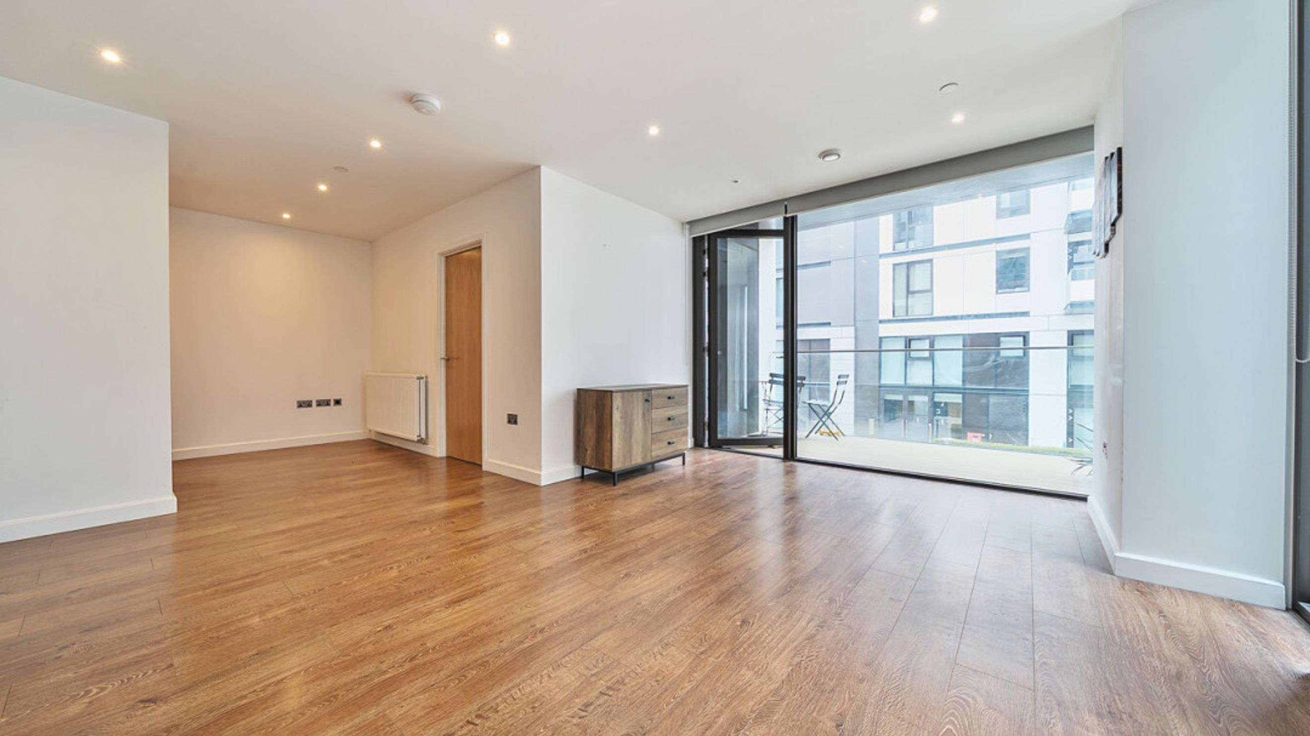 Enter this bright and spacious apartment through a hallway lined with storage cupboards. The well proportioned dual aspect open plan living area, incorporating a beautiful kitchen, leads to a private south east facing balcony overlooking the communal courtyard garden. Of the two spacious double bedrooms, one benefits from built-in storage cupboards,. A contemporary bathroom completes the accommodation.