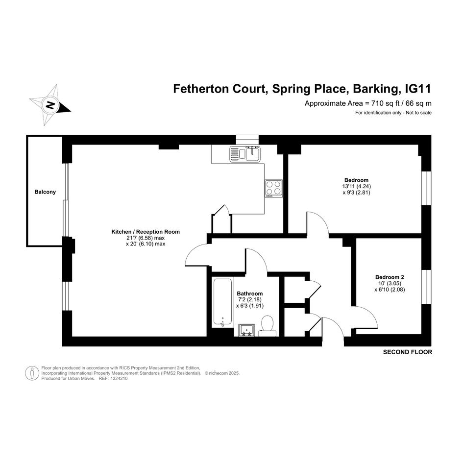 A well-presented flat on the second floor of this modern development. The property has a twenty-foot, south/south-east-facing reception room with balcony that overlooks the communal courtyard. The semi-open-plan kitchen features an additional side window and integrated appliances. There is a spacious main bedroom plus a second bedroom, a good-sized bathroom and a pair of hallway storage/utility cupboards. Well insulated walls, modern double glazing and gas central heating make for a good energy-efficiency rating. The flat comes with a parking space and is also within comfortable walking distance, or brief cycle ride, of Barking Station, which provides access to District, Hammersmith & City, London Overground and C2C services.