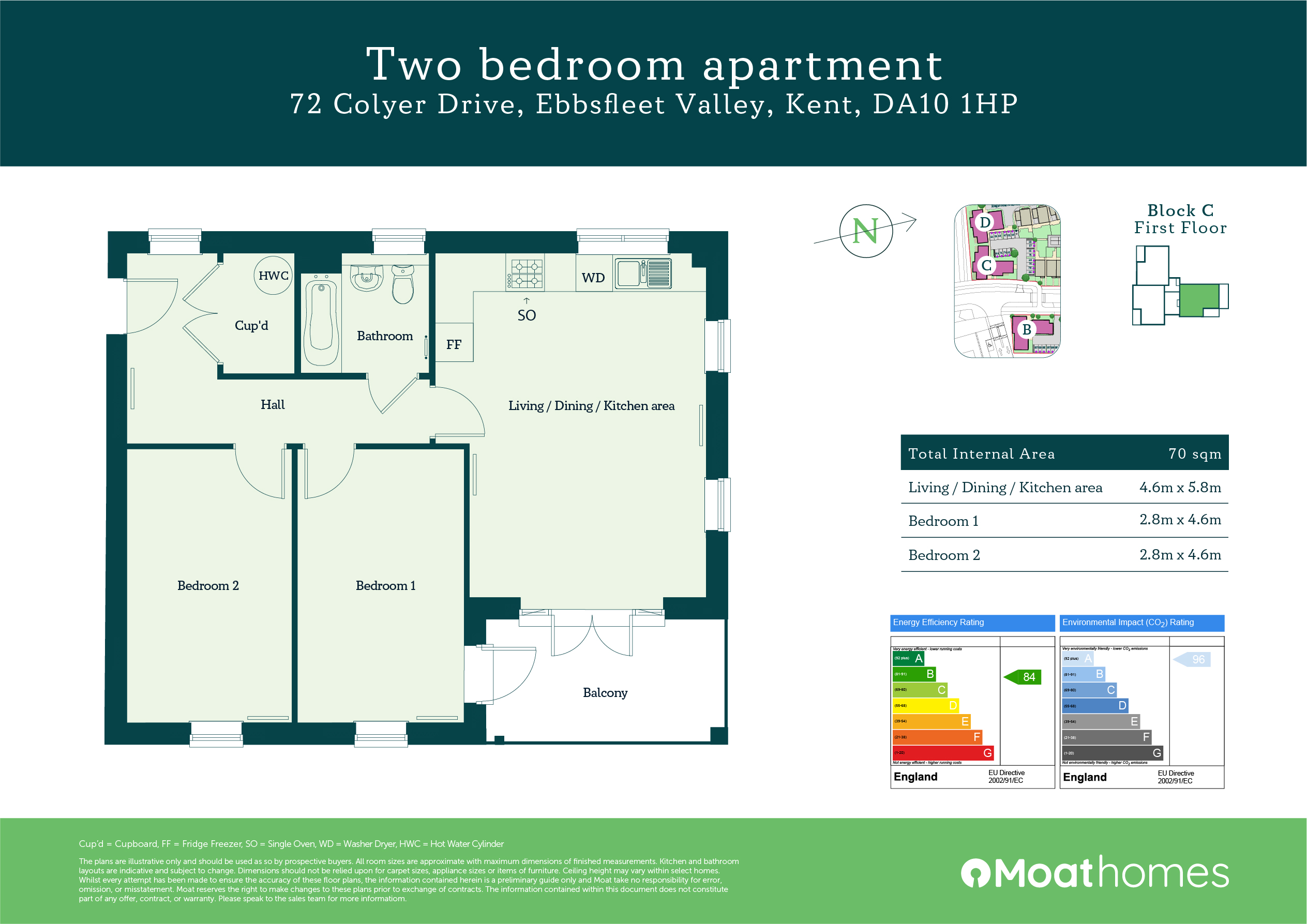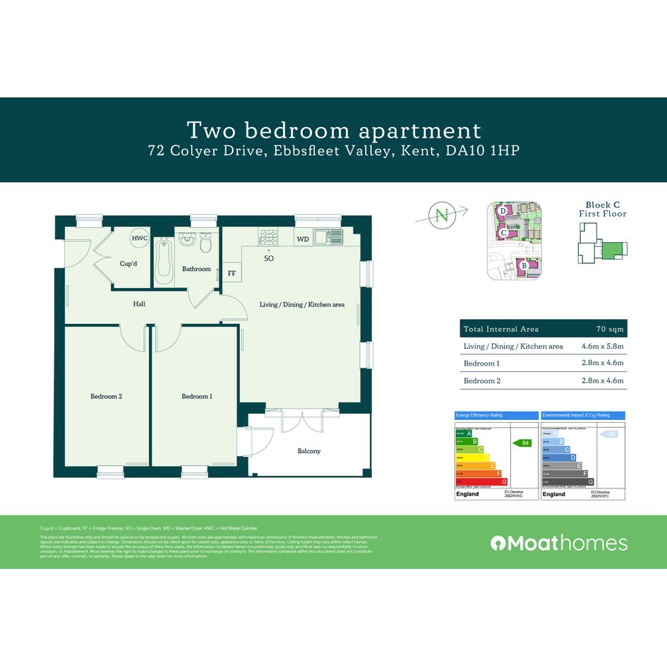 Both bedrooms are generously sized, with flexible layouts to suit your lifestyle. The modern bathroom is fitted with high-quality fixtures and contemporary finishes. Energy efficiency and thoughtful design mean low running costs and a home that’s ready to move into. You’ll also have your own allocated parking space conveniently close by.