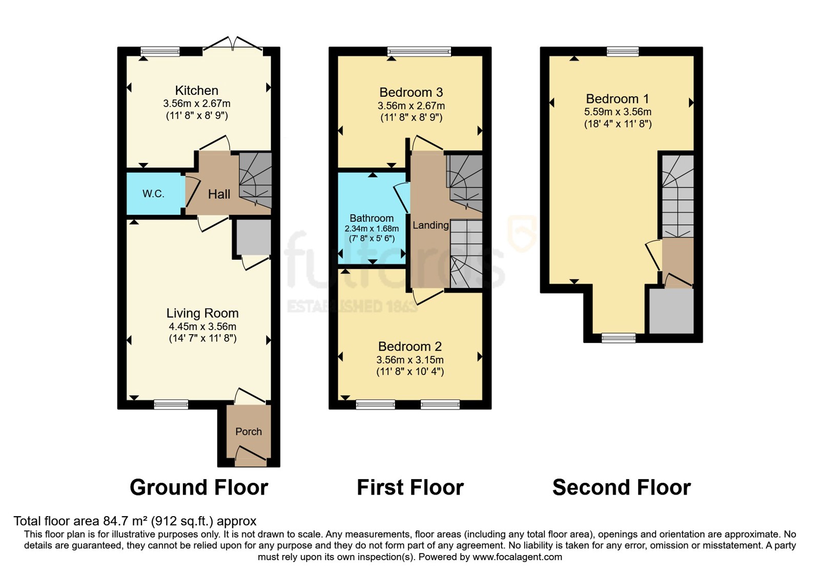 The property features three well-proportioned bedrooms, along with two bathrooms, including a convenient downstairs W.C.