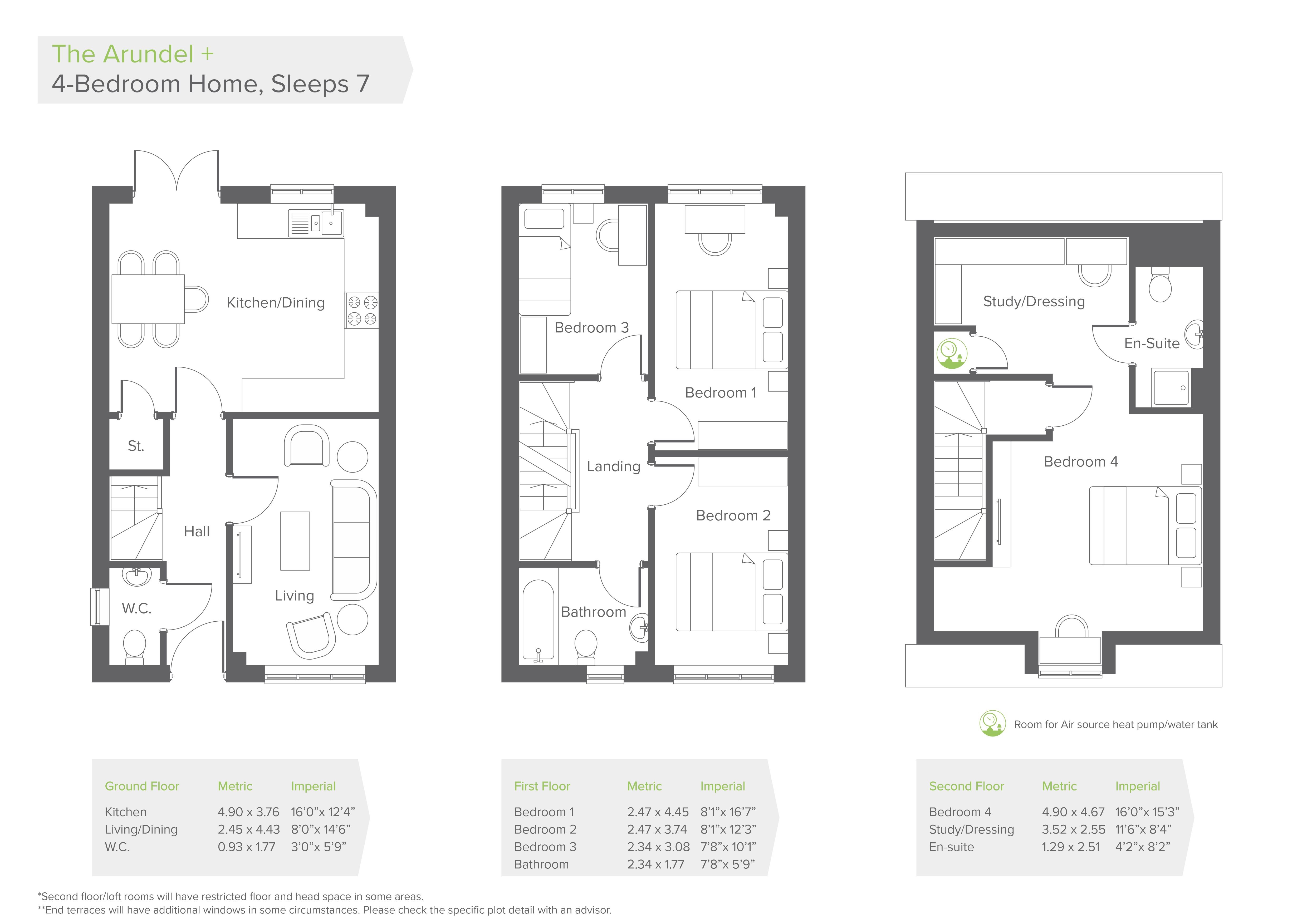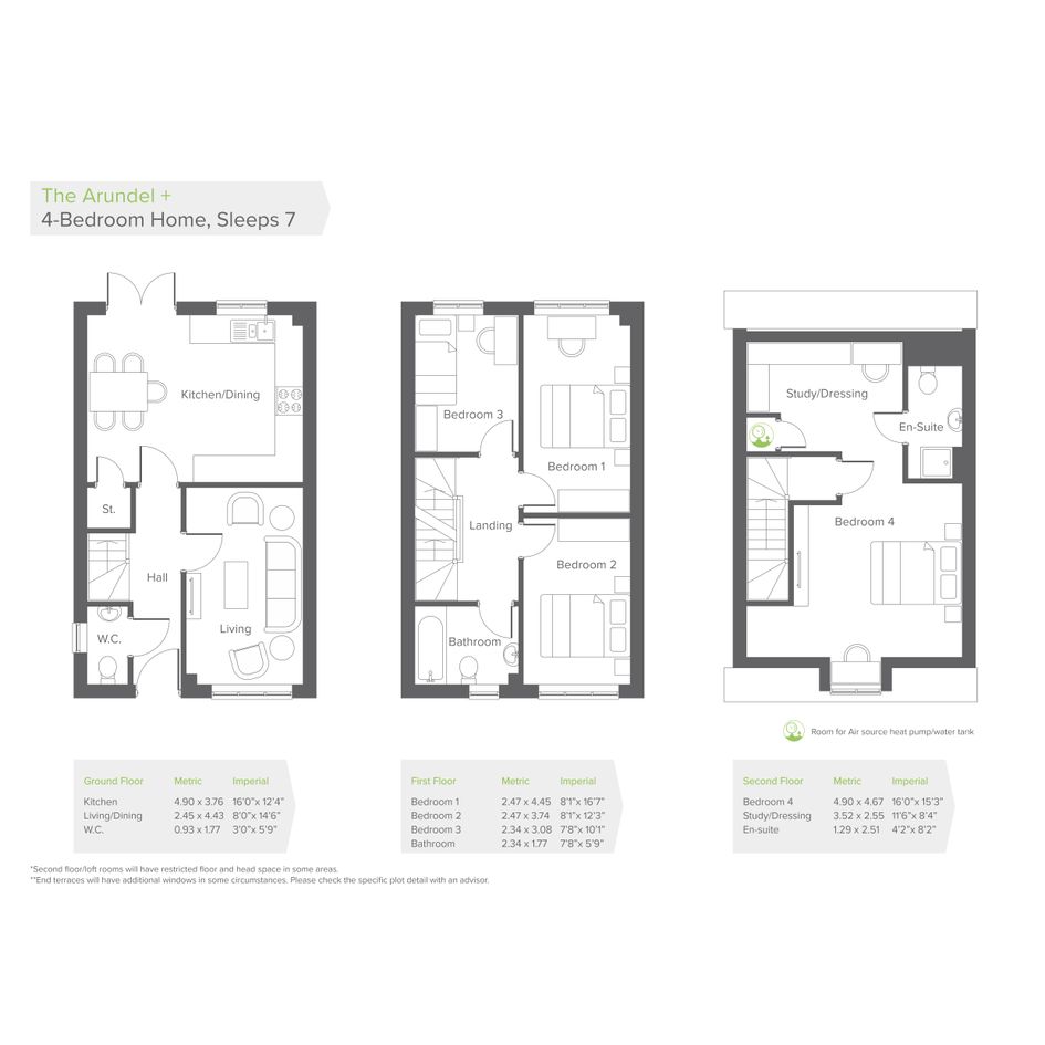 On the first floor of The Arundel+ you’ll find two good-sized double bedrooms, and one single bedroom. The contemporary three-piece family bathroom contains an over-bath shower plus designer taps and tiling.