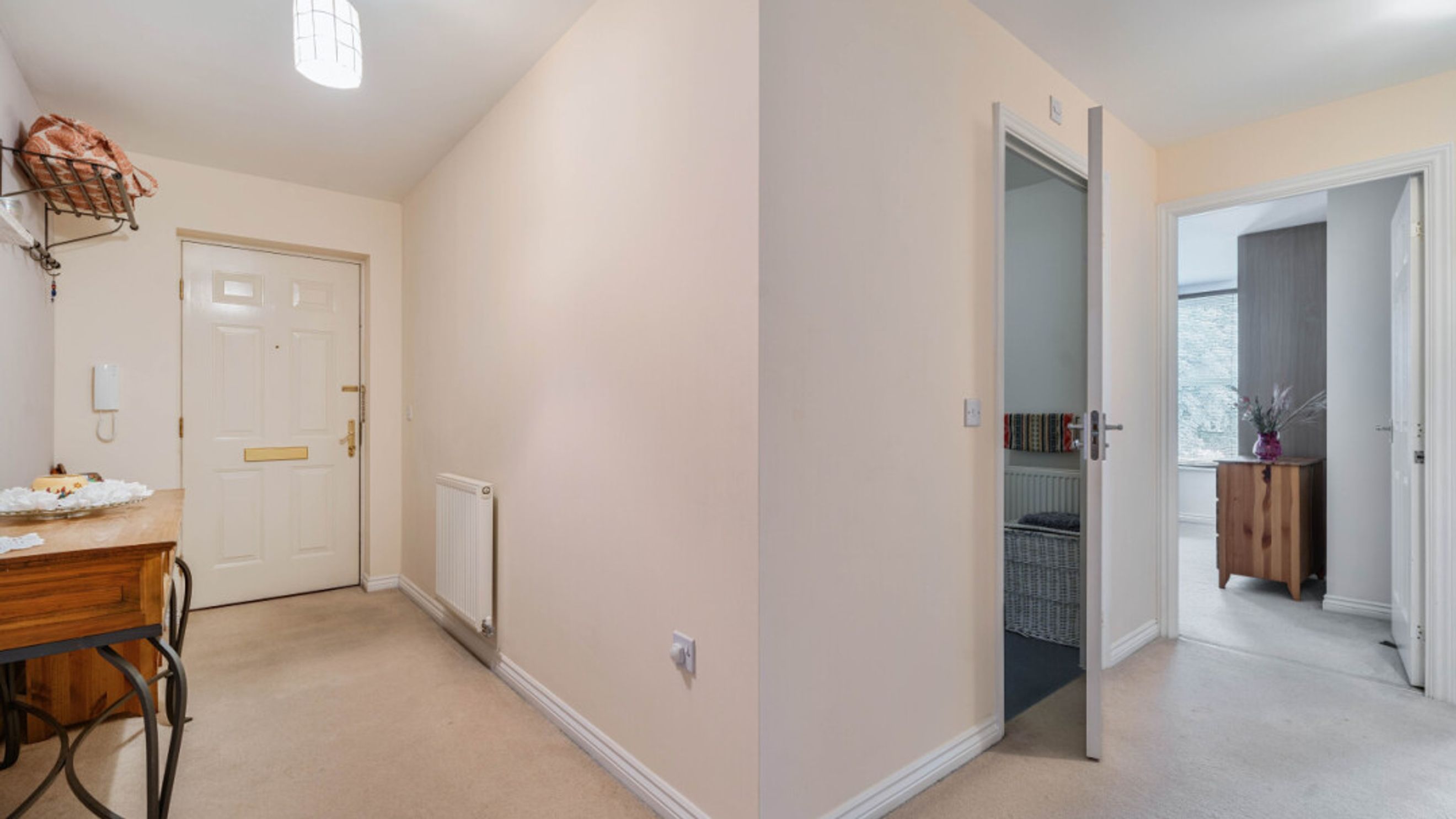 Enter this well presented apartment via a wide hallway which leads into a spacious bright and airy south facing open plan living area, which opens onto a private balcony with a view of the communal gardens. The kitchen is fitted with a range of Beech and Cream units and includes an integrated oven, hob and extractor. There are two well proportioned double bedrooms, the master benefitting from an ensuite shower room and fitted storage. A family bathroom completes the accommodation.