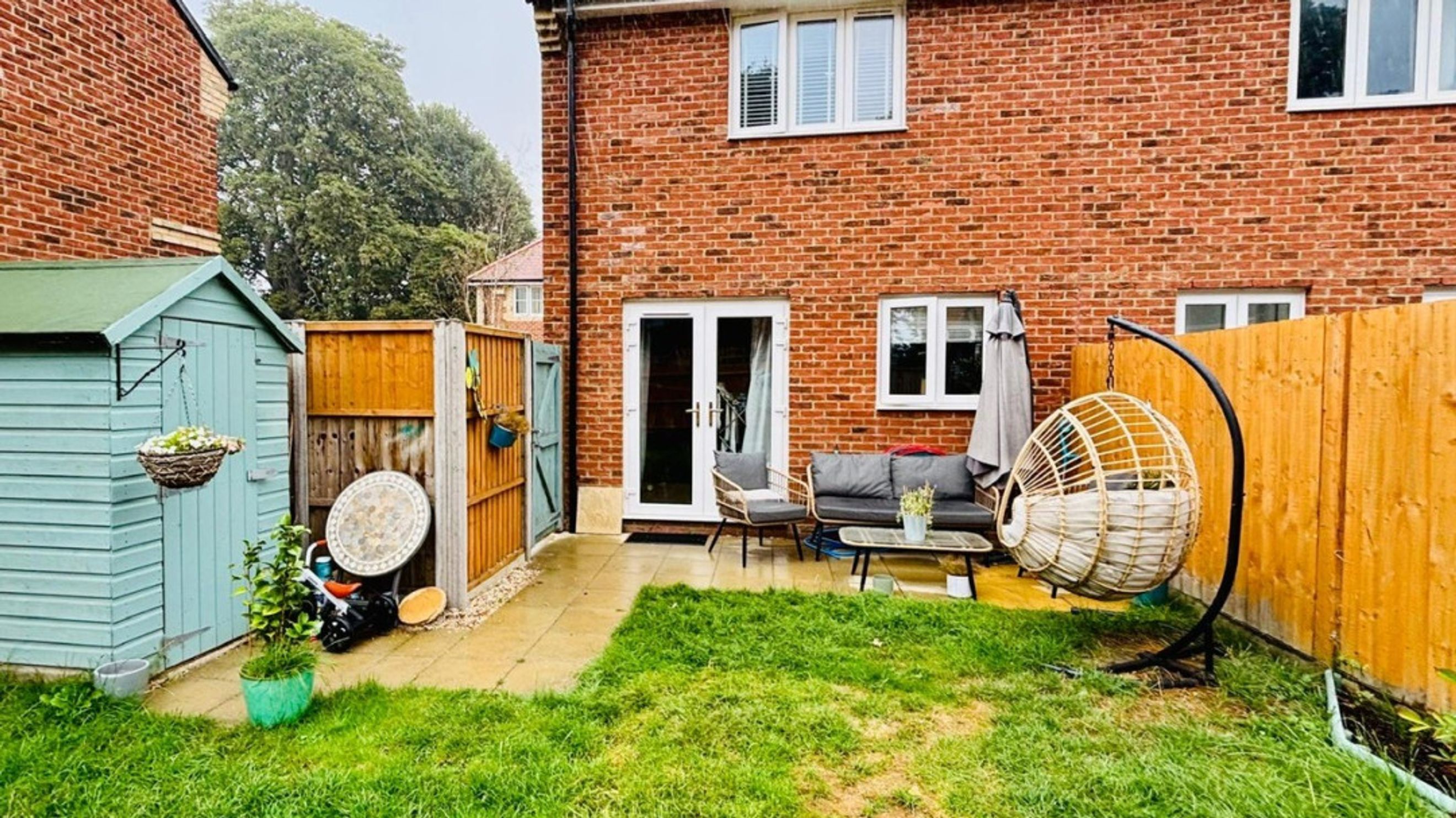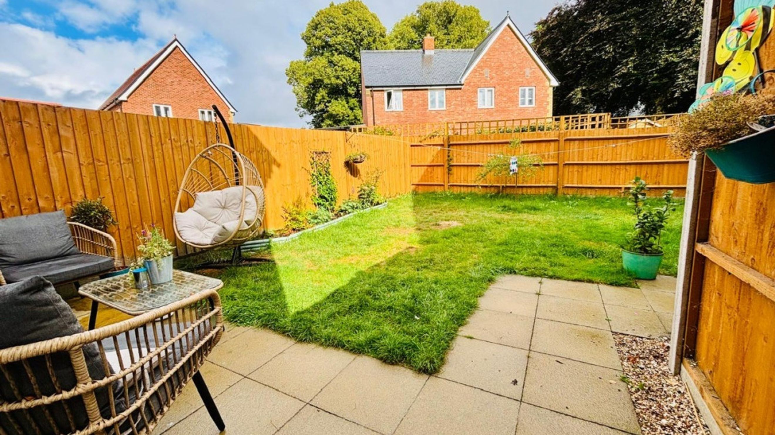 Outside, enjoy a sunny south-facing garden with a lawn, flower beds, and a patio area. The property also benefits from two allocated parking spaces.