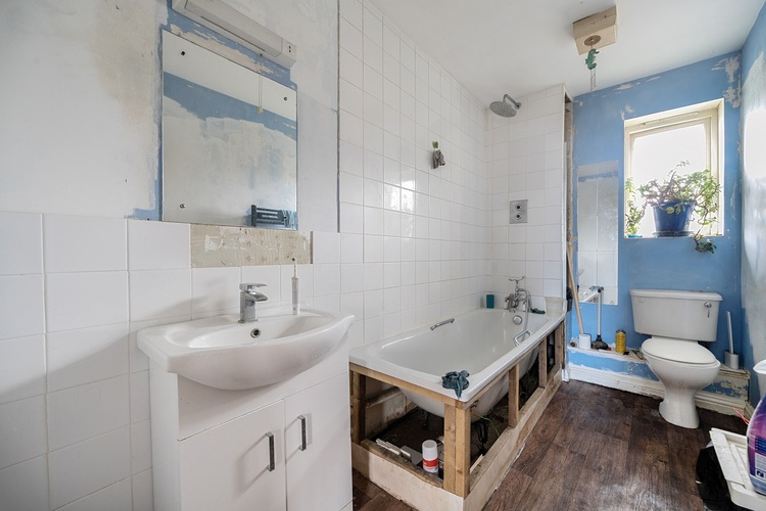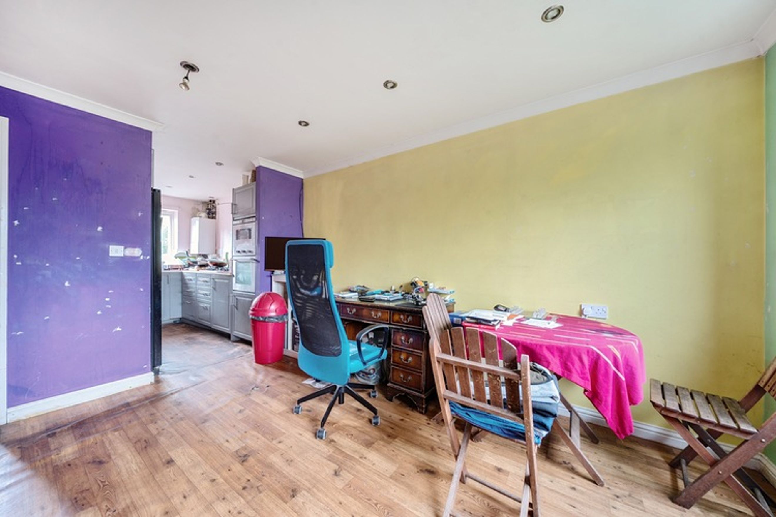 The property features a reception room, separate kitchen, toilet and a back garden on the ground floor, another reception room and one bedroom on the first floor, two bedrooms and a family bathroom on the third floor.