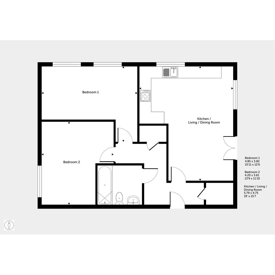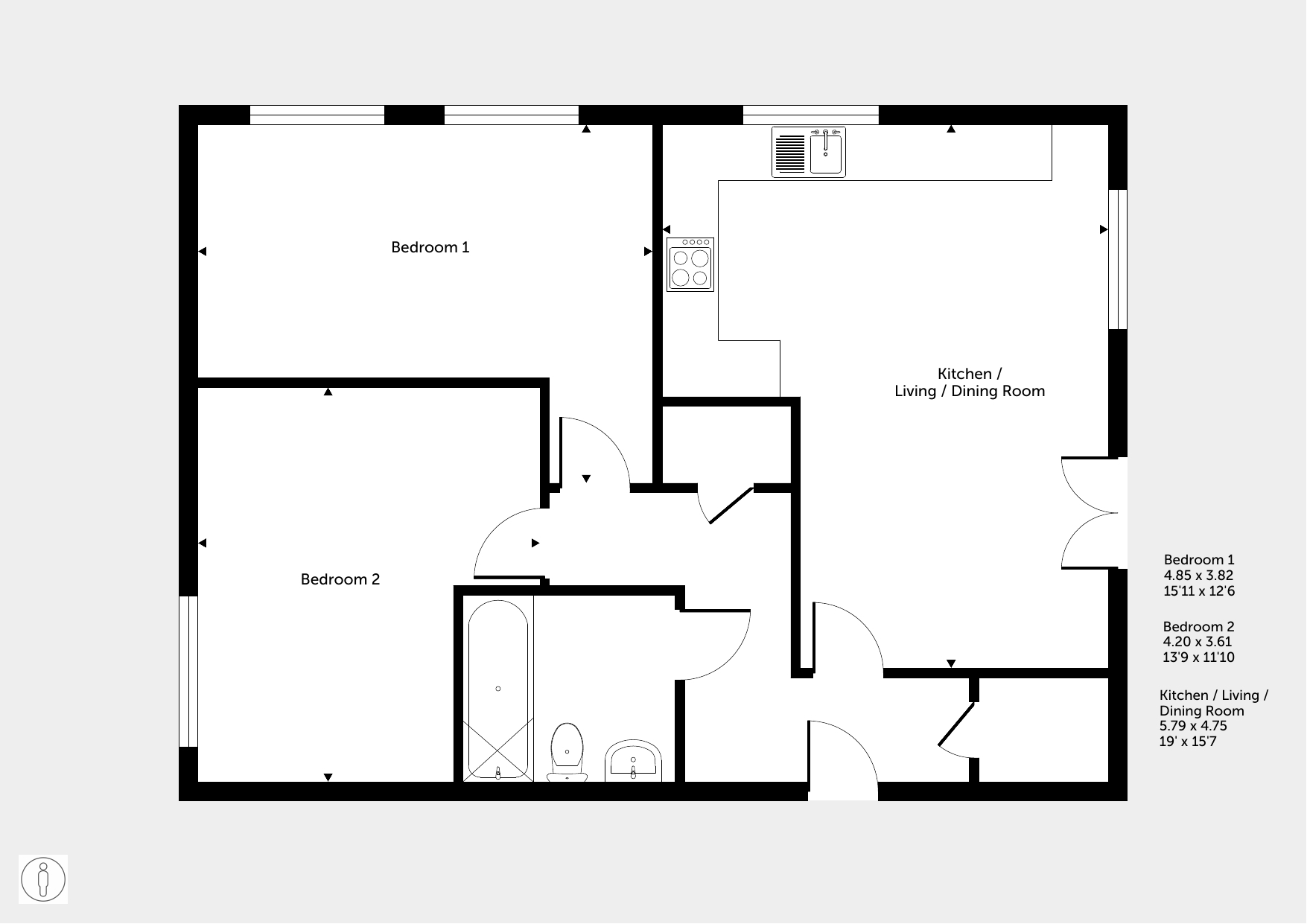 Featuring an open-plan living area, with doors to your Juliette balcony. The kitchen is fitted with an oven, gas hob and hood.