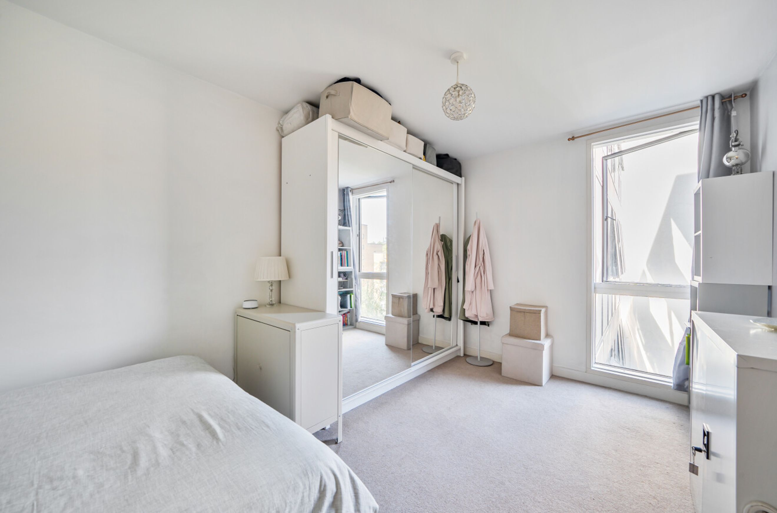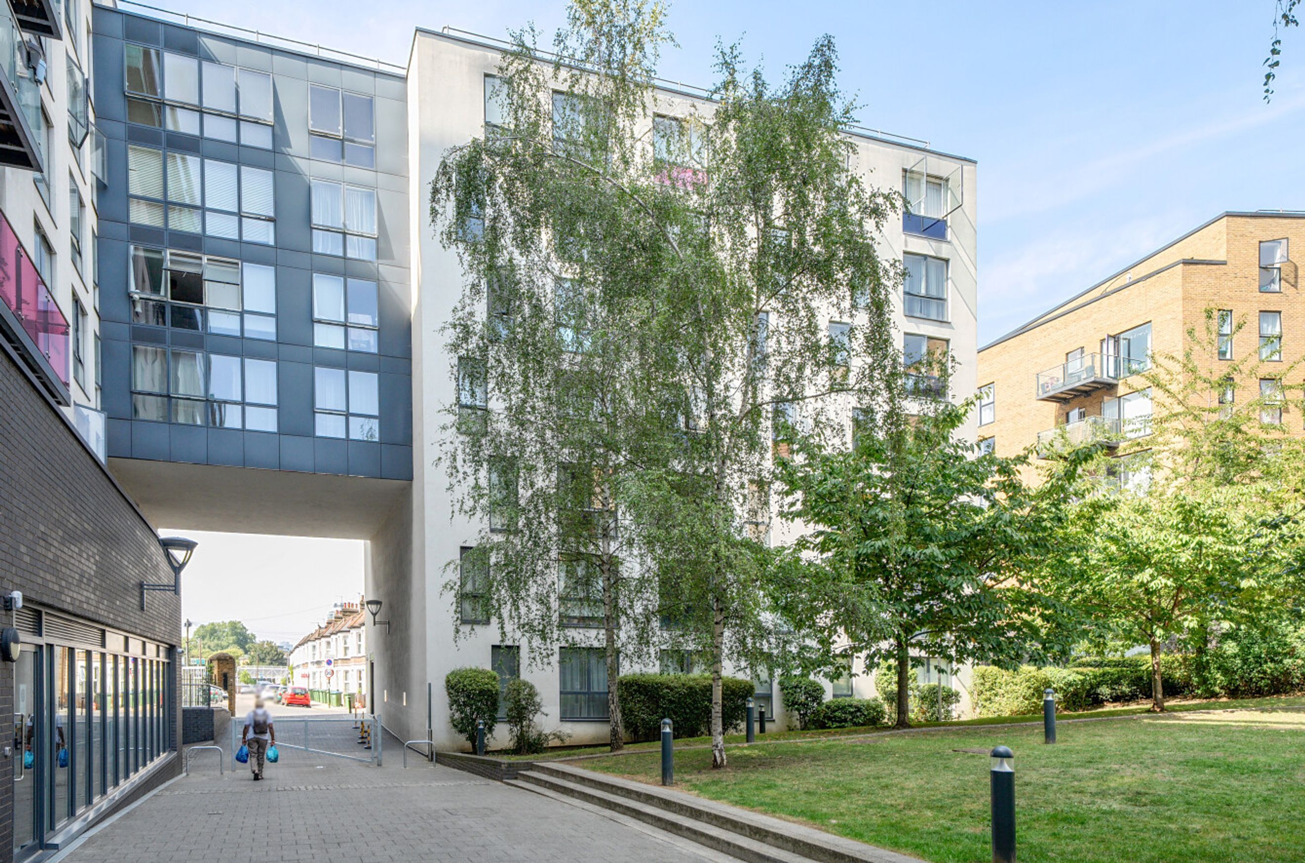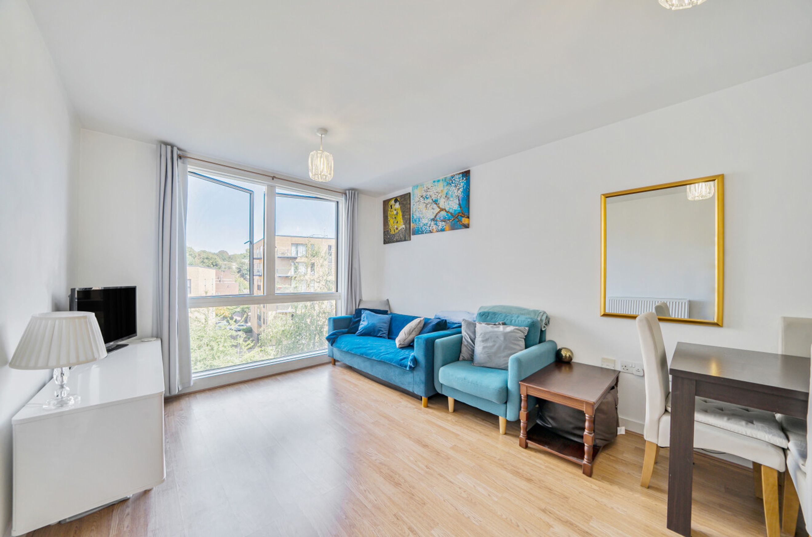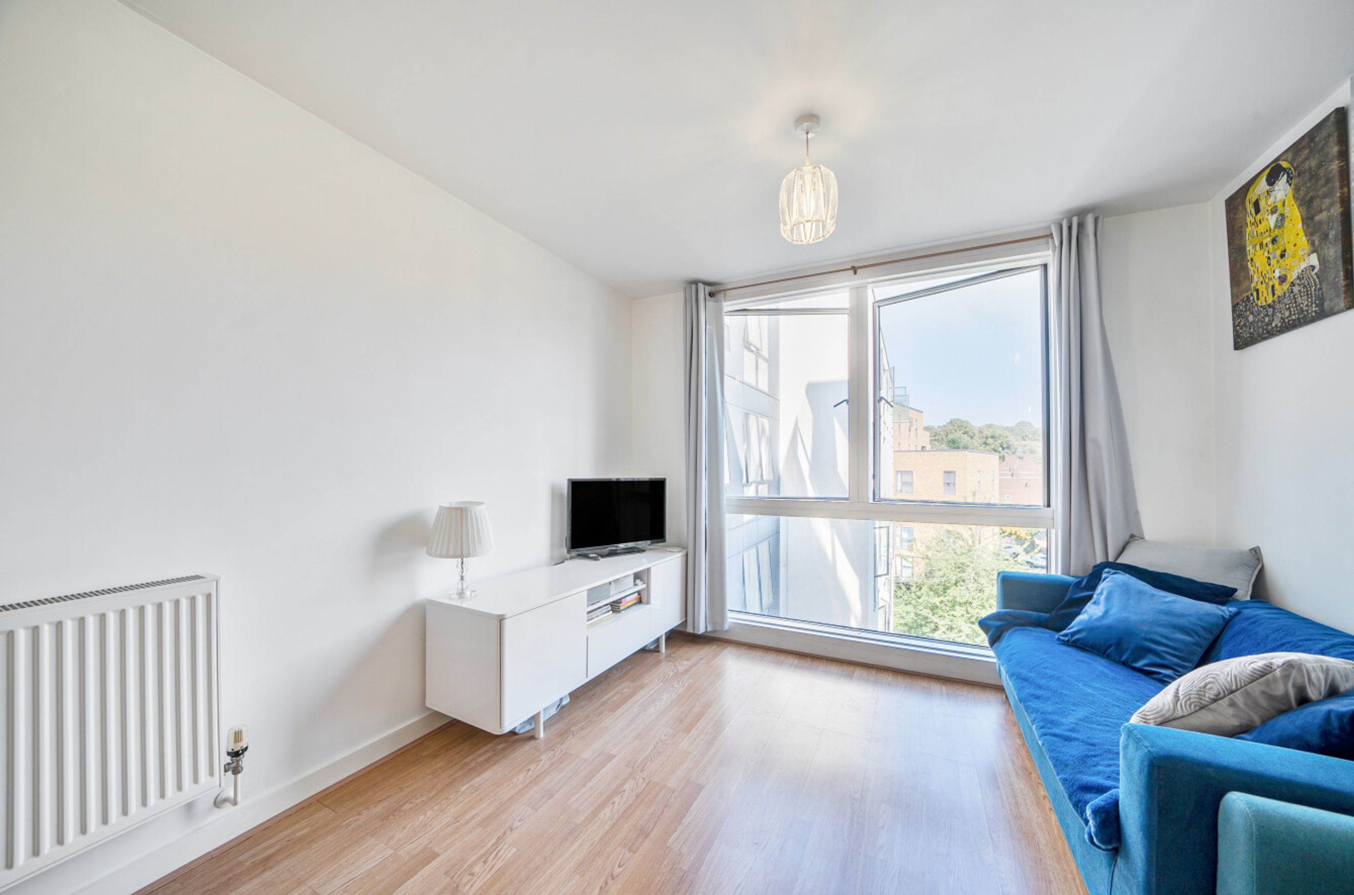 A fifth-floor apartment with near-full-height windows that overlook the communal garden. The property has a good-sized reception room with wood flooring and a semi-open-plan kitchen. There is a spacious bedroom, a simple, white-tiled bathroom and a large storage/utility cupboard in the entrance hallway. Well insulated walls, modern double glazing and a communal heating and hot water system make for a good energy-efficiency rating. Nara Building is part of the Silkworks development. Elverson Road DLR is the nearest station with Lewisham, for services into London Bridge/Waterloo East/Charing Cross/Cannon Street/Victoria also just a short walk away.